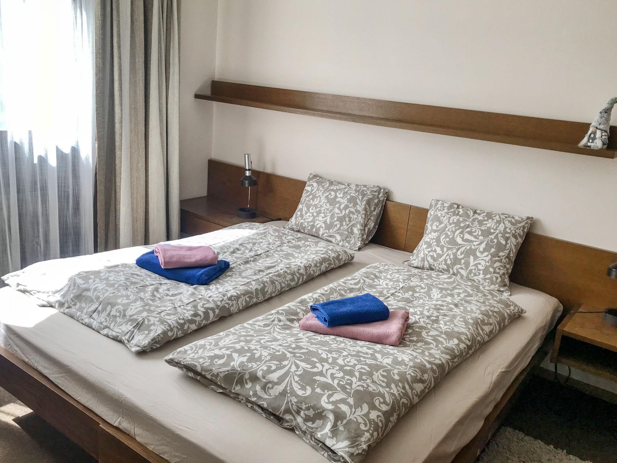 "Panorama View 905", 2-Zimmer-Wohnung 49 m2 im 9. Stock. Objekt geeignet für 2 Erwachsene + 2 Kinder. Geräumig, komfortabel und gemütlich eingerichtet: Wohn-/Schlafzimmer mit 1 Diwanbett (140 cm, Länge 190 cm), Esstisch, Kabel-TV, Flachbildschirm und Radio. Ausgang zum Balkon. 1 Doppelzimmer mit 1 Doppelbett (2 x 90 cm, Länge 200 cm). Kleine Küche (4 Kochplatten, Backofen, Toaster, Wasserkocher, elektrische Kaffeemaschine, Kapseln für die Kaffeemaschine (Nespresso) extra). Bad/WC. Kleiner Balkon, Südlage und Westlage. Balkonmöbel. Herrliche Panoramasicht auf die Berge, die Landschaft und die Ortschaft. Zur Verfügung: Haartrockner. Internet (Wireless LAN, gratis). Bitte beachten: Nichtraucher-Unterkunft. Maximal 1 Haustier/Hund erlaubt.