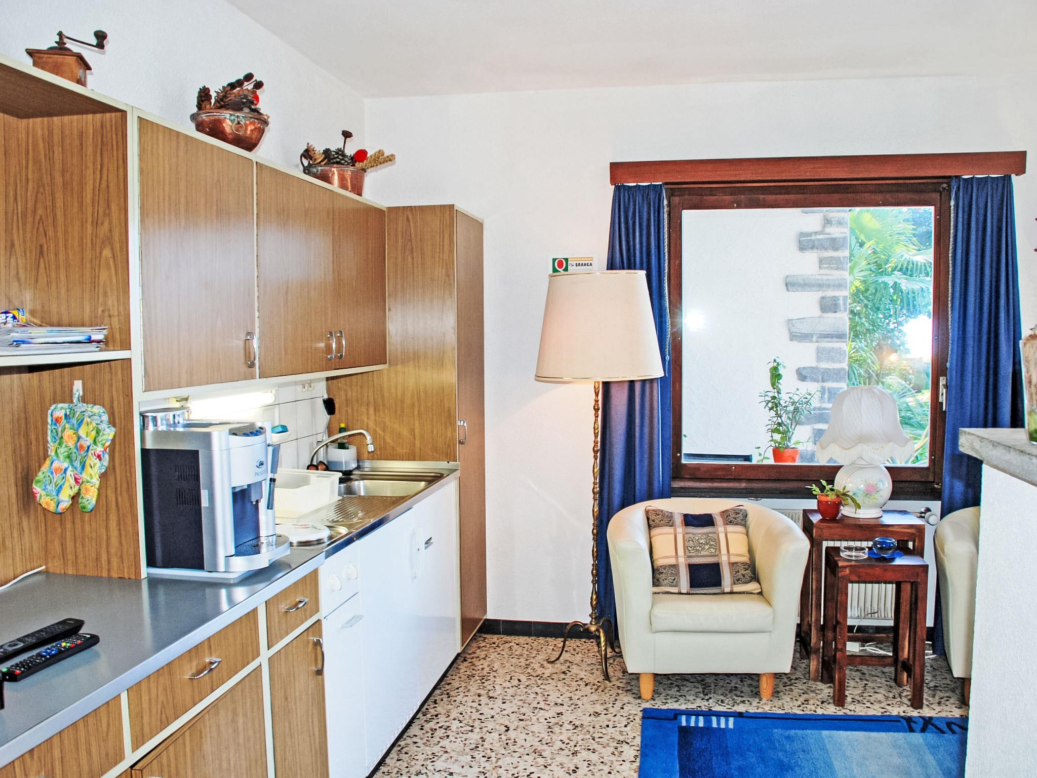 "App. 1", 1-Zimmer-Wohnung 28 m2. Hell, komfortabel und gemütlich eingerichtet: offenes Wohn-/Schlafzimmer mit 2 Betten (90 cm, Länge 200 cm), Sat-TV, Flachbildschirm und Radio. Ausgang zum Gartensitzplatz. Offene Küche (2 Kochplatten, Mini-Backofen, elektrische Kaffeemaschine) mit Esstisch. Dusche/WC. Ölheizung. Gartensitzplatz. Terrassenmöbel, Gartengrill, Liegestühle (2), Sitzplatz. Schöne Panoramasicht auf den See, die Berge und die Landschaft. Zur Verfügung: Haartrockner. Internet (Wireless LAN, gratis). Parkplatz (extra, überdacht). NL-00004642