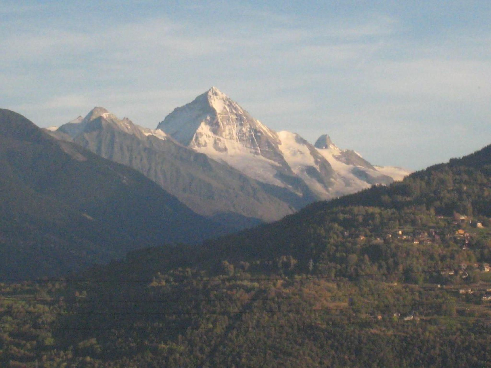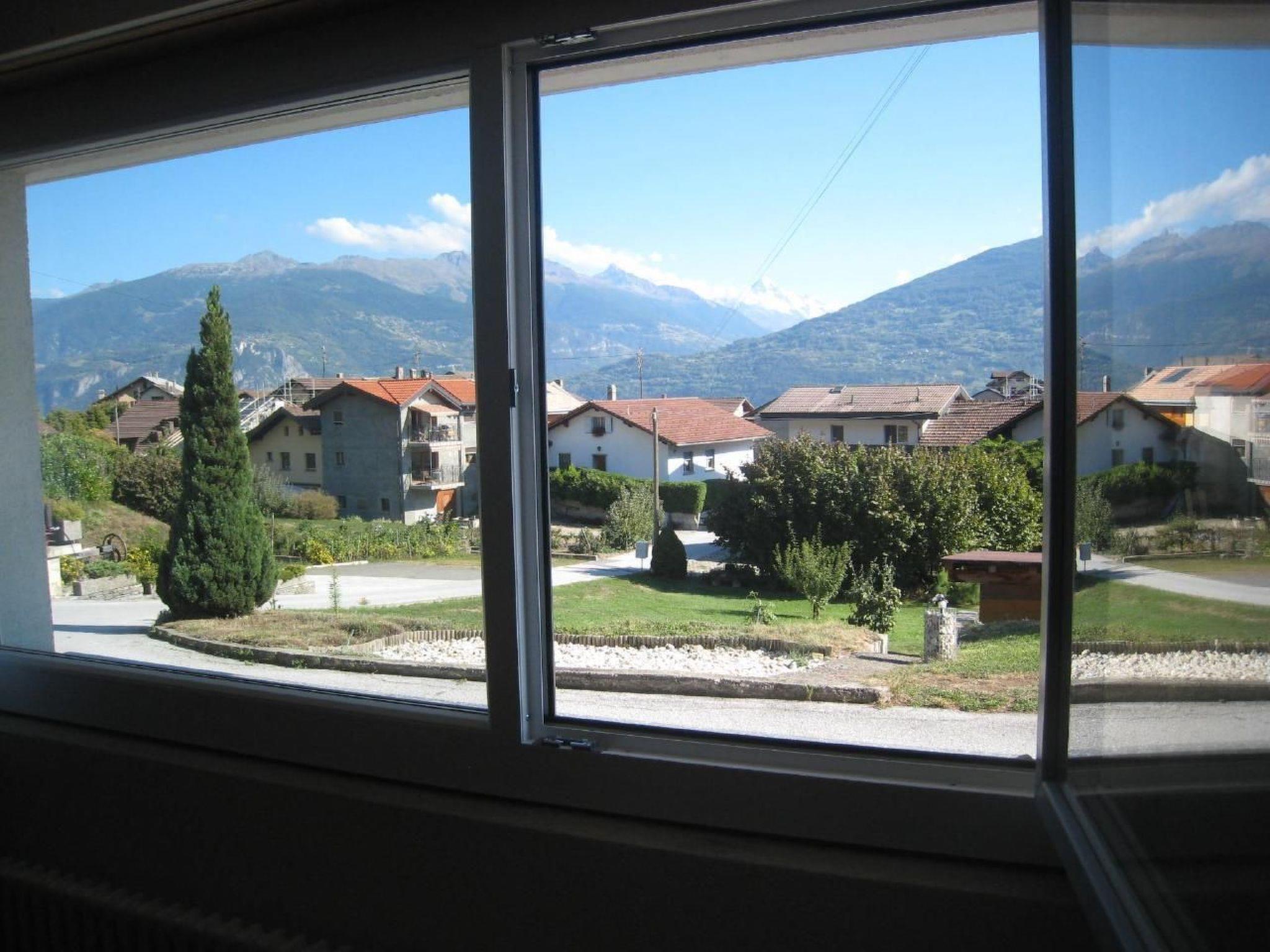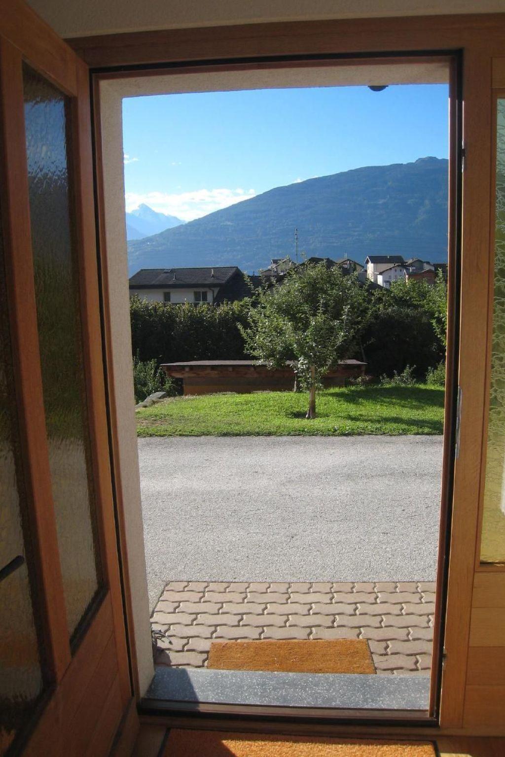 Sehr hell mit vollem Südblick auf einen Obstgarten und Überblick auf die Walliser Alpen (Dent Blanche und Matterhorn). Gut gelegen zwischen den Ferienorten Anzère, Montana und Ovronnaz (Magic Pass) und Thyon, Nendaz-Veysonnaz (4 Vallées).