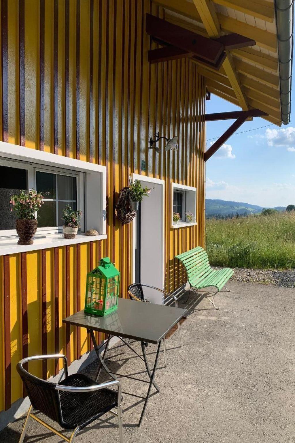Das im ehemaligen Stall - als separater Hausteil mit eigenem Ausseneingang und Terrassenzugang - eingebaute grosszügige loftige Studio (2.90m Deckenhöhe) gewährt durch seine drei Panoramafenster einen weiten Blick auf die Landschaft (keine unmittelbaren Nachbarn) und nachts auf den Sternenhimmel. Unser Bauernhof ist in Gehdistanz vom Dorf an einer Ortsrandlage mit schöner Sicht auf das Dorf Schönengrund und die Umgebung. Auf der Rückseite mit Blick auf den Jakobsweg wähnen Sie sich auf einer Alp und befinden sich doch in Fussdistanz zur Bäckerei, Metzgerei, Lebensmittelladen und Landi. In unserem Wald mit Bach können Sie sich tagsüber auch zurückziehen. Sind Sie auf dem Jakobsweg unterwegs, erreichen Sie uns zu Fuss in 15 Minuten. Falls Sie mit dem öV anreisen, holen wir Sie gerne an einer der Haltestellen ab.