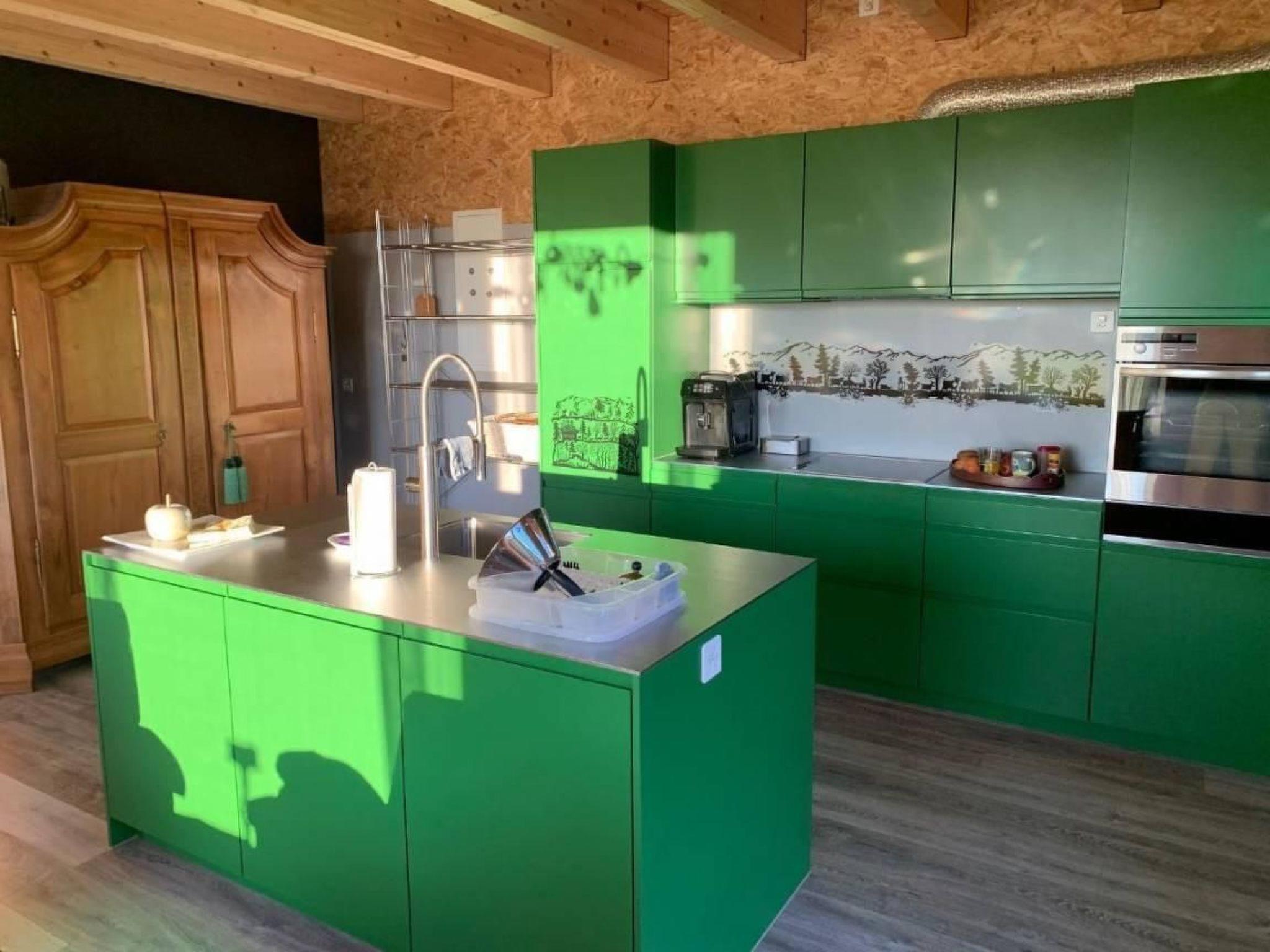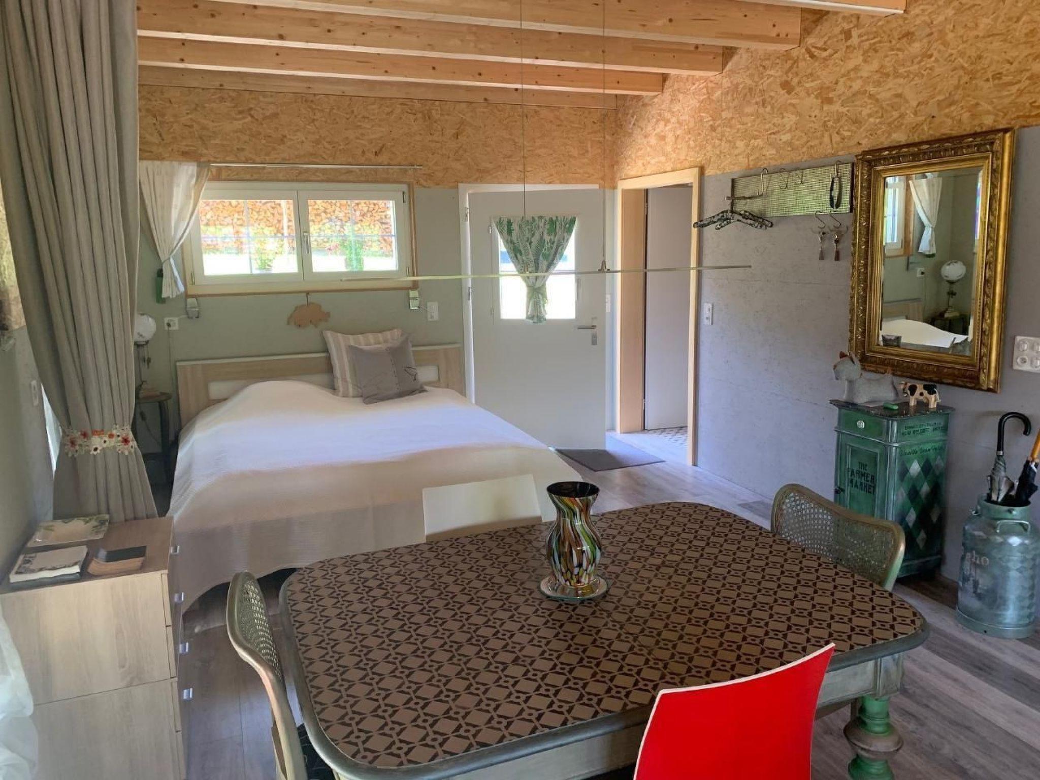 Das barrierefreie und treppenlose Studio (Türschwelle 3cm, Türbreiten 100cm) mit seiner grosszügigen modernen Küche und dem stylischen Badezimmer (Duschbadewanne mit seitlicher Einstiegstüre, Absatz 5.5cm) ist fussbodenbeheizt. Wir heizen mit Holz aus dem eigenen Wald und mit Sonnenenergie fürs Warmwasser. Auf Teppichböden haben wir bewusst verzichtet und auf LED Beleuchtung Wert gelegt. Unsere 4 Hektaren Wiesland rund um den Hof herum werden naturnah bewirtschaftet.