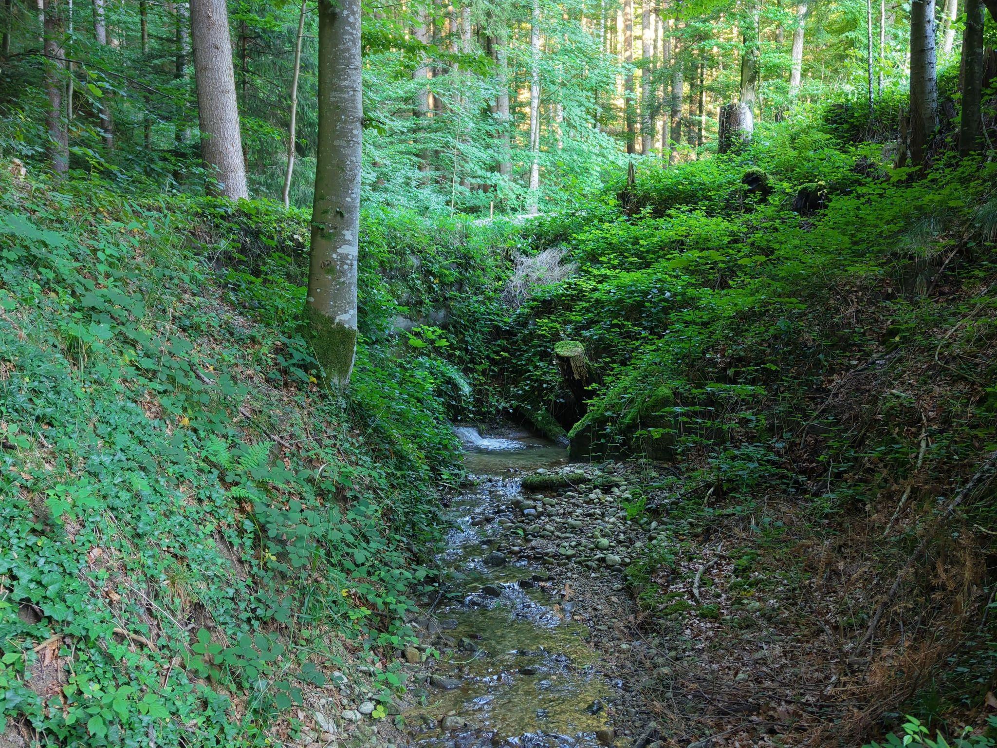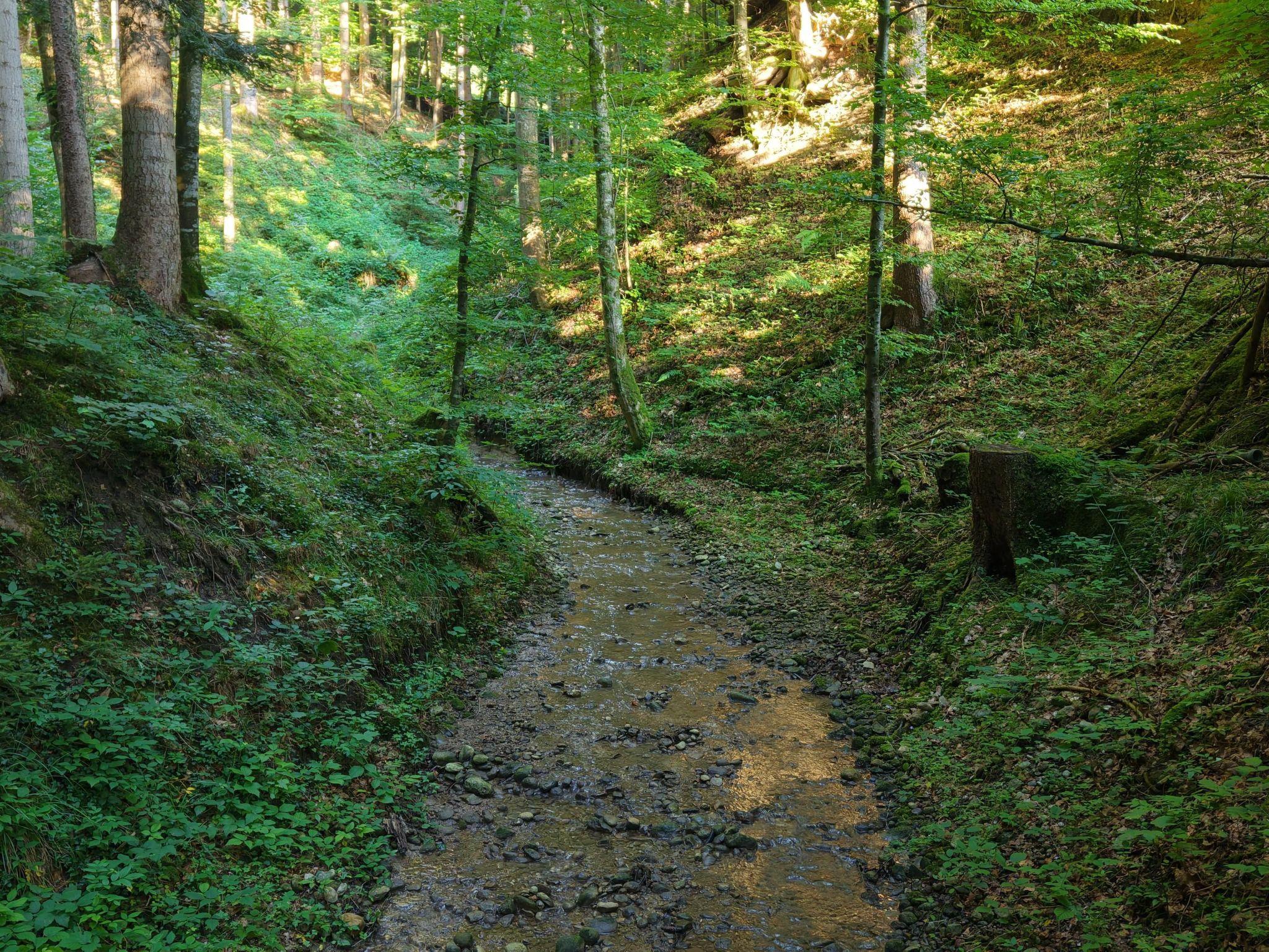 Ein kleiner Bach im Wald lädt zum Kneippen und Planschen ein