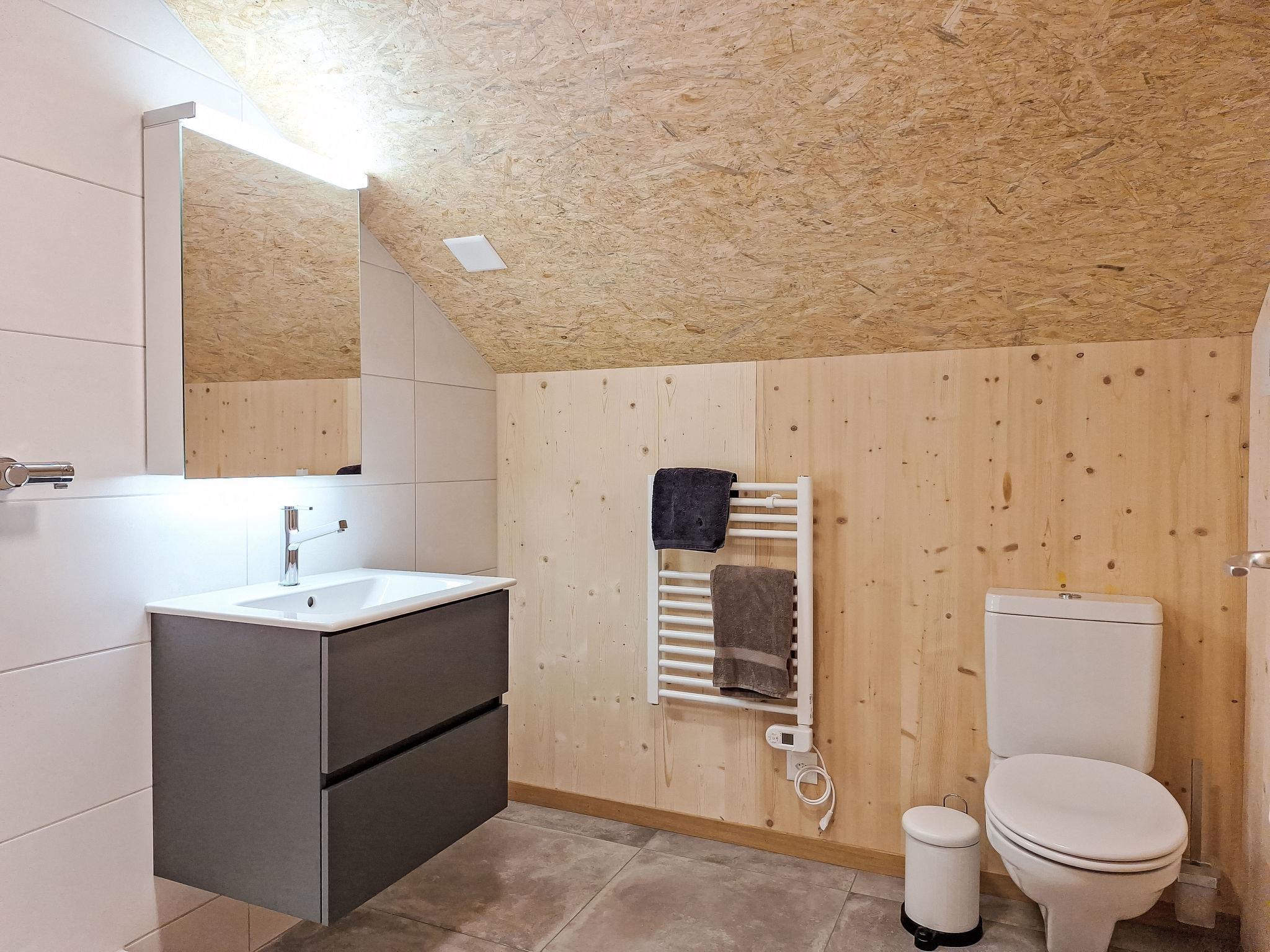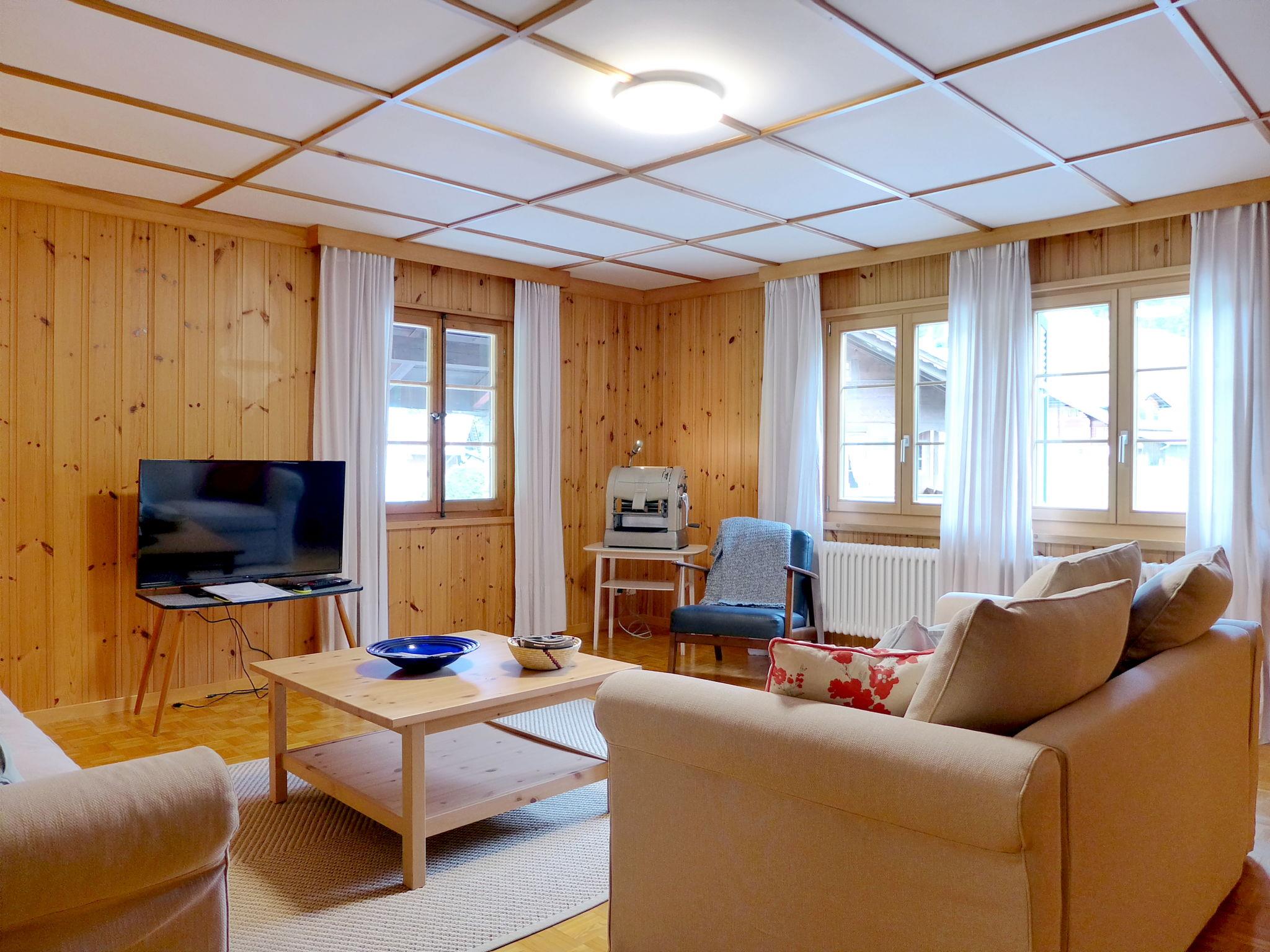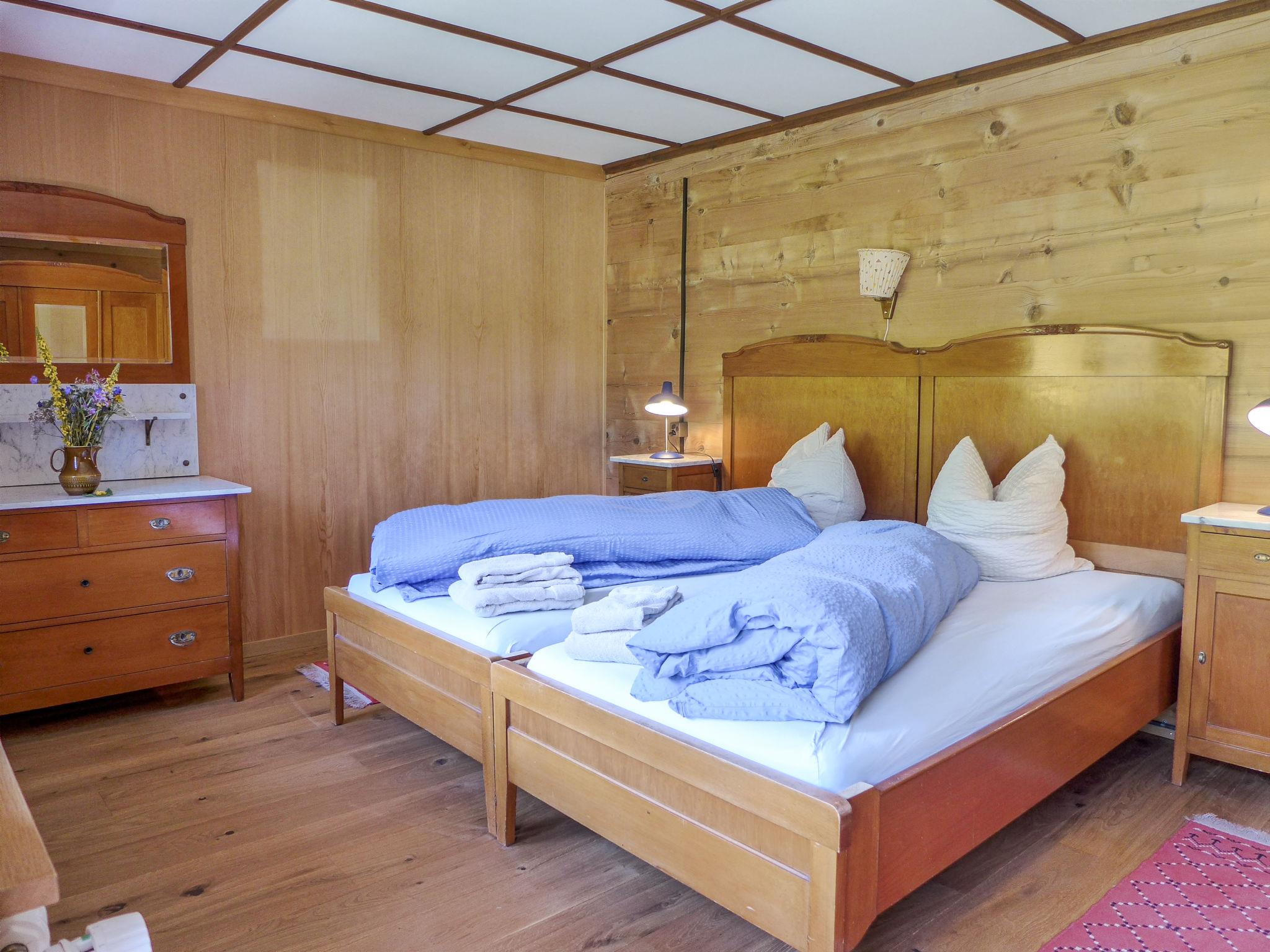 "Chalet Alte Post", 7-Zimmer-Maisonette-Wohnung 170 m2 auf 2 Stockwerken, im Obergeschoss. Geräumig, teilweise abgeschrägt, gemütlich und mit viel Holz eingerichtet: grosses Wohnzimmer 25 m2 mit Digital-TV und Flachbildschirm. Esszimmer mit Esstisch. Ausgang zum Balkon. 2 grosse Doppelzimmer, jedes Zimmer mit 1 Doppelbett (2 x 90 cm, Länge 190 cm). Ausgang zum Balkon. Offene Küche (Backofen, Geschirrspüler, 4 Glaskeramikplatten, Toaster, Wasserkocher, Mikrowelle, elektrische Kaffeemaschine). Dusche/WC. Obergeschoss: 2 abgeschrägte Zimmer, jedes Zimmer mit 1 Bett (90 cm, Länge 200 cm). 1 Zimmer mit 1 franz. Bett (140 cm, Länge 200 cm). Ausgang zum Balkon. Dusche/WC. Holzdielenboden. Grosser Balkon. Herrliche Sicht auf die Berge und die Landschaft. Zur Verfügung: Waschmaschine, Wäschetrockner, Kinderhochstuhl, Babybett. Internet (WLAN, gratis). Parkplatz. Bitte beachten: geeignet für Familien. Nichtraucher-Haus. Rauchmelder, Feuerlöscher.
