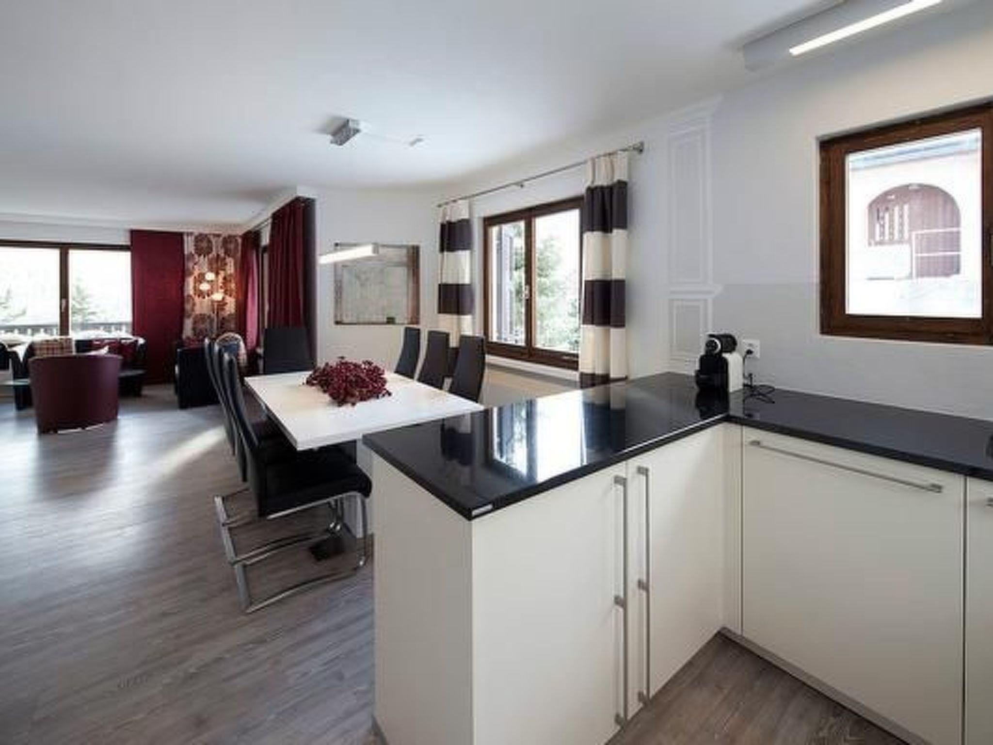 Im Inneren empfängt Sie die Wohnung mit einer modernen Ausstattung, die keine Wünsche offenlässt: Bequeme Ledermöbel in Schwarz und Bordeaux, zahlreiche Kissen und Decken für stundenlanges Entspannen, große Fenster, die den Blick auf die beeindruckende Umgebung freigeben, und ein offener Kamin aus Granit für gemütliche Abende. Die voll ausgestattete Küche beinhaltet hochwertige Geräte wie eine Nespresso-Maschine, Geschirrspüler und Mikrowelle sowie ein Fondue- und Raclette-Set. Der Wohnbereich erfreut mit Unterhaltungselektronik wie einem großen Fernseher inklusive Blueray/DVD-Player, Gratis-WLAN und einer Auswahl an Filmen und Spielen.
