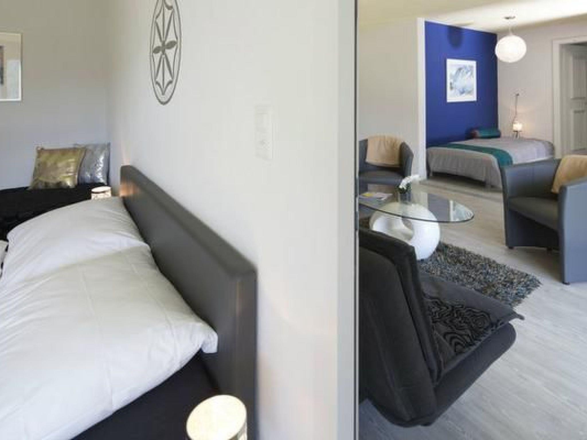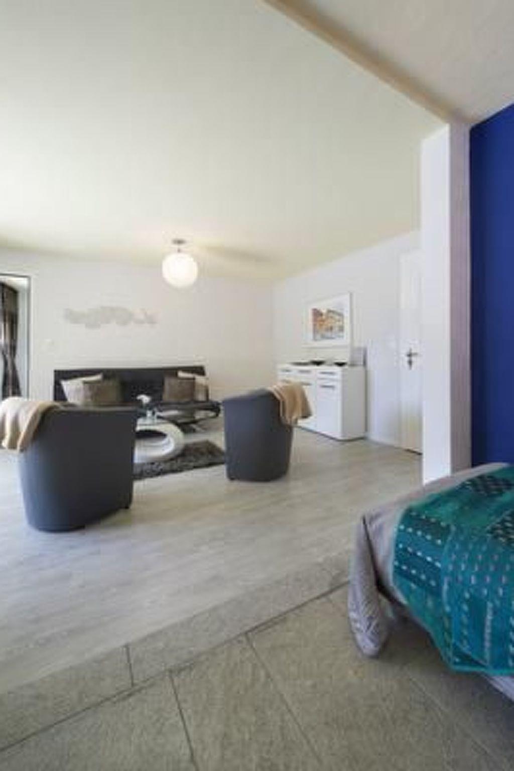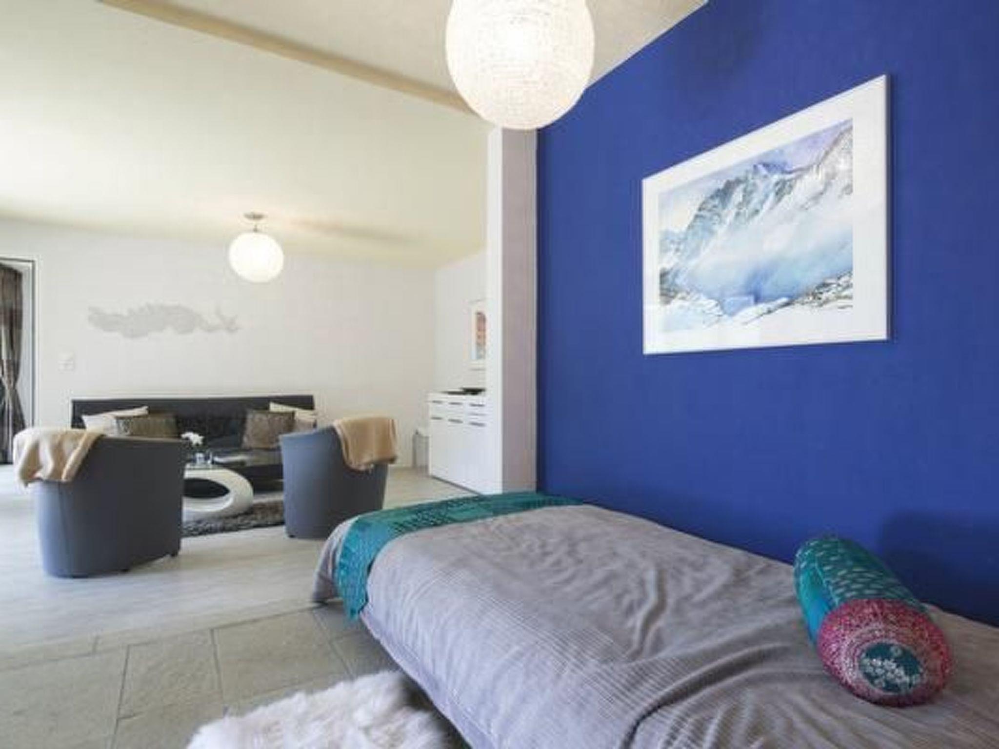 Die Innenräume sind ein Paradebeispiel exquisiten Komforts. Ein Schlafzimmer mit luxuriösem Doppelbett, Zusatzbett sowie ein weiteres Tagesbett im Wohnbereich bieten flexible Schlafmöglichkeiten. Der große Wohnraum ist einladend gestaltet mit Couchtisch, Spielmöglichkeiten, Fernseher und Gratis-WLAN. Ein luxuriöses Badezimmer und eine voll ausgestattete Wohnküche, inklusive Nespresso-Maschine, Fondue- und Raclette-Set, vervollständigen das Wohlfühlerlebnis.