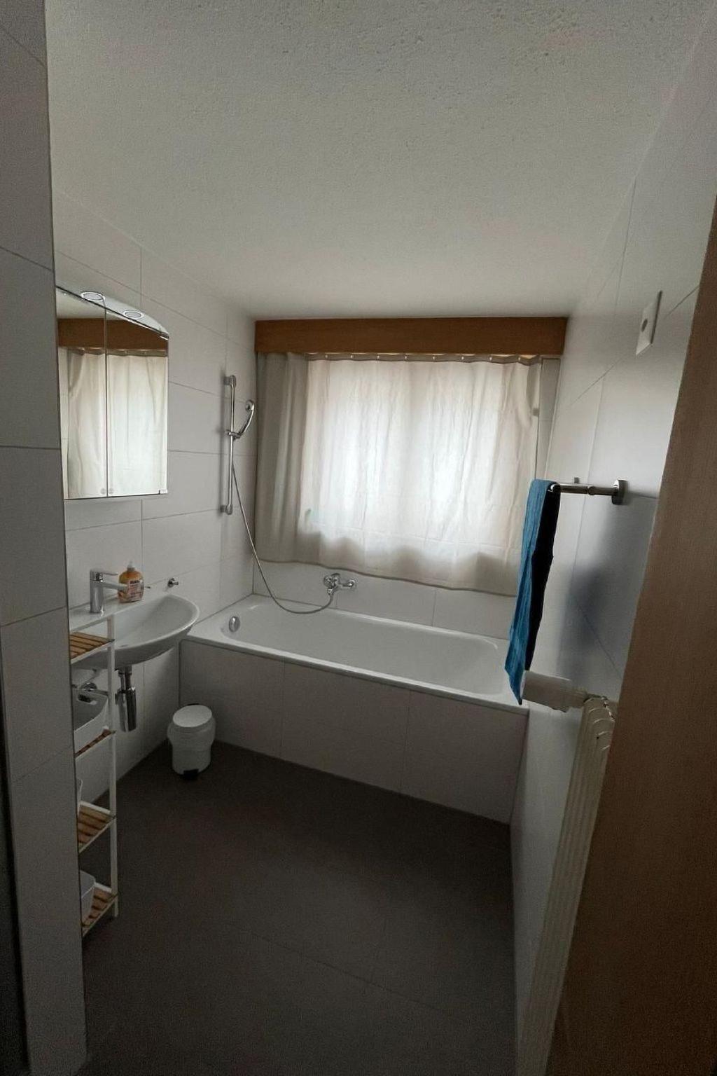 Badezimmer: Dusche und Badewanne, separates WC, Föhn, Waschmaschine, Tumbler