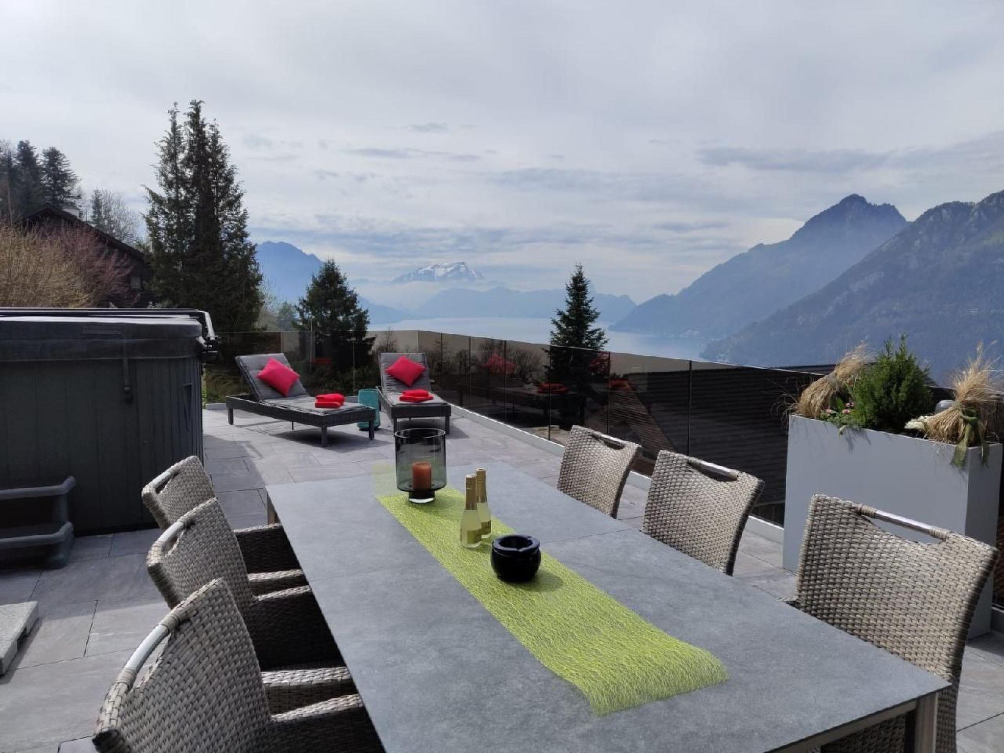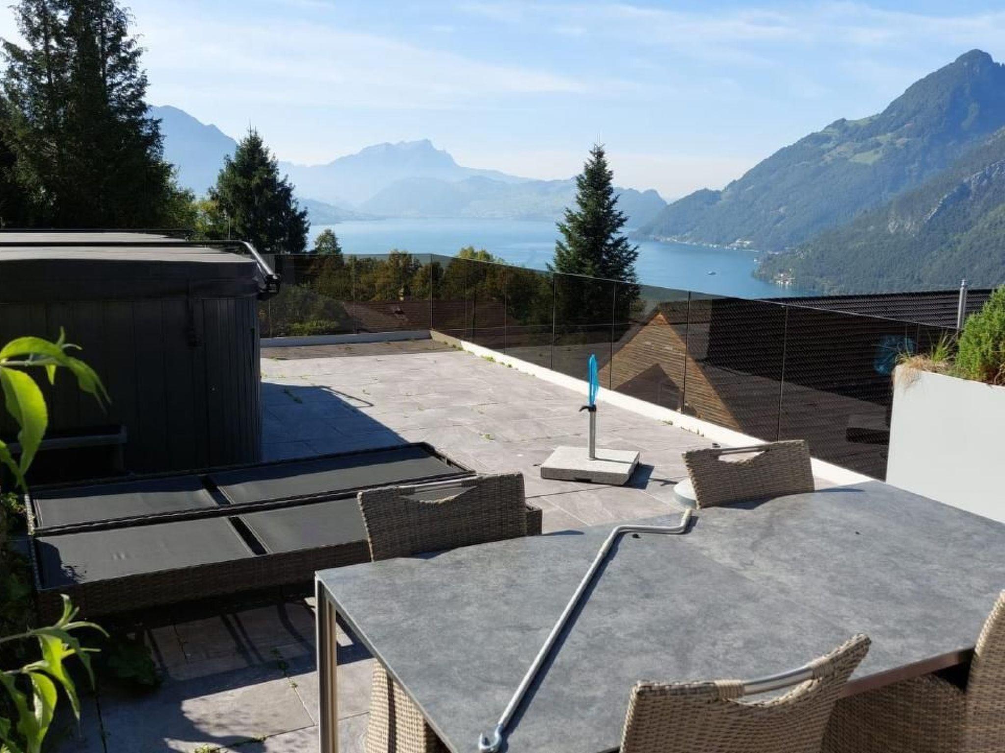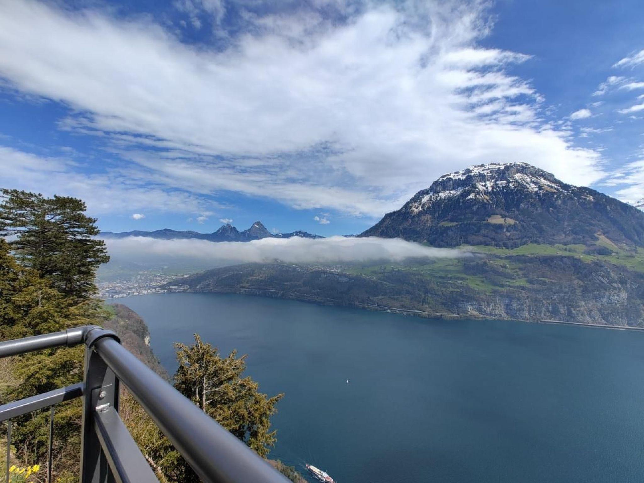Unsere Villa liegt direkt über dem Vierwaldstättersee mit einzigartigem Panoramablick auf den See und die Berge (Pilatus und Rigi)