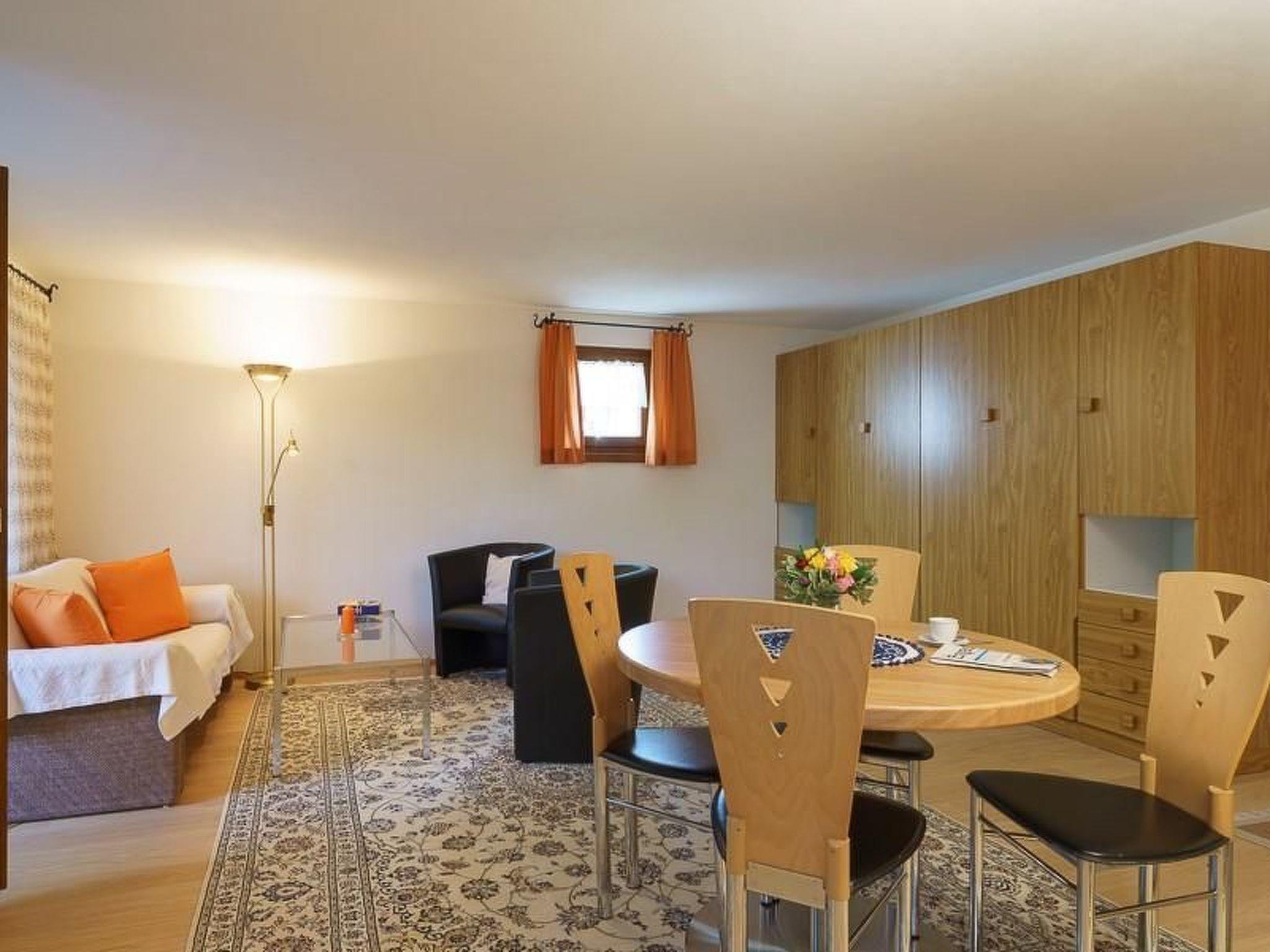 Die Innenraumgestaltung spiegelt mit hochwertigem Eichenparkett und einer liebevoll zusammengestellten Möblierung die Gemütlichkeit des Engadins wider. Das Wohnzimmer, ausgestattet mit einer Sitzgruppe, Esstisch für vier Personen und optionalen Klappbetten, verspricht auch bei schlechtem Wetter angenehme Stunden. Die integrierte, große Küche lässt mit Keramikkochplatte, Dampfabzug, Nespresso-Maschine, und umfassendem Zubehör für Fondue und Raclette keine kulinarischen Wünsche offen. Ein modernes Duschbad/WC sowie ein freundliches Schlafzimmer mit Doppelbett und Nachttischen komplettieren das behagliche Innenraumangebot.