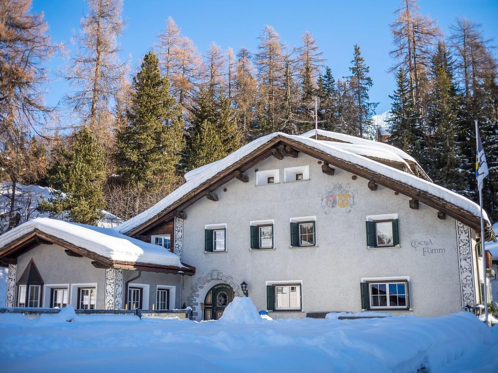 Die Chesa Fümm liegt im Ortszentrum von Sils, nahe an Wanderwegen, Loipen, Busstation und Einkaufsladen.