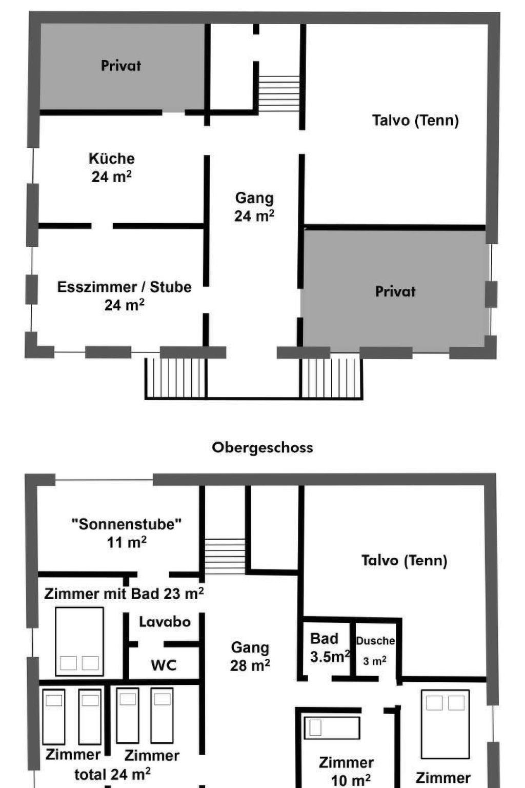 Das Haus (Baujahr 1792) steht unter Denkmalschutz; wir haben es nur vorsichtig und mit Respekt gegenüber der alten Bausubstanz modernisiert. Die mit Arvenholz getäferte Wohnstube wird von der Küche her mit einem alten Engadiner Ofen geheizt. Eine kleine Holztreppe führt zu den darüber liegenden Schlafzimmern.