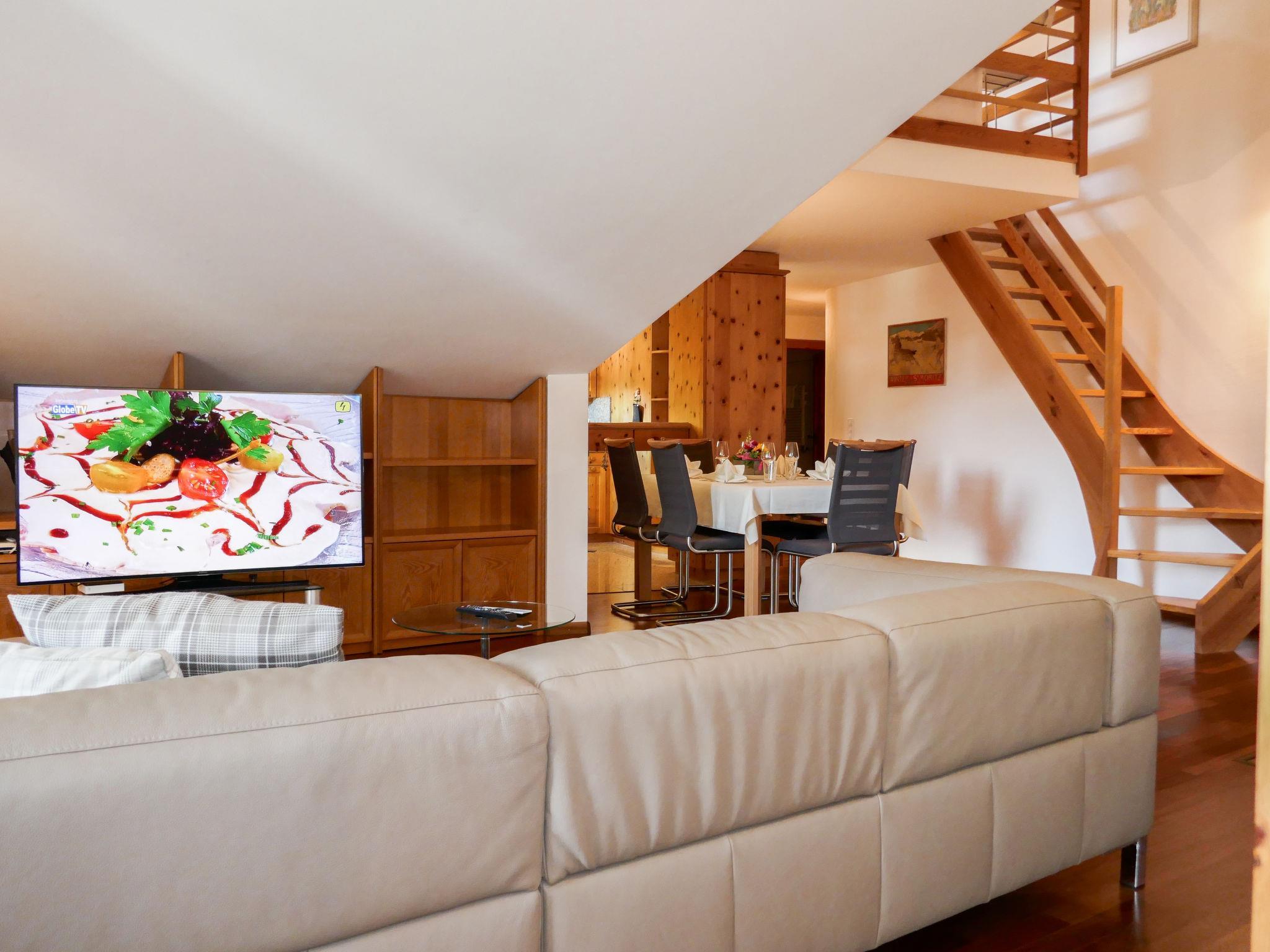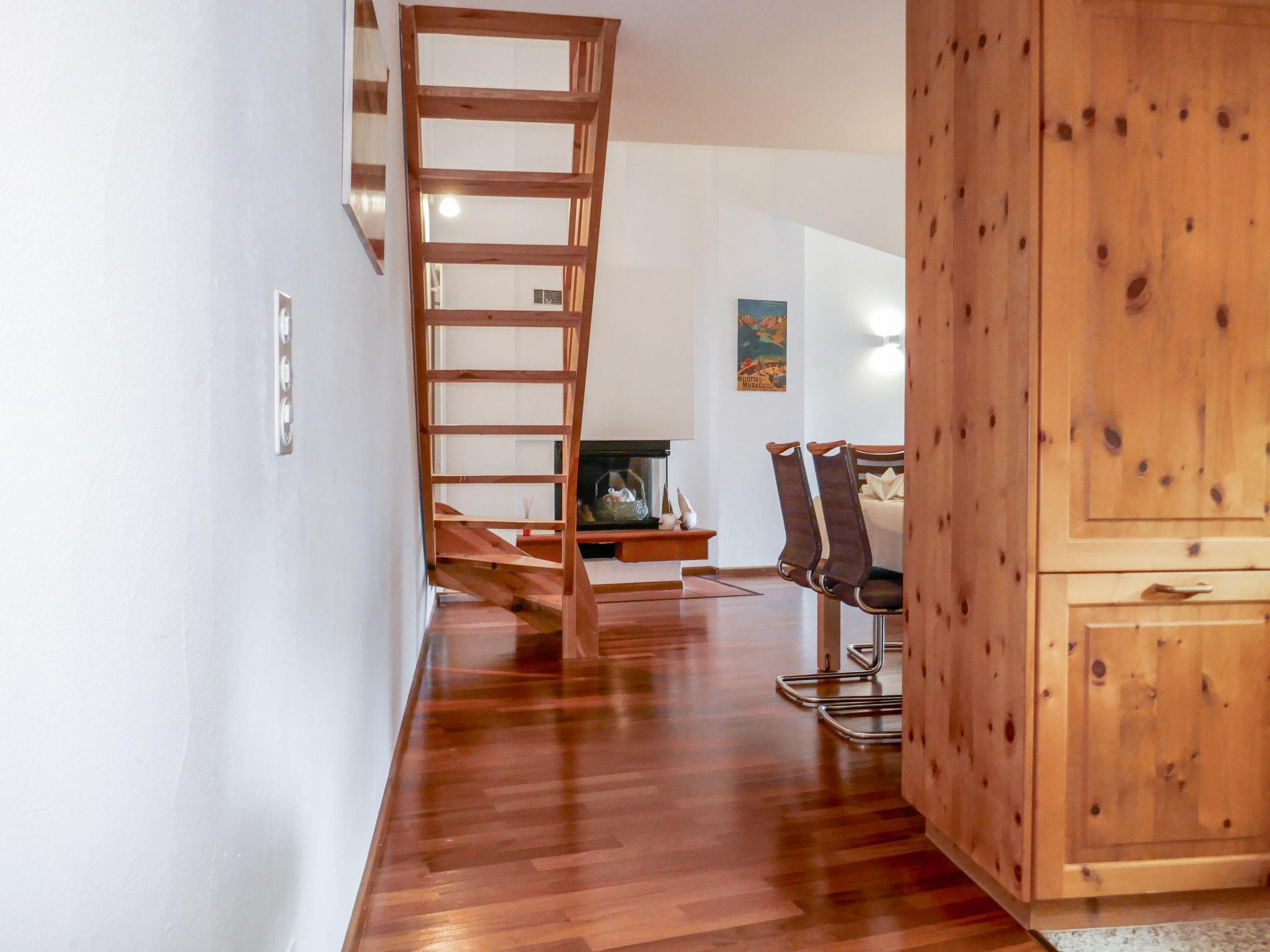 "Chesa Polaschin E - E21 - Sils", 3-Zimmer-Wohnung 80 m2 auf 2 Stockwerken im 2. Stock. Geräumig, teilweise abgeschrägt, schön und gemütlich eingerichtet: Wohn-/Esszimmer mit offenem Kamin (nur Deko). 1 Zimmer mit 1 franz. Bett (1 x 160 cm, Länge 200 cm). Offene Küche (Backofen, Geschirrspüler, 4 Glaskeramikplatten, Toaster, Wasserkocher, elektrische Kaffeemaschine, Kapseln für die Kaffeemaschine (Nespresso) extra, Fondue Set (Chinoise)) mit Esstisch, TV (Flachbildschirm). Ausgang zum Balkon. Bad/WC, Dusche/WC. Heizung. Obergeschoss: Galerie mit 1 franz. Bett (1 x 160 cm, Länge 200 cm). Parkettboden. Balkonmöbel. Schöne Sicht auf die Berge. Zur Verfügung: Haartrockner. Internet (Wireless LAN, gratis). Garage Nr. 105, Höhe 230 cm, Breite 233 cm. Bitte beachten: nicht geeignet für Kinder unter 6 Jahren. Nichtraucher-Unterkunft, Nichtraucher-Haus. Maximal 1 Haustier/Hund erlaubt. Anstelle eines abgeschlossenen Schlafzimmers befinden sich manche Schlafplätze in einem offenen Bereich (Galerie, Nische etc.).