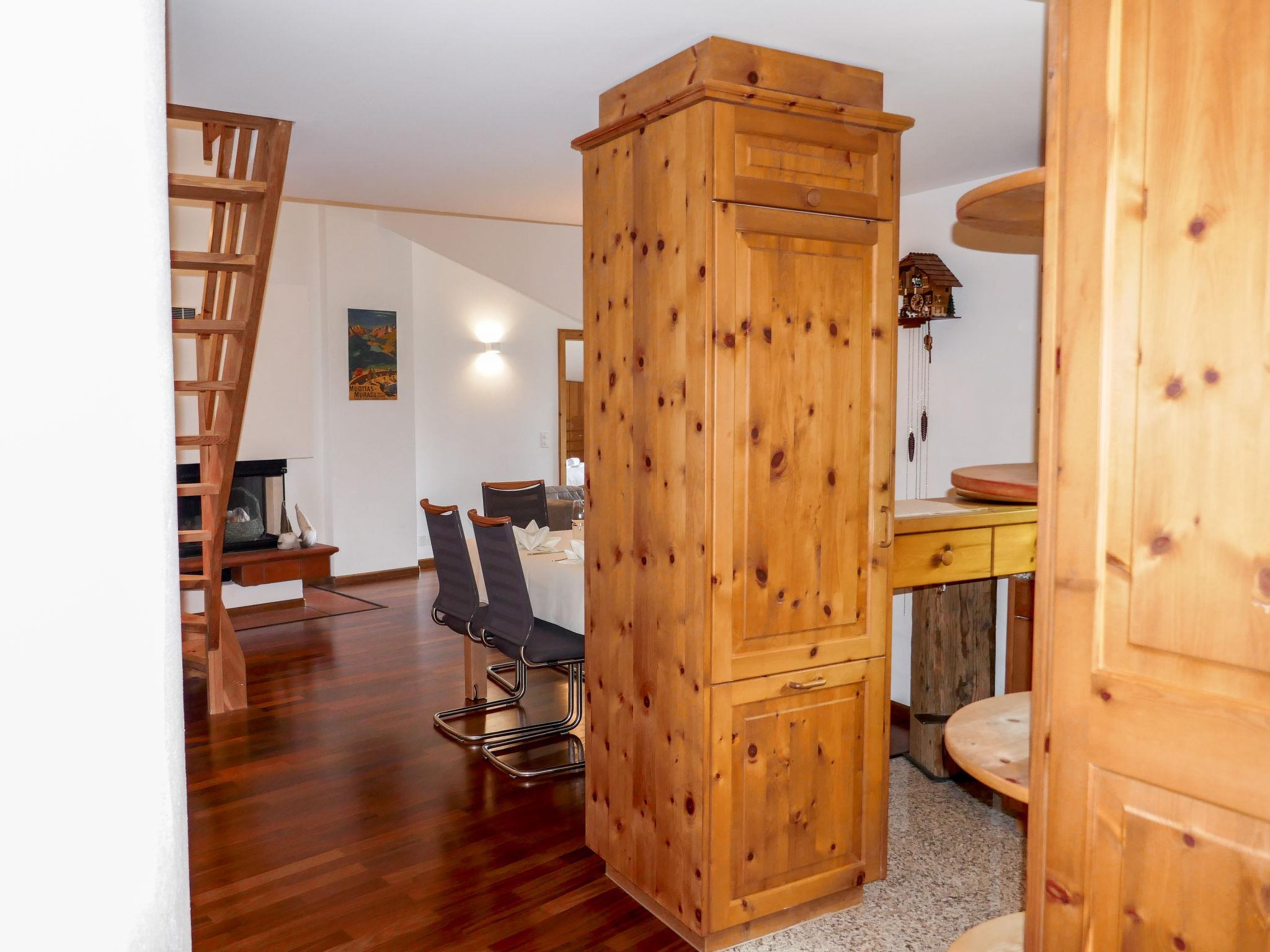 Sils Maria 10 km von St. Moritz: Gemütliches Mehrfamilienhaus "Chesa Polaschin E", auf 3 Stockwerken. Am Ortsrand, in einem Wohnquartier, 1.5 km vom See. Im Hause: Fahrstuhl, Einstellraum für Fahrräder, Skiraum, Zentralheizung, Waschmaschine (extra), Wäschetrockner (zur Mitbenutzung), Trockenraum. Gemeinschaftsgarage. Lebensmittelgeschäft 100 m, Restaurant 500 m, Bushaltestelle "Sils Maria, Seglias" 300 m, Hallenbad 1 km, See Silser See 1.5 km. Golfplatz (18 Loch) 17 km, Surfschule 7 km, Tennis 1.2 km, Tennishalle 1.2 km, Minigolf 1.2 km, Reitstall 9 km, Wanderwege ab Haus 100 m, Radweg 300 m, Luftseilbahn 900 m, Skilift 900 m, Skiverleih 300 m, Skibushaltestelle 300 m, Skischule 800 m, Kinderskischule 700 m, Schlittelbahn 1.2 km, Langlaufloipe 100 m, Eisfeld, Kinderspielplatz 700 m. Nahe gelegene Sehenswürdigkeiten: Nietzsche Haus 700 m, Robbi Museum 1 km, Segantini Museum in St. Moritz 10 km. Bekannte Skigebiete sind gut erreichbar: Furtschellas - Corvatsch 900 m, Corviglia 10 km, Diavolezza - Lagalb 30 km. Bekannte Seen in der Umgebung sind gut erreichbar: Silser See 1.5 km, Silvaplana See 1.5 km, St. Moritzer See 10 km. Wandergebiete: Val Fex & Furtschellas, Via Engiadina 1.5 km, Silser & Silvaplaner See 1.5 km. Bitte beachten: Gratis Skibus. Der gratis Skibus fährt zum Skigebiet Furtschellas.
