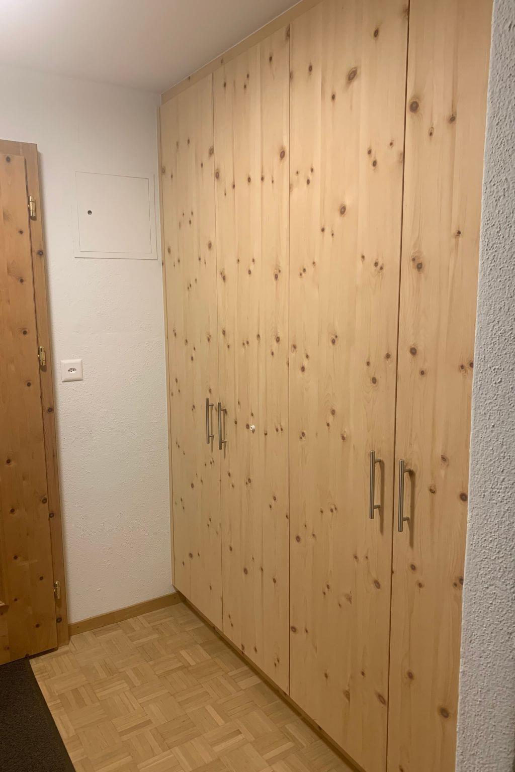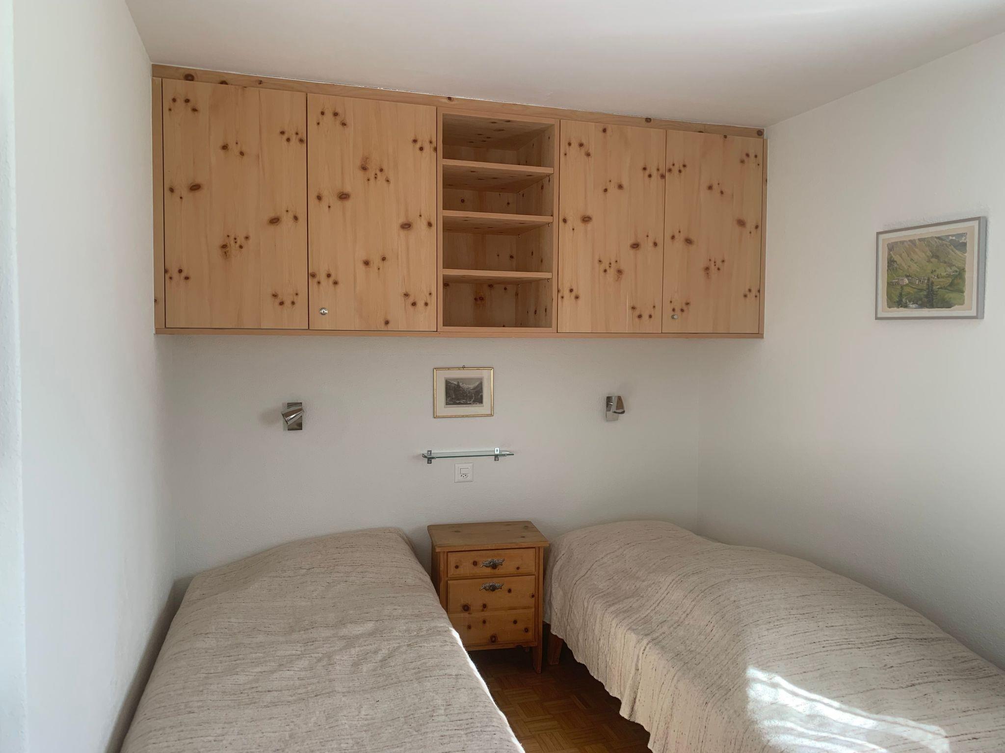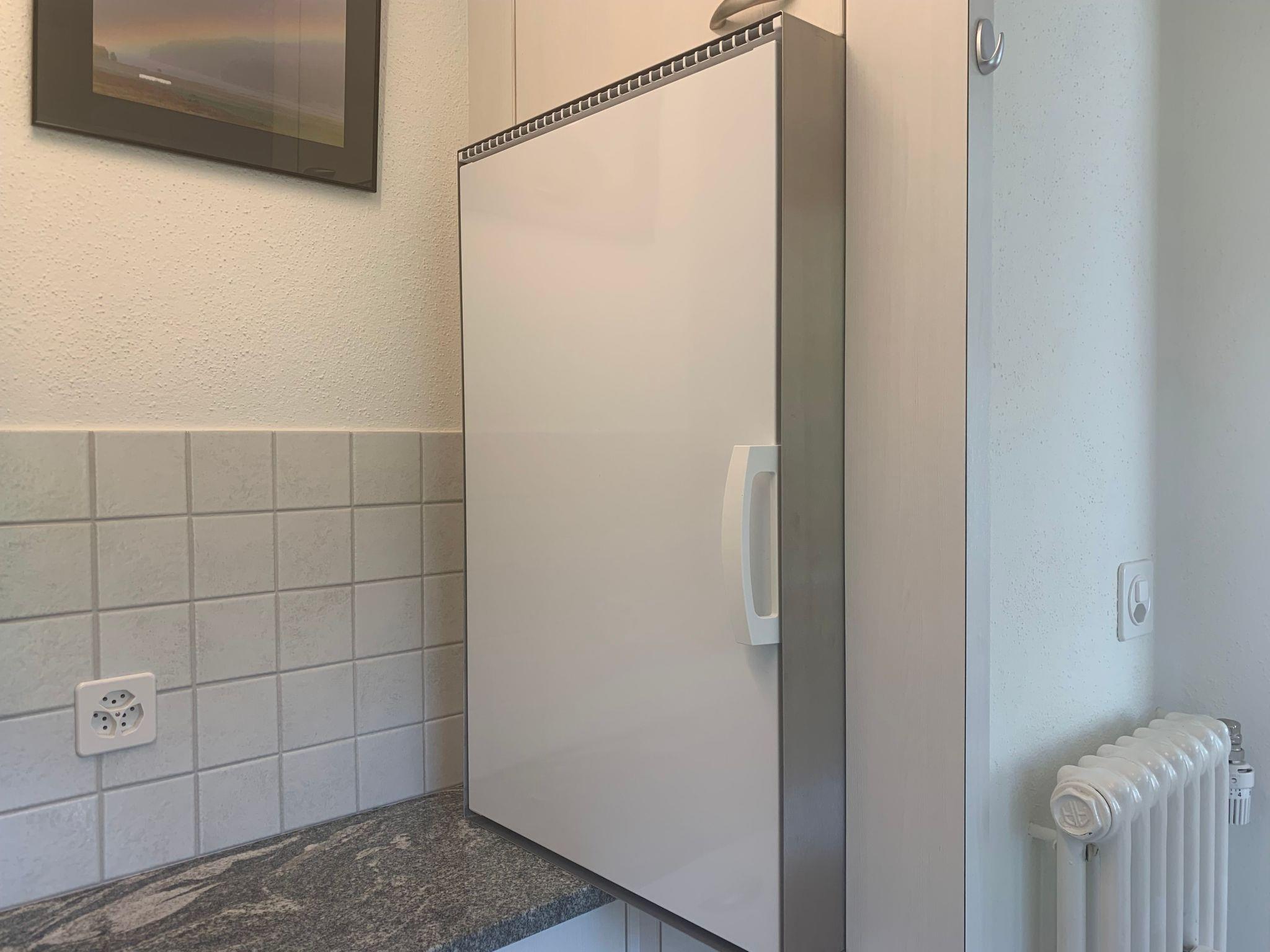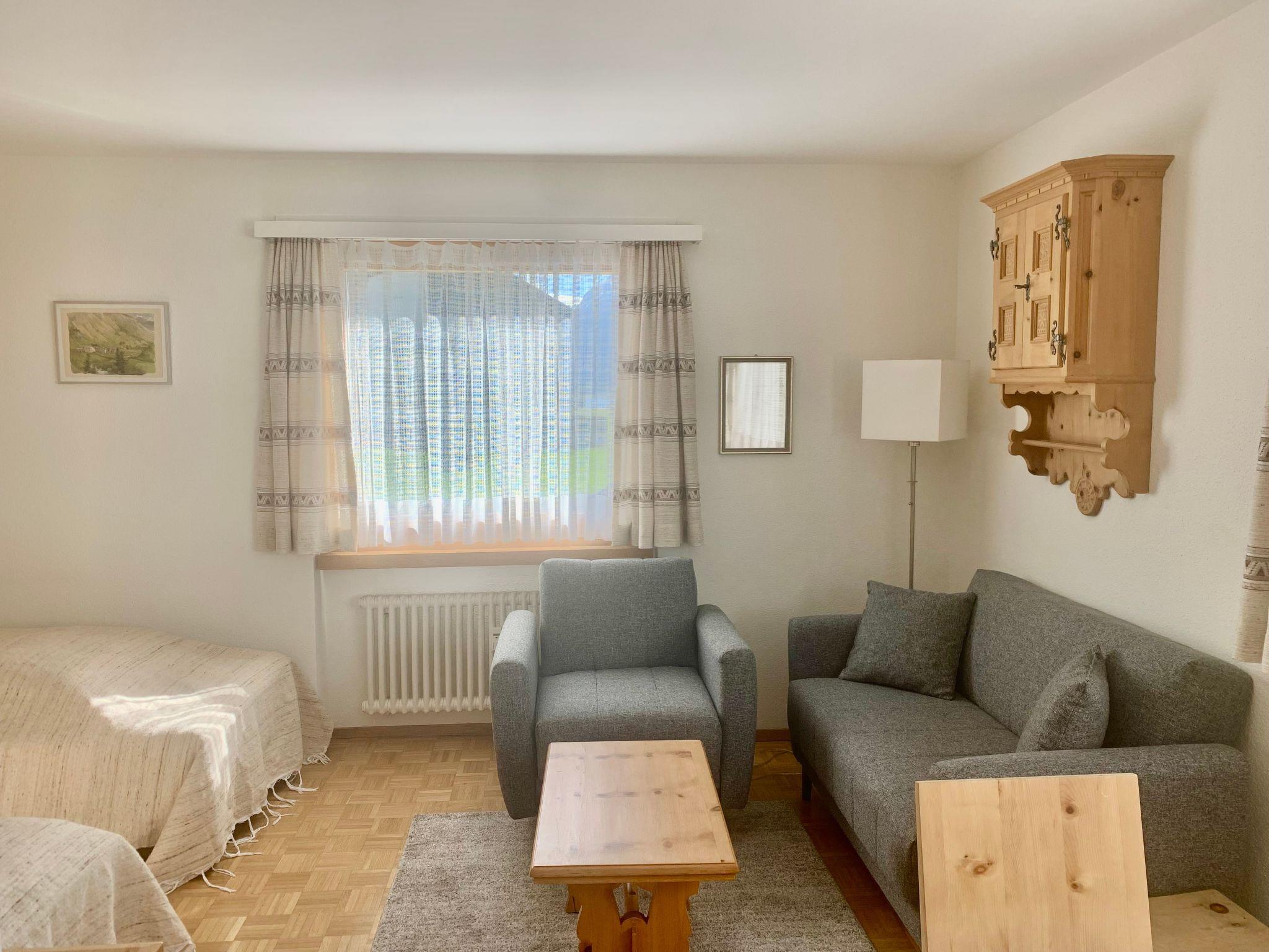 Das Herzstück der Wohnung bildet das gemütliche Wohnschlafzimmer, ausgestattet mit hochwertigen Arvenmöbeln, einer Eckbank, einem Tisch, Stühlen, einem Sessel, zwei Einzelbetten (90 x 190 cm), einem Fernseher und kostenlosem Wireless-LAN. Die moderne Küche lässt ebenfalls keine Wünsche offen. Mit einem Kühlschrank inklusive kleinem Gefrierfach, einem Backofen, einem Geschirrspüler und einer umfassenden Auswahl an Geschirr, Gläsern, Besteck und Pfannen sind Sie bestens vorbereitet. Außerdem runden ein Fondueset und ein Raclette-Ofen das Angebot ab, um gemütliche Abende in der Wohnung zu genießen.