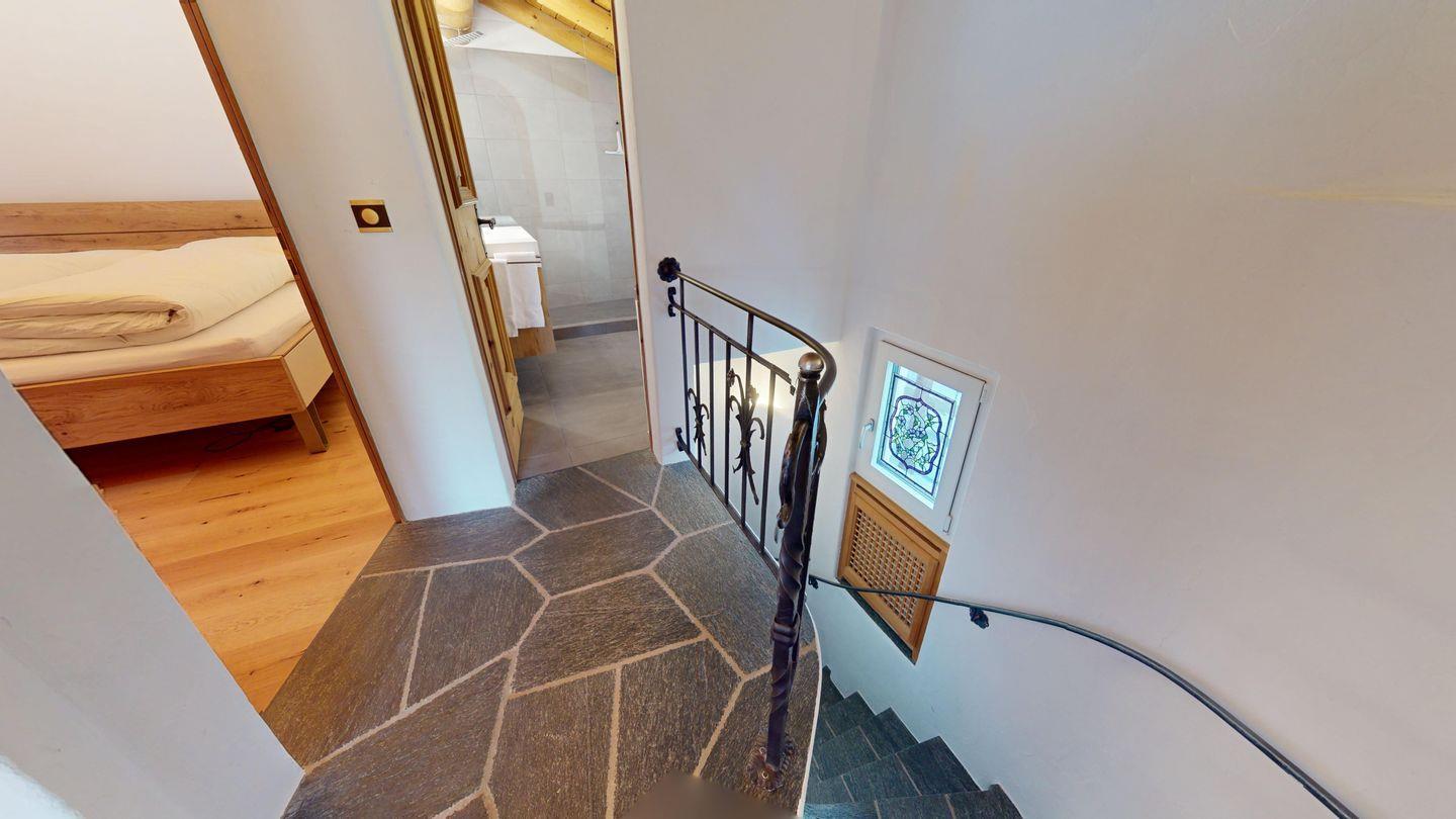 Das grosszügige und gemütliche Wohnzimmer lädt zum Verweilen ein. Hier können Sie sich in einer modernen Umgebung entspannen, die dennoch von der Wärme des Holzes und der Authentizität traditioneller Möbel geprägt ist. Die Wohnung verfügt über eine offene Küche und einen Essbereich. Das geräumige Schlafzimmer verfügt über ein komfortables Doppelbett und garantiert erholsame Nächte.