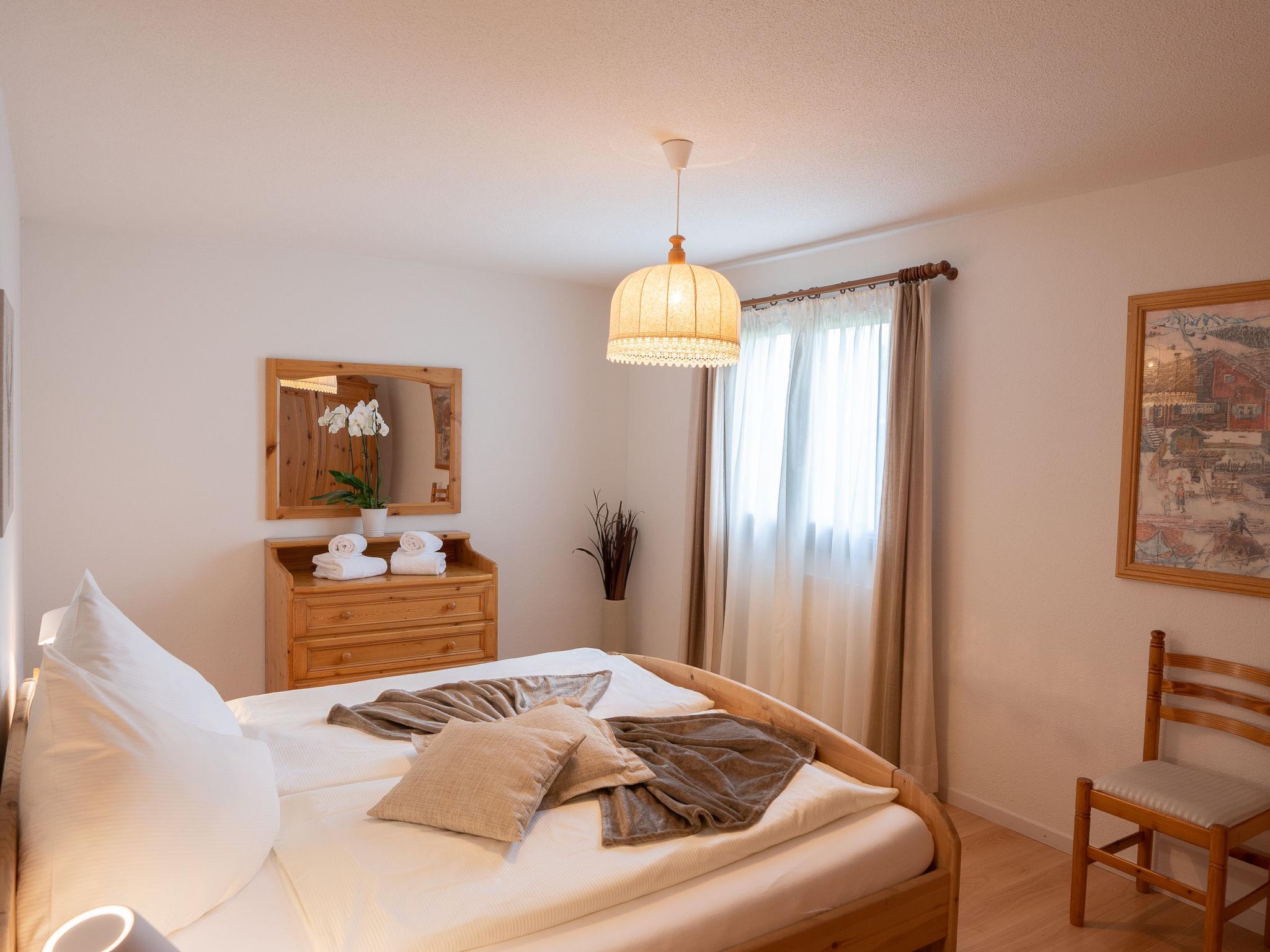 "Chesa Zupeda C2", 2-Zimmer-Wohnung 70 m2, im Erdgeschoss. Komfortabel und gemütlich eingerichtet: Wohn-/Esszimmer mit 1 Doppeldiwanbett (1 x 160 cm, Länge 190 cm), TV. Ausgang zum Gartensitzplatz, Richtung Westen. 1 Zimmer mit 1 Doppelbett (2 x 90 cm, Länge 200 cm). Küche (Backofen, Geschirrspüler, 4 Glaskeramikplatten, Toaster, Wasserkocher, elektrische Kaffeemaschine). Bad/WC. Heizung. Kleine Terrasse. Terrassenmöbel. Seitliche Sicht auf die Berge. Zur Verfügung: Haartrockner. Internet (Wireless LAN, gratis). Garage Nr. C2, Höhe 215 cm, Breite 220 cm. Maximal 1 Haustier/Hund erlaubt.