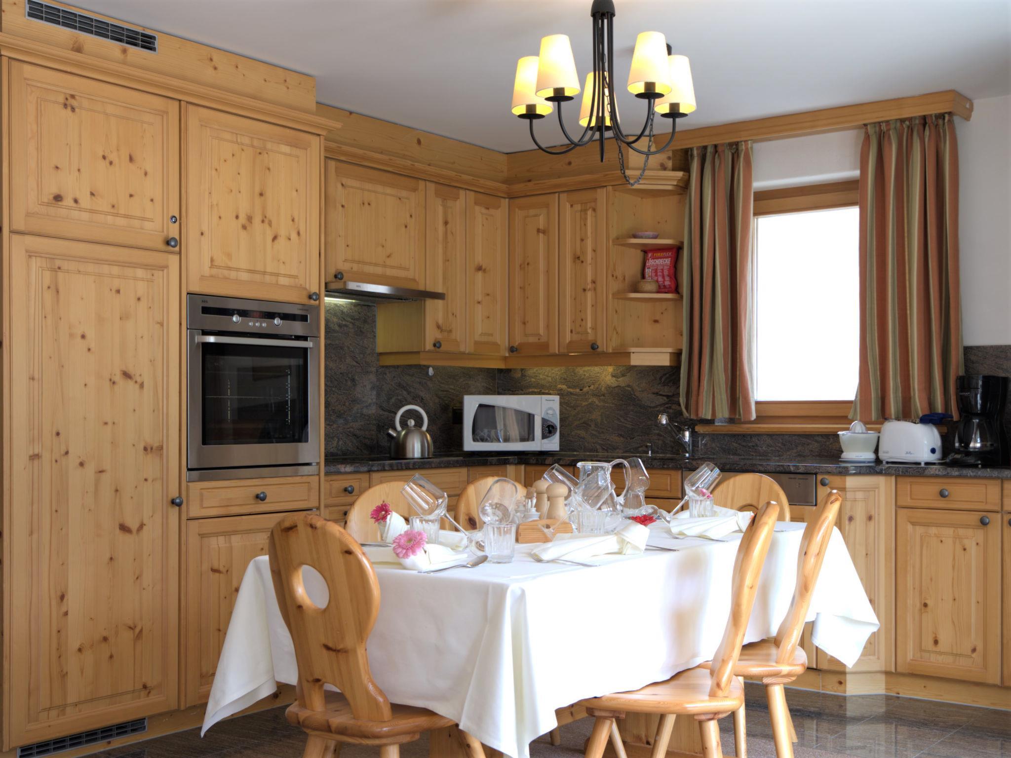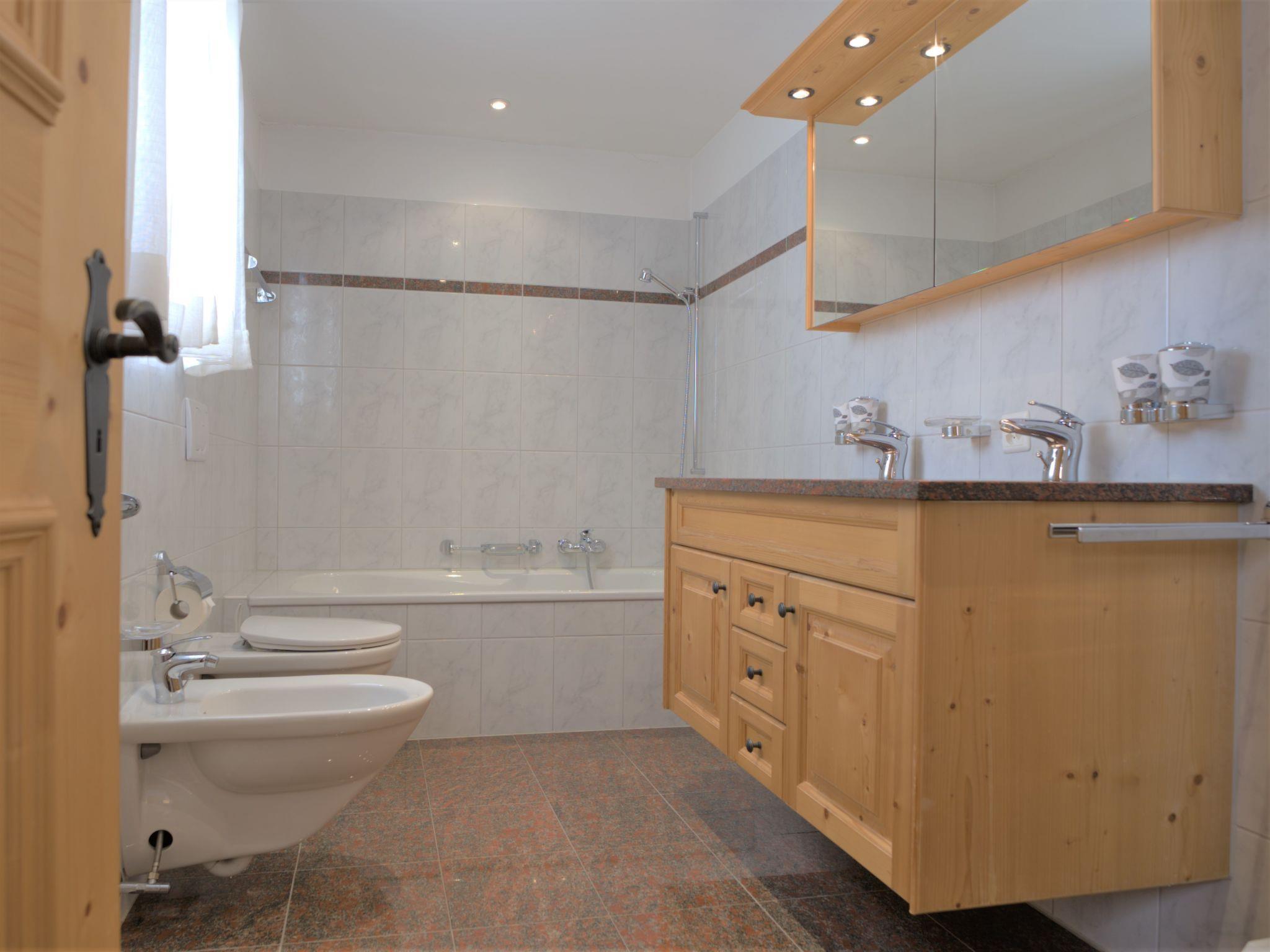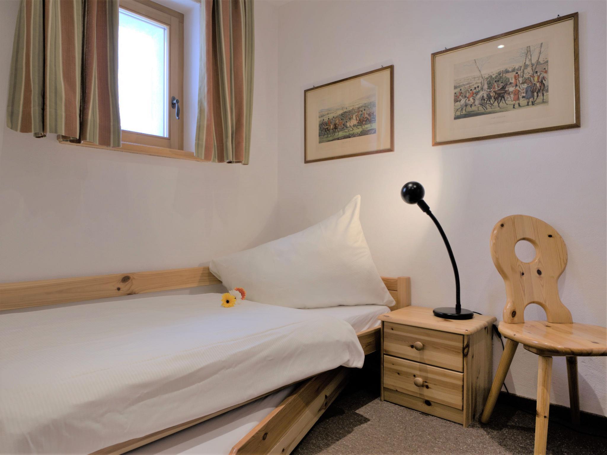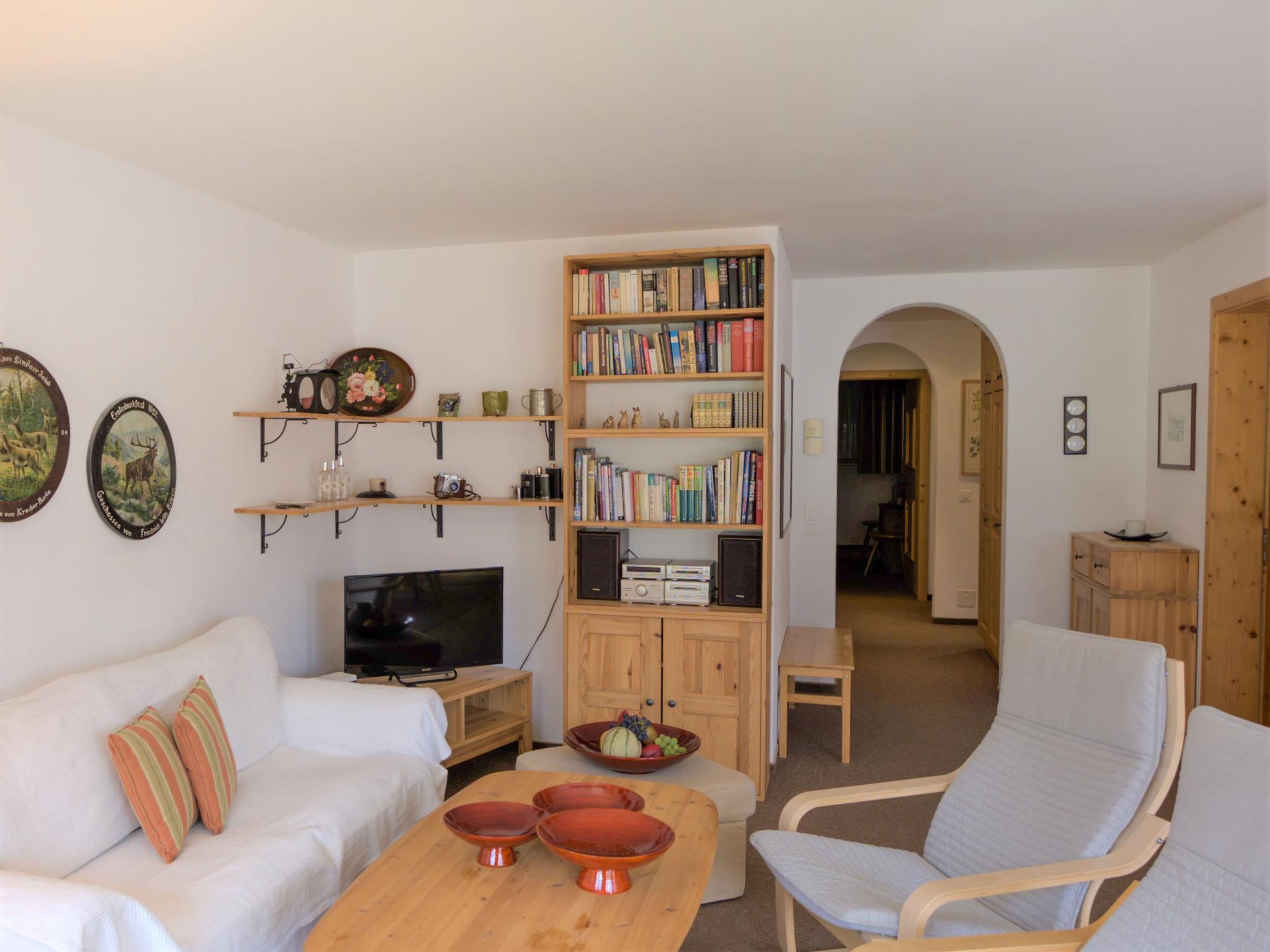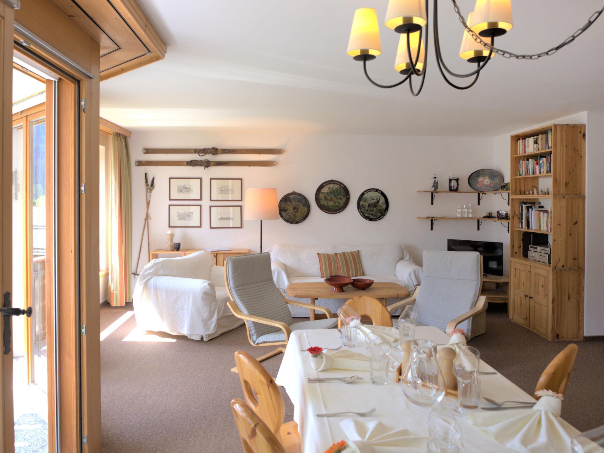 "Chesa Dal Luf B5", 4-Zimmer-Wohnung 90 m2 im 1. Stock. Geschmackvoll und gemütlich eingerichtet: Wohn-/Esszimmer mit TV und DVD. Ausgang zum Balkon, Richtung Südosten. 1 kleines Zimmer mit 1 Bett (80 cm, Länge 190 cm), 1 Ausziehbett (Länge 180 cm). 1 Zimmer mit 1 x 2 Etagenbetten (80 cm, Länge 200 cm). 1 Doppelzimmer mit 1 Doppelbett (2 x 80 cm, Länge 200 cm), Bad/Bidet/WC. Offene Küche (Geschirrspüler, 3 Glaskeramikplatten, 1 Induktionskochplatten, Toaster, Wasserkocher, Mikrowelle, elektrische Kaffeemaschine, Kapseln für die Kaffeemaschine (Nespresso) extra, Racletteofen, Fondue Set (Käse)) mit Esstisch. Dusche/Bidet/WC. Bodenheizung. Grosser Balkon. Schöne Sicht auf die Berge. Zur Verfügung: Bügeleisen, Haartrockner. Internet (Wireless LAN, gratis). Garage Nr. 9, Höhe 250 cm, Breite 230 cm.