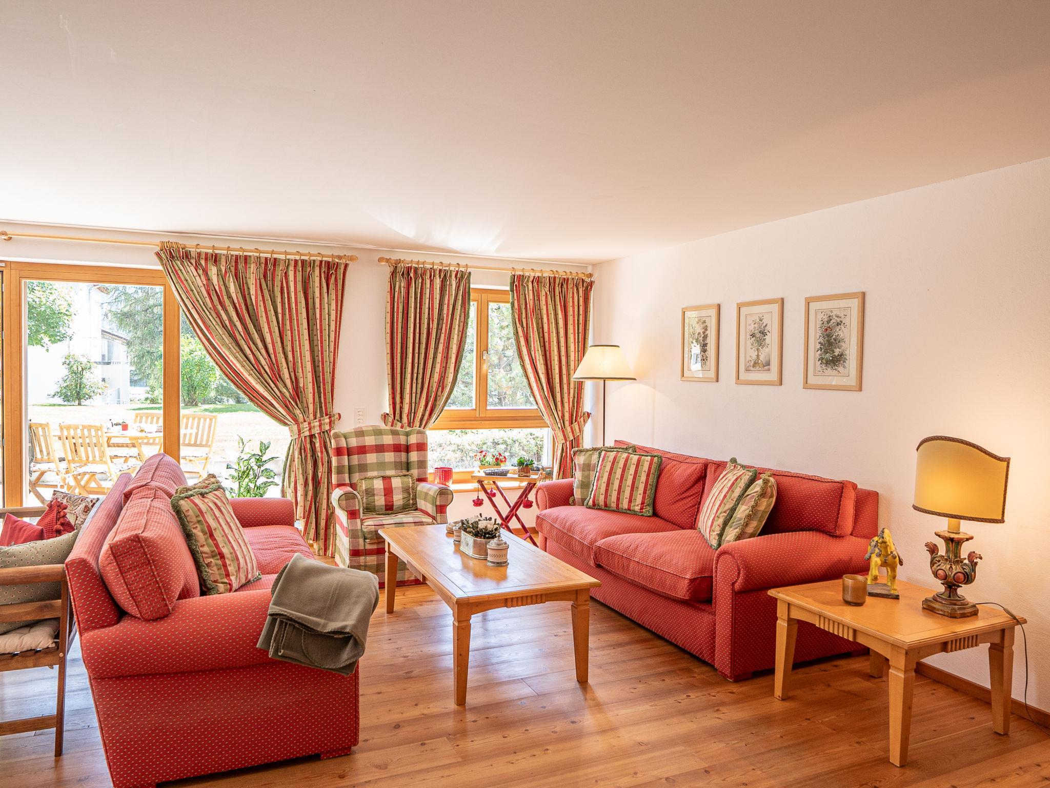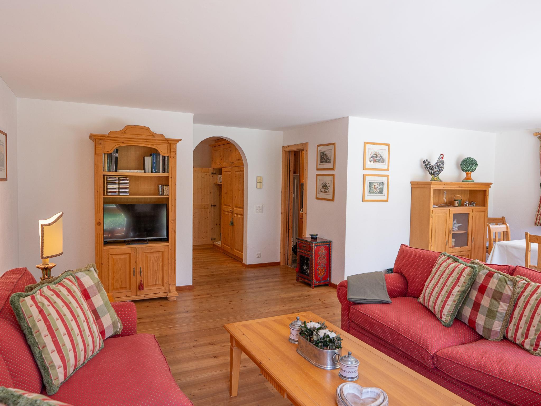 "Chesa Dal Luf B1", 3-Zimmer-Wohnung 110 m2, im Erdgeschoss. Geräumig und hell, geschmackvoll und gemütlich eingerichtet: grosses Wohn-/Esszimmer mit TV (Flachbildschirm). Ausgang zum Garten, zum Gartensitzplatz. 1 grosses Doppelzimmer mit 1 Doppelbett (2 x 90 cm, Länge 200 cm), Bad/WC und Bidet. 1 Zimmer mit 2 Betten (90 cm, Länge 200 cm). Grosse Küche (Backofen, Geschirrspüler, 2 Glaskeramikplatten, 2 Induktionskochplatten, Toaster, Wasserkocher, elektrische Kaffeemaschine, Kapseln für die Kaffeemaschine (Nespresso) extra). Dusche/WC. Heizung. Holzdielenboden. Terrassenmöbel. Schöne Sicht auf die Berge und die Landschaft. Zur Verfügung: Bügeleisen, Haartrockner. Internet (Wireless LAN, gratis). Garage Nr. 5+6, Höhe 250 cm, Breite 230 cm. Bitte beachten: Nichtraucher-Unterkunft, Nichtraucher-Haus.
