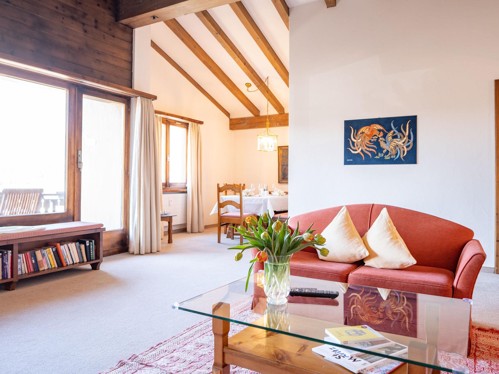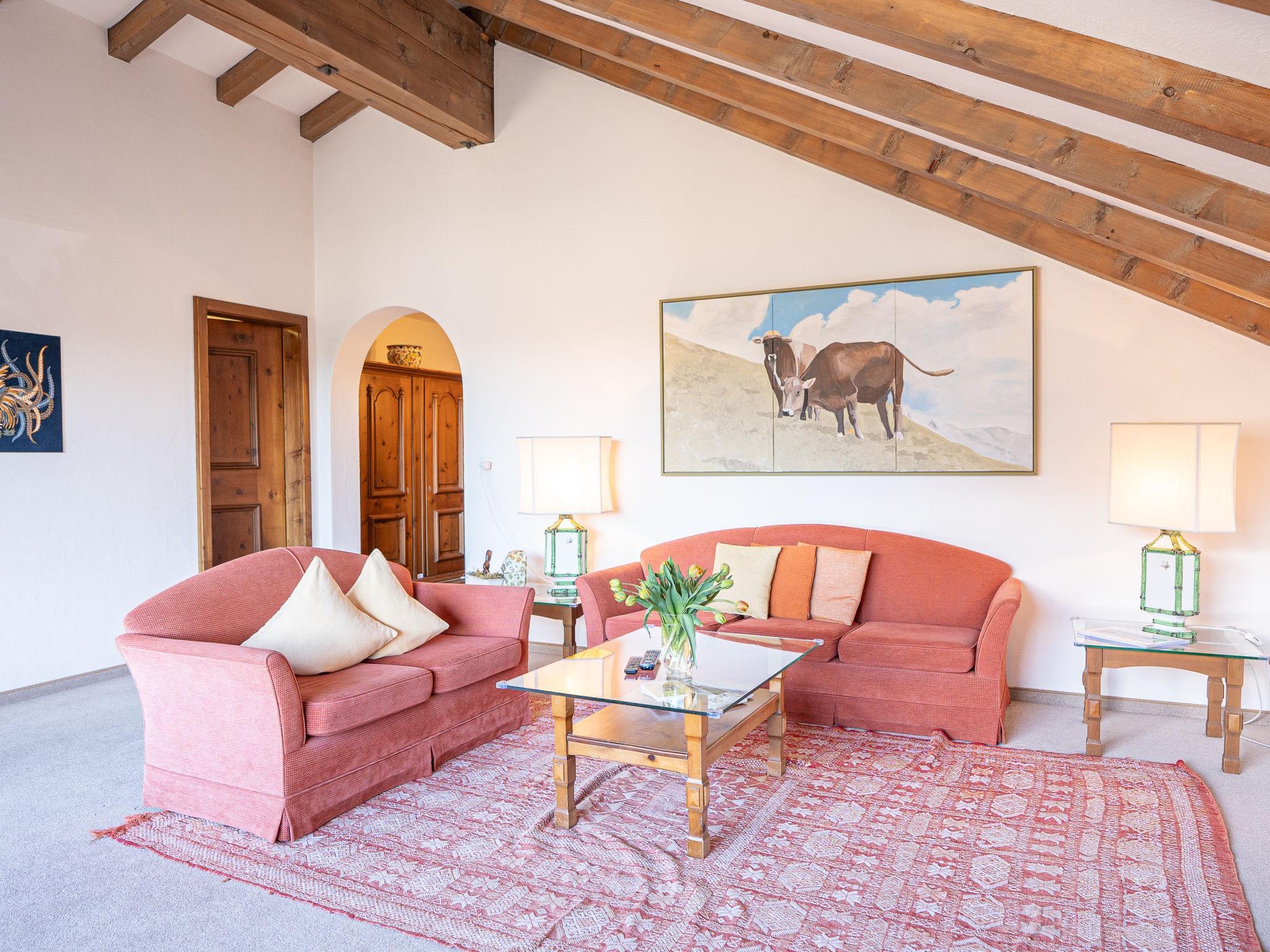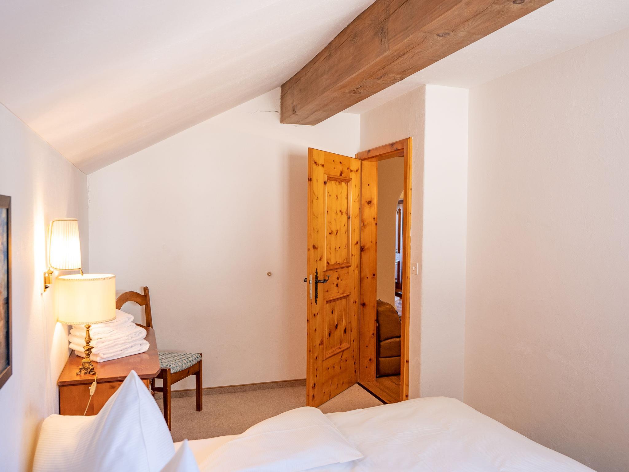 "Chesa La Sajetta 12", 4-Zimmer-Wohnung 100 m2, im Dachgeschoss. Wohn-/Esszimmer mit offenem Kamin (nur Deko), TV, Stereoanlage und DVD. Ausgang zum Balkon, Richtung Westen. 1 Zimmer mit 2 Betten (100 cm, Länge 195 cm). 1 Zimmer mit 1 Bett (90 cm, Länge 195 cm), Dusche/WC. 1 Zimmer mit 1 Doppelbett (2 x 110 cm, Länge 195 cm). Küche (Backofen, Geschirrspüler, 4 Glaskeramikplatten, Toaster, Wasserkocher, elektrische Kaffeemaschine, Kapseln für die Kaffeemaschine (Nespresso) extra, Fondue Set (Chinoise, Käse)) mit Durchreiche. Bad/Bidet/WC. Heizung. Kleiner Balkon. Schöne Sicht auf die Berge. Zur Verfügung: Bügeleisen, Haartrockner. Internet (Wireless LAN, gratis). Garage Nr. W 12, Höhe 210 cm, Breite 225 cm. Bitte beachten: kein Fahrstuhl. Der Kamin darf nicht benutzt werden.