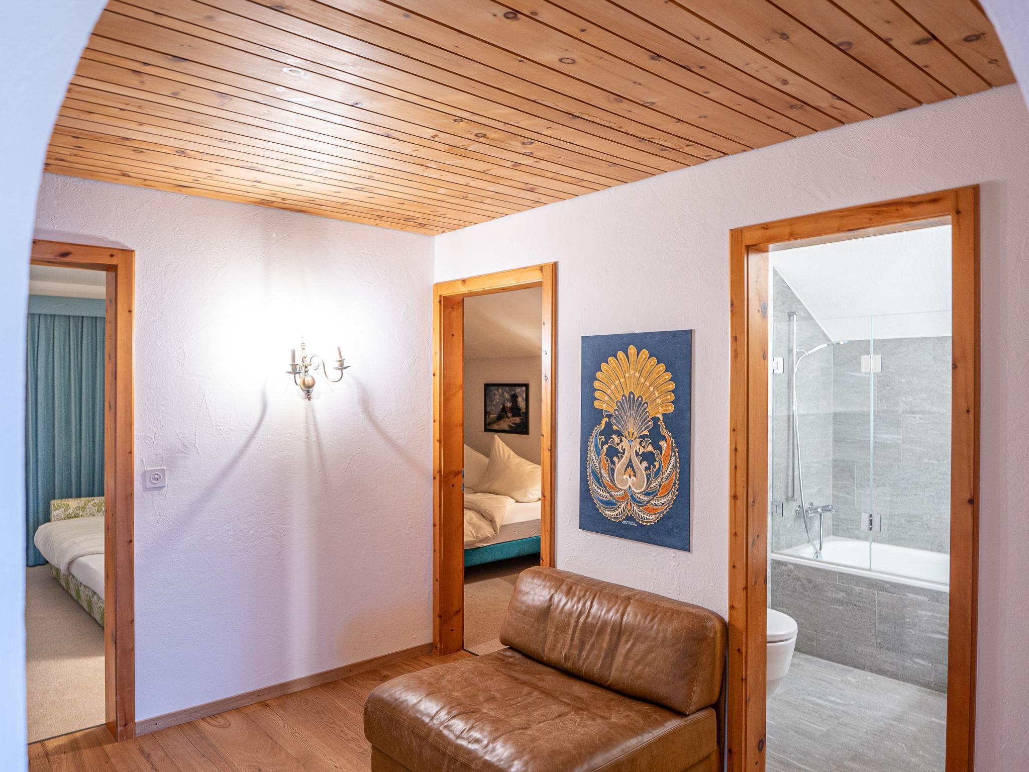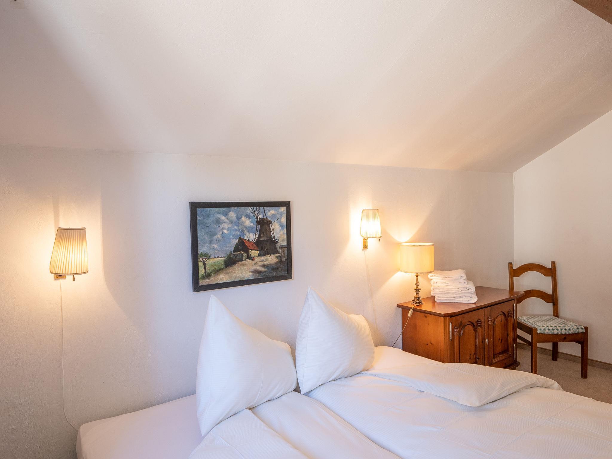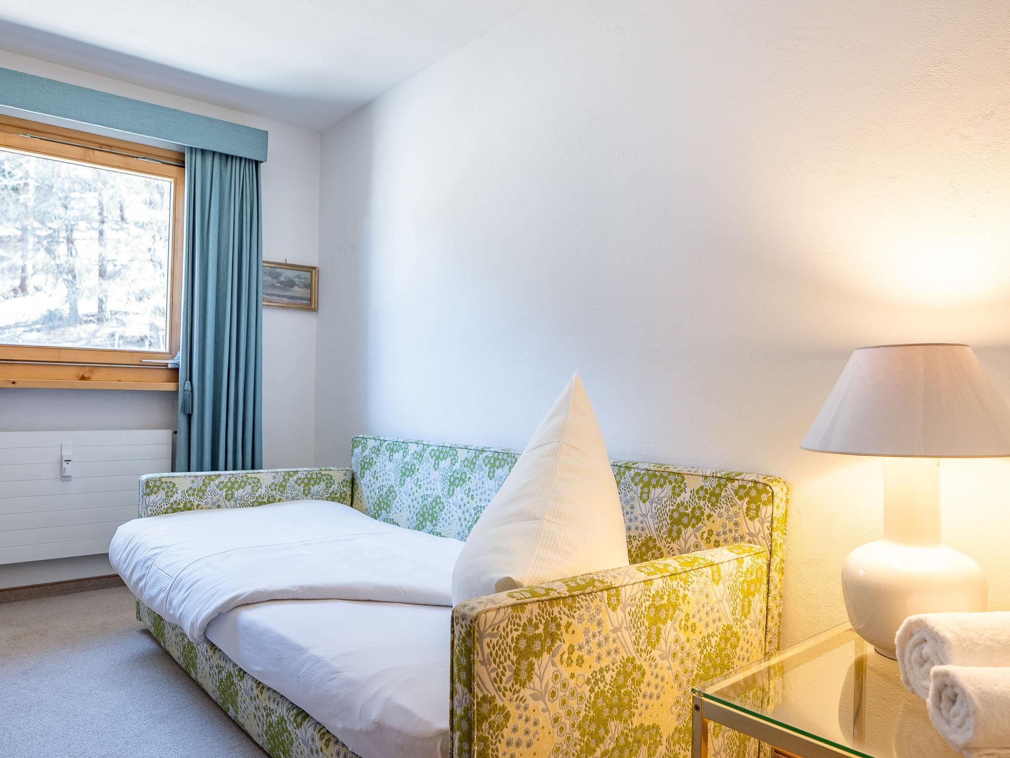 "Chesa La Sajetta 12", 4-Zimmer-Wohnung 100 m2, im Dachgeschoss. Wohn-/Esszimmer mit offenem Kamin (nur Deko), TV, Stereoanlage und DVD. Ausgang zum Balkon, Richtung Westen. 1 Zimmer mit 2 Betten (100 cm, Länge 195 cm). 1 Zimmer mit 1 Bett (90 cm, Länge 195 cm), Dusche/WC. 1 Zimmer mit 1 Doppelbett (2 x 110 cm, Länge 195 cm). Küche (Backofen, Geschirrspüler, 4 Glaskeramikplatten, Toaster, Wasserkocher, elektrische Kaffeemaschine, Kapseln für die Kaffeemaschine (Nespresso) extra, Fondue Set (Chinoise, Käse)) mit Durchreiche. Bad/Bidet/WC. Heizung. Kleiner Balkon. Schöne Sicht auf die Berge. Zur Verfügung: Bügeleisen, Haartrockner. Internet (Wireless LAN, gratis). Garage Nr. W 12, Höhe 210 cm, Breite 225 cm. Bitte beachten: kein Fahrstuhl. Der Kamin darf nicht benutzt werden.