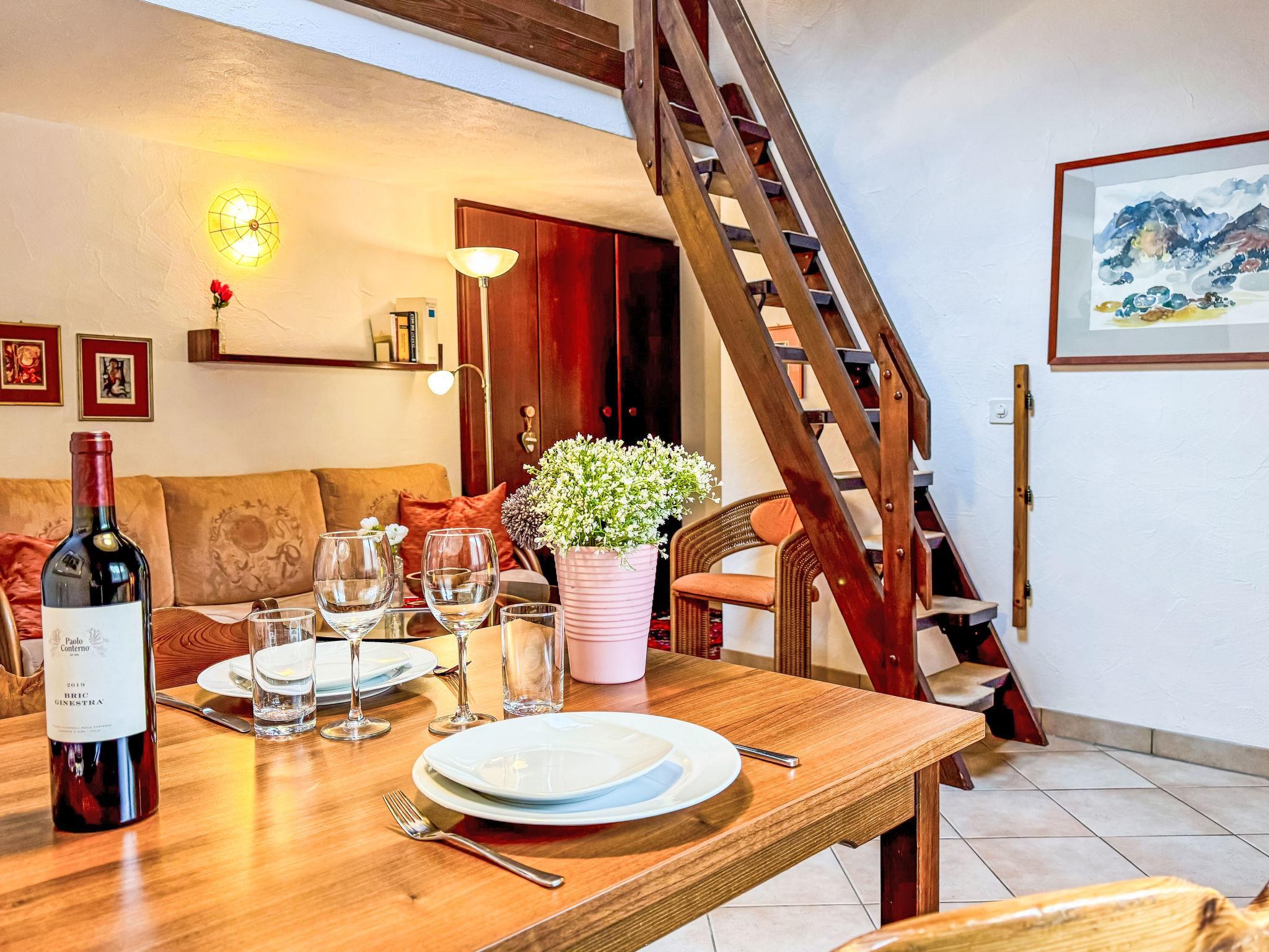 "Residenza Chesa Margun 15-4", 2-Zimmer-Wohnung 47 m2 auf 2 Stockwerken, im Dachgeschoss, Nordlage. Gemütlich eingerichtet: Wohn-/Esszimmer mit Kabel-TV (Flachbildschirm). 1 Doppelzimmer mit 1 Doppelbett. Kleine Küche (4 Kochplatten, Backofen, Geschirrspüler, Toaster, Wasserkocher, elektrische Kaffeemaschine, Kapseln für die Kaffeemaschine (Nespresso) extra). Bad/WC. Obergeschoss: (steile Treppe) abgeschrägte, offene Galerie, Deckenhöhe 150 - 170 cm mit 2 Betten und Kabel-TV (Flachbildschirm). Seitliche Sicht auf die Berge und die Landschaft. Zur Verfügung: Internet (WLAN, gratis). Garage, Höhe 203 cm, Breite 290 cm. E-Ladestation. Bitte beachten: für Kleinkinder nicht geeignet. Nichtraucher-Unterkunft.