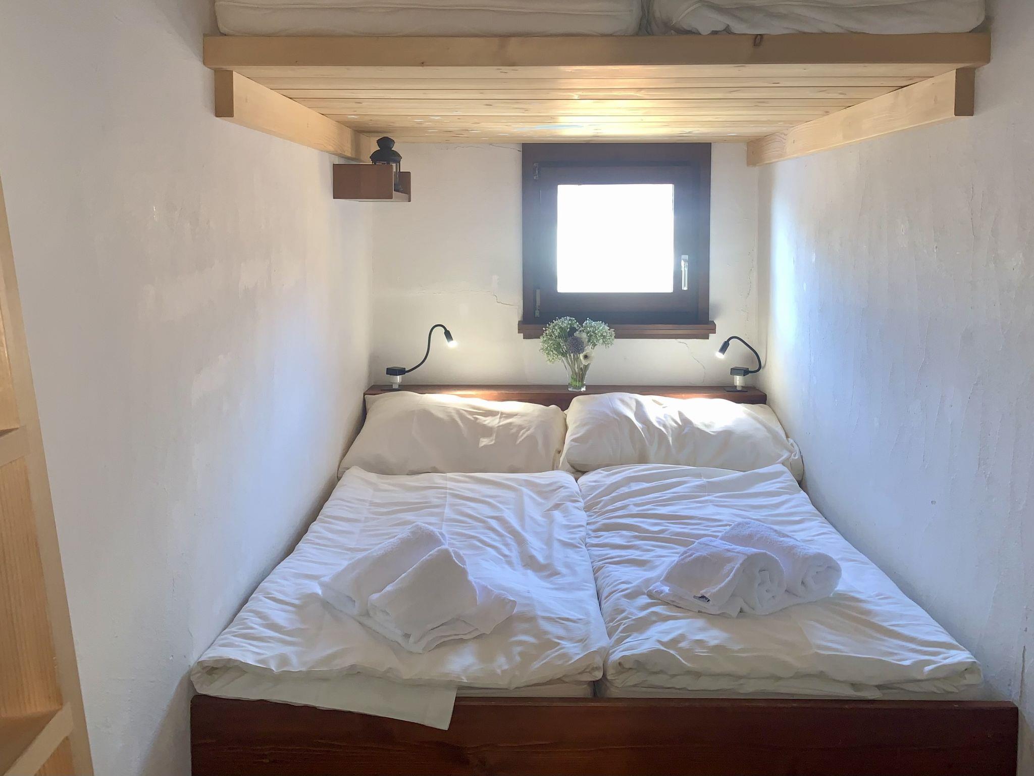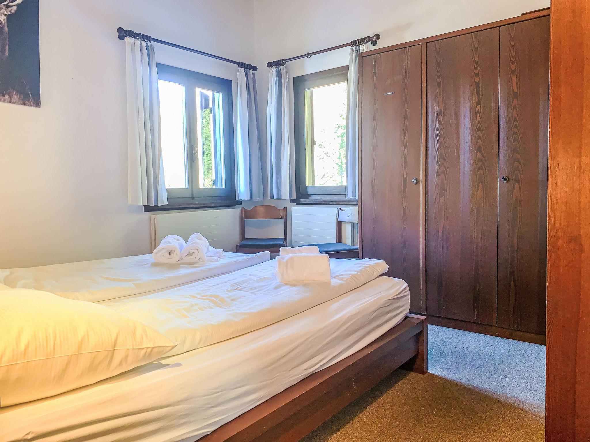 "Residenza Chesa Margun 59-6", 2-Zimmer-Wohnung 49 m2 auf 2 Stockwerken, im Dachgeschoss, Nordlage. Zweckmässig eingerichtet: Wohn-/Esszimmer mit offenem Kamin, Esstisch und Sat-TV. Offene Galerie, Deckenhöhe 150 - 170 cm mit Schiebetür mit 1 franz. Bett. 1 Zimmer mit 2 Betten (80 cm, Länge 180 cm). Offene Küche (Backofen, Geschirrspüler, elektrische Kaffeemaschine, Kapseln für die Kaffeemaschine (Nespresso) extra) mit Esstisch. Bad/WC. Sicht auf den Wald. Bitte beachten: Nichtraucher-Unterkunft. Anstelle eines abgeschlossenen Schlafzimmers befinden sich manche Schlafplätze in einem offenen Bereich (Galerie, Nische etc.).