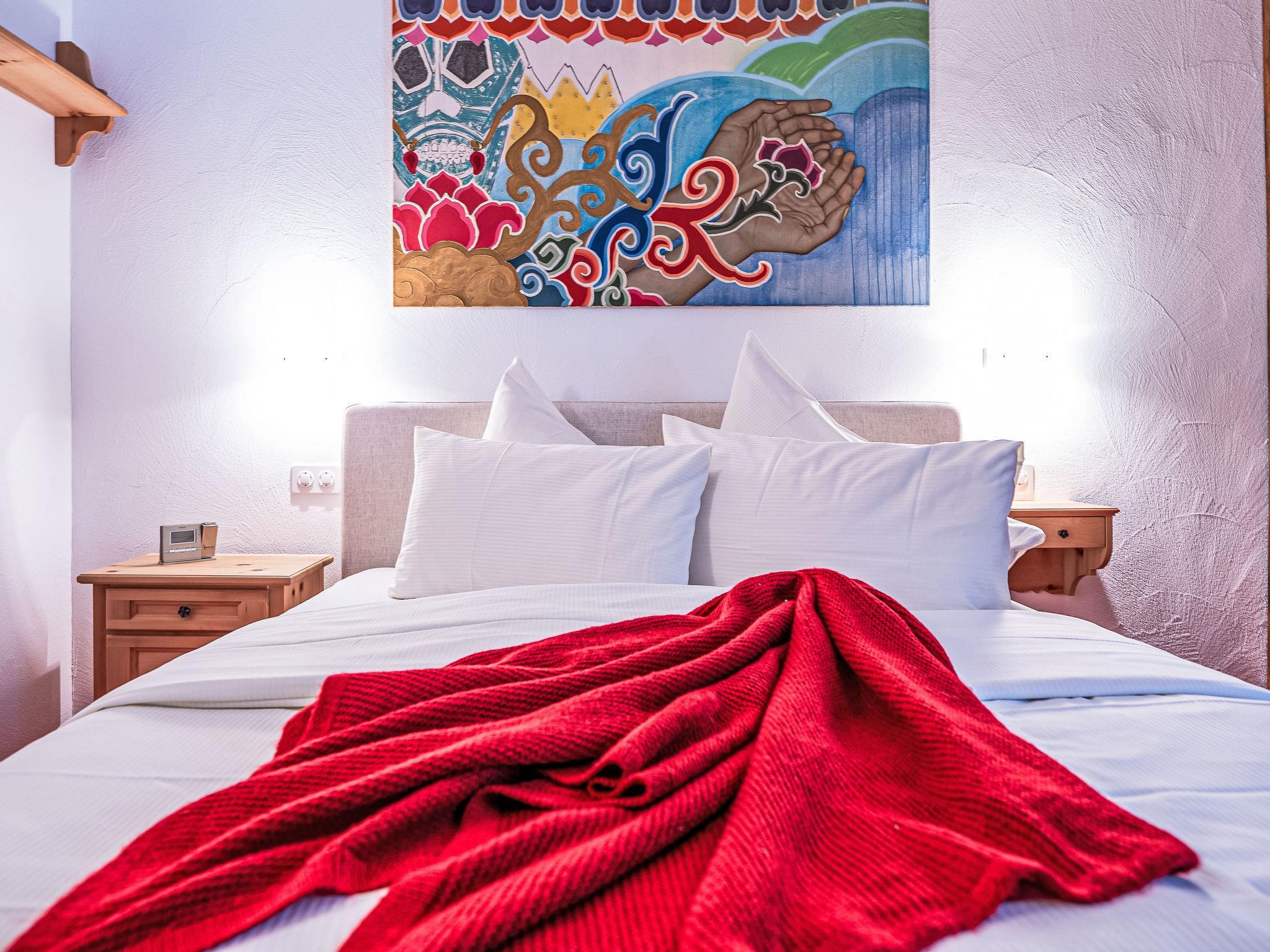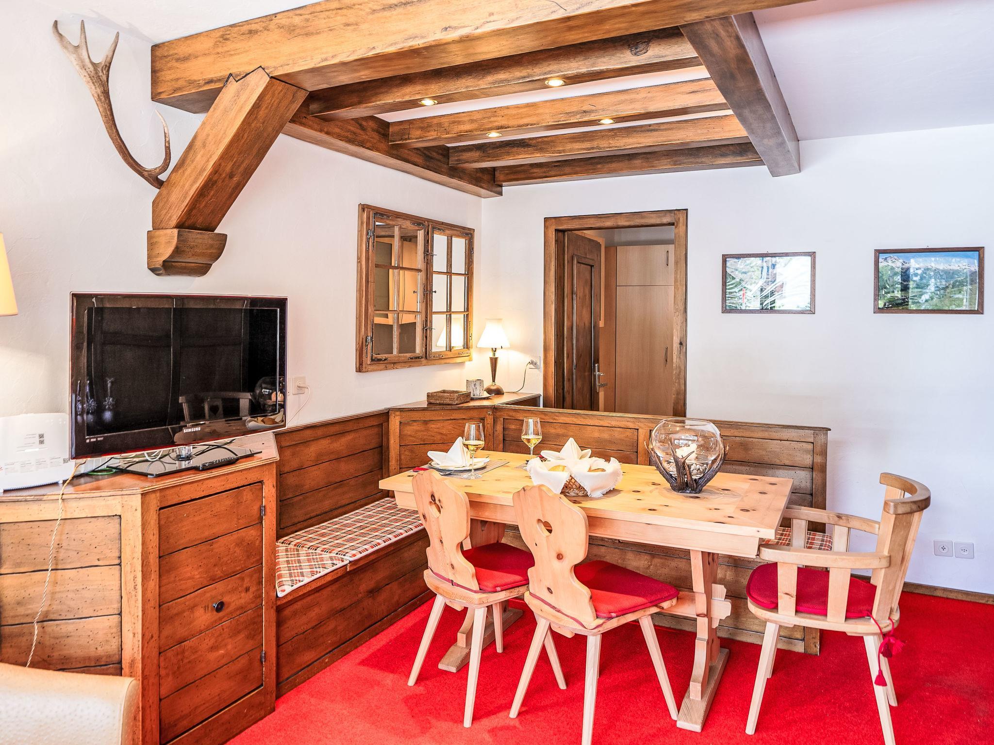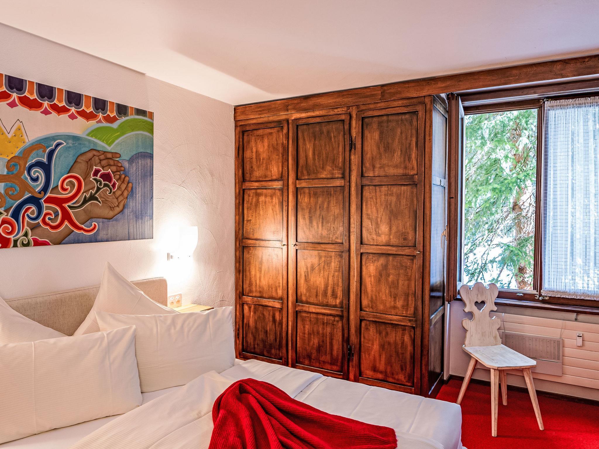 "Chesa Murtel", 2-Zimmer-Wohnung 54 m2, im erhöhten Erdgeschoss. Objekt geeignet für 2 Erwachsene. Geräumig, rustikal und gemütlich eingerichtet: Wohn-/Esszimmer mit Esstisch und TV (Flachbildschirm). Ausgang zum Balkon. 1 grosses Doppelzimmer mit 1 Doppelbett (1 x 160 cm, Länge 200 cm). Küche (Backofen, Geschirrspüler, 4 Glaskeramikplatten, Toaster, Wasserkocher, elektrische Kaffeemaschine, Kapseln für die Kaffeemaschine (Nespresso) extra, Racletteofen). Bad/WC. Heizung. Teppichboden. Balkonmöbel. Sehr schöne Sicht auf den See, die Berge und die Landschaft. Zur Verfügung: Haartrockner. Internet (Wireless LAN, gratis). Garage Nr. 13 (1 Auto), Höhe 200 cm, Breite 220 cm. Bitte beachten: Nichtraucher-Unterkunft, Nichtraucher-Haus. Maximal 1 Haustier/Hund erlaubt. Kein Fahrstuhl.