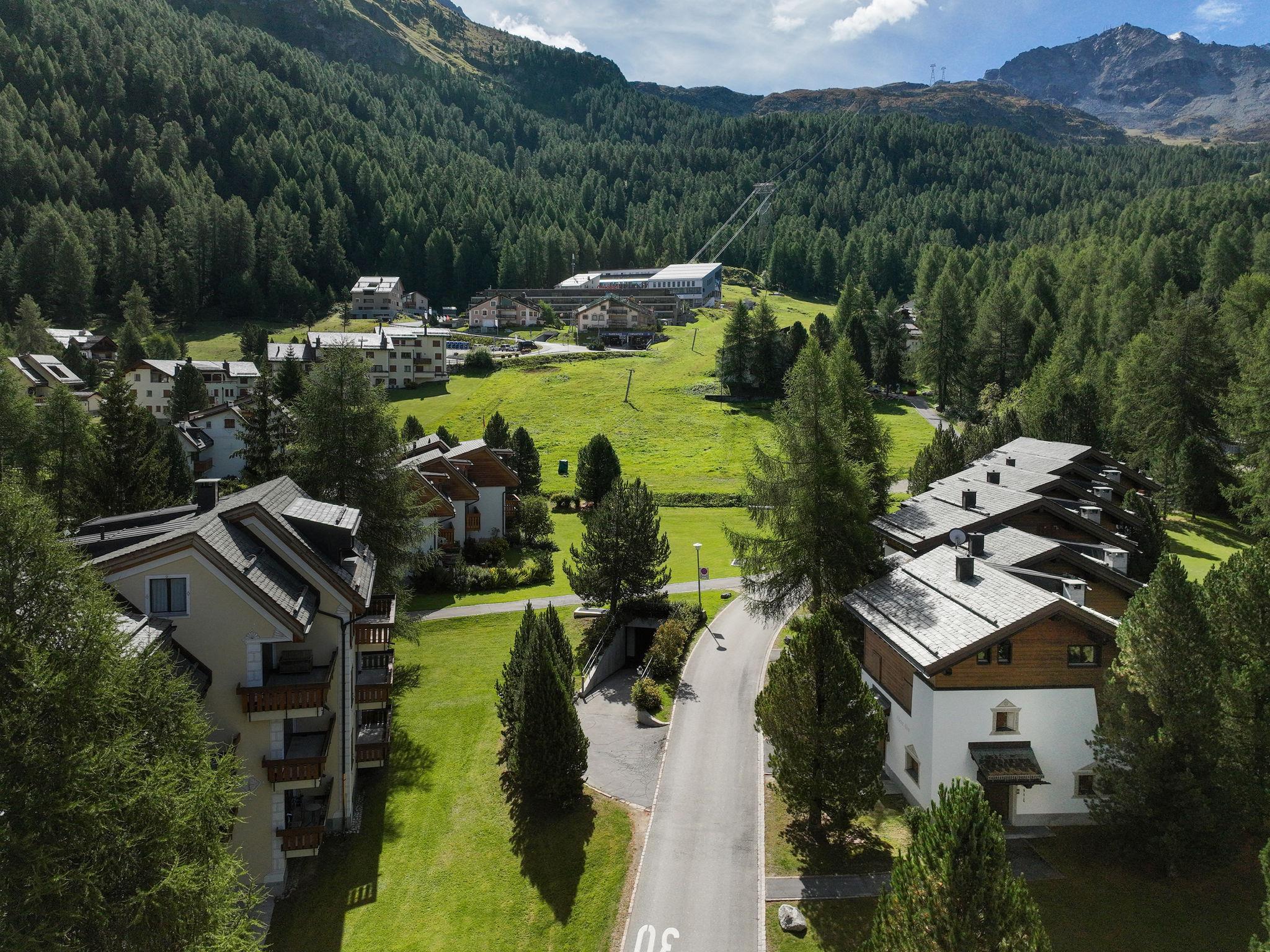 Surlej: Mehrfamilienhaus "Chesa Murtel", auf 3 Stockwerken. Im Ortszentrum von Surlej, in einem Wohnquartier, 400 m vom Waldrand, 800 m vom See. Im Hause: Skiraum, Waschmaschine, Wäschetrockner (zur Mitbenutzung, extra), Trockenraum. Gemeinschaftsgarage Nr. 13 beim Haus in 50 m. Einkaufsgeschäft 1.3 km, Lebensmittelgeschäft 1.3 km, Restaurant 300 m, Café 240 m, Fahrradverleih 70 m, Bushaltestelle "Surlej Parkplatz" 200 m, Hallenbad 6 km. Golfplatz (18 Loch) 13 km, Surfschule 1.6 km, Tennis 1.6 km, Tennishalle 6 km, Minigolf 6 km, Reitstall 3.6 km, Sportzentrum 1.6 km, Wanderwege ab Haus 100 m, Radweg 400 m, Luftseilbahn 500 m, Skilift 50 m, Skiverleih 70 m, Skibushaltestelle 60 m, Kinderskischule, Schlittelbahn 12 km, Langlaufloipe 200 m, Eisfeld 1.6 km. Bekannte Skigebiete sind gut erreichbar: Corvatsch - Furtschellas 500 m, Corviglia St. Moritz 6 km. Bekannte Seen in der Umgebung sind gut erreichbar: Silvaplana See 600 m, Champferer See 600 m, St. Moritz See 6 km. Bitte beachten: kein Fahrstuhl vorhanden. Für Kleinkinder nicht geeignet. Bei guter Schneelage Zufahrt mit den Skiern bis zum Haus.