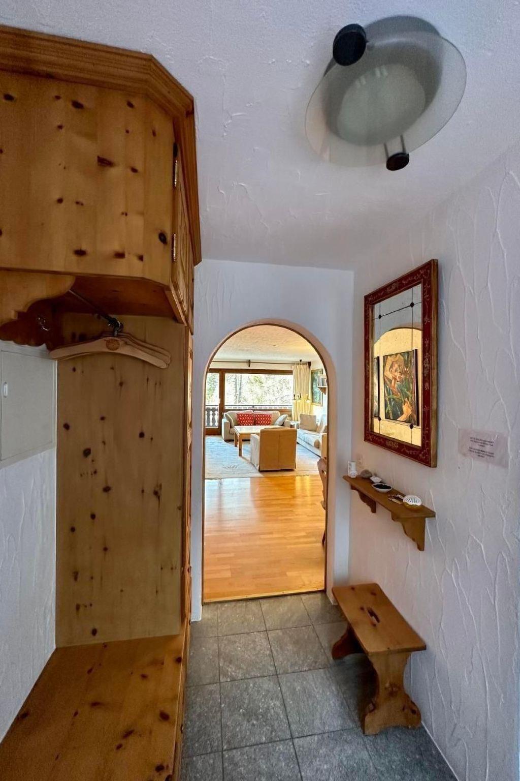 Helle und charmante 3-Zimmer-Wohnung im 4. Stock (75m2) mit Balkon und schöner Aussicht auf die Seen und Julier. In der Nähe der Bushaltestelle, Skipisten und Wanderwege. Großes Wohnzimmer mit Zirben-Essbereich, neue Küche, 1 Doppelzimmer, 1 Dreibettzimmer mit 1 Etagenbett und 1 Einzelbett, Bad mit Badewanne, Bidet und WC. Waschmaschine, großes Hallenbad und Sauna im Haus. Haustiere sind nicht erlaubt. Nicht-Raucher-Wohnung.