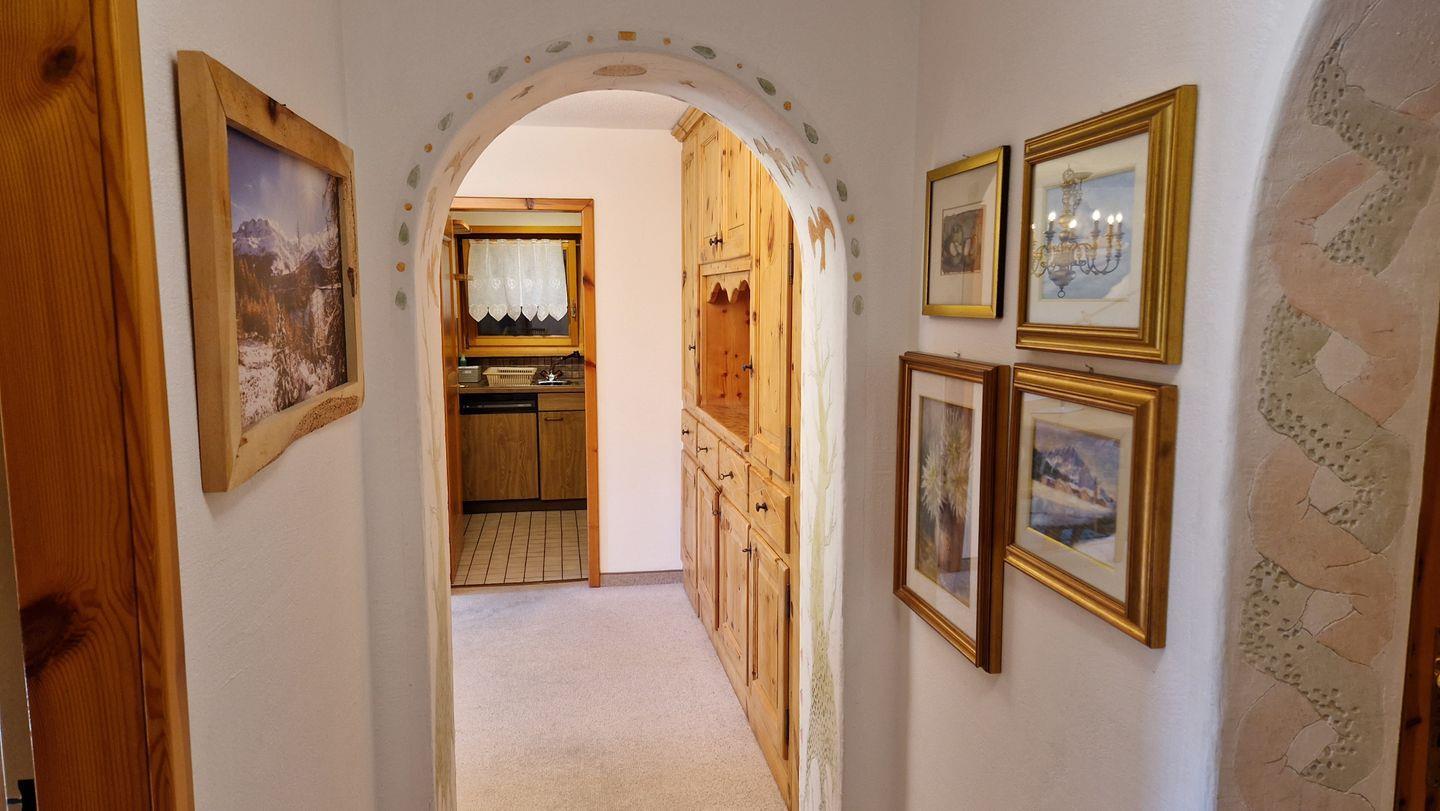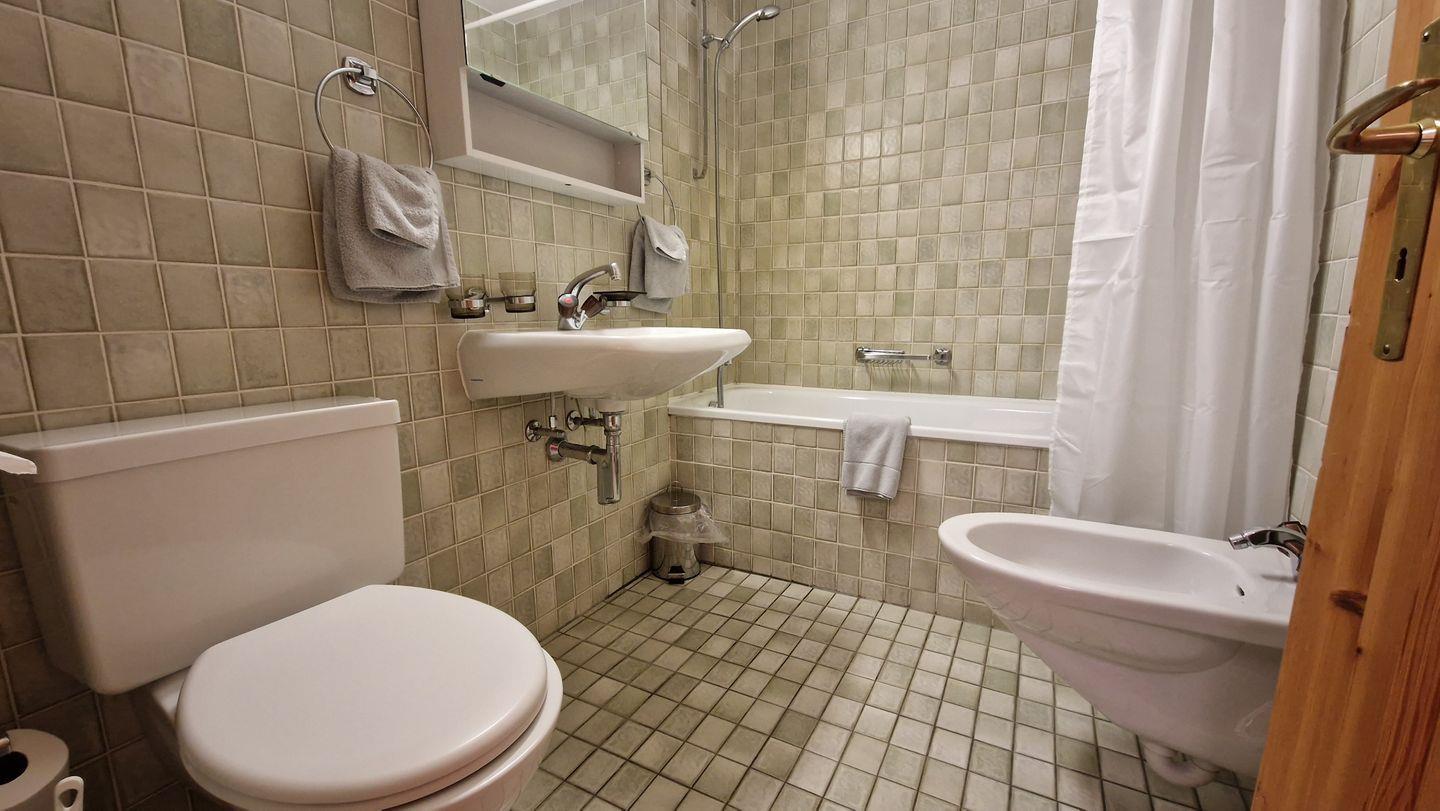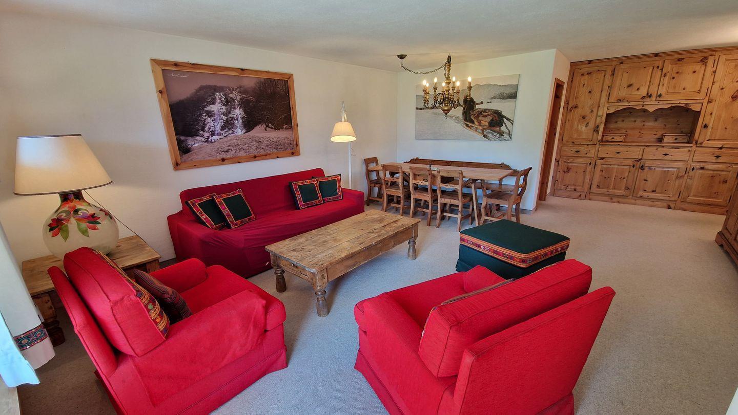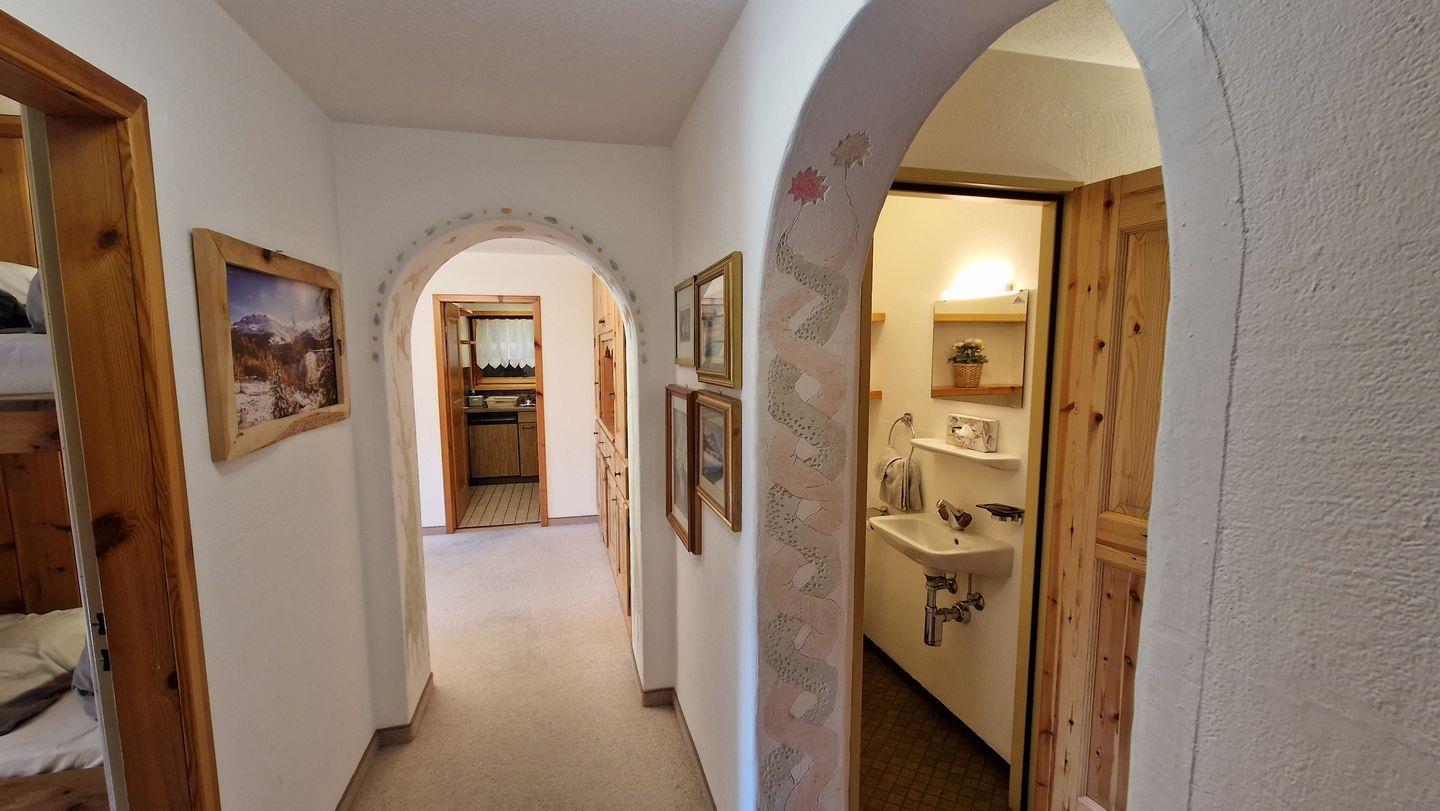 3 1/2-Zimmerwohnung im Haus Chamuotsch, Parterre, 95 m2. Die nach Süden ausgerichtete Terrasse mit direktem Zugang zum Spielplatz und Grillstelle offenbart eine wunderbare Berg- und Seesicht. Die Wohnung bietet ein geräumiges, offenes Wohn-/Esszimmer mit Fernseher, ein Arvenholz-Schlafzimmer mit Doppelbett, ein 4er Schlafzimmer mit zwei Kajüten-Betten, ein Bad/WC und ein separates WC; eine Küche mit Backkofen, Geschirrspüler, Nespresso-Kaffeemaschine und Wasserkocher.