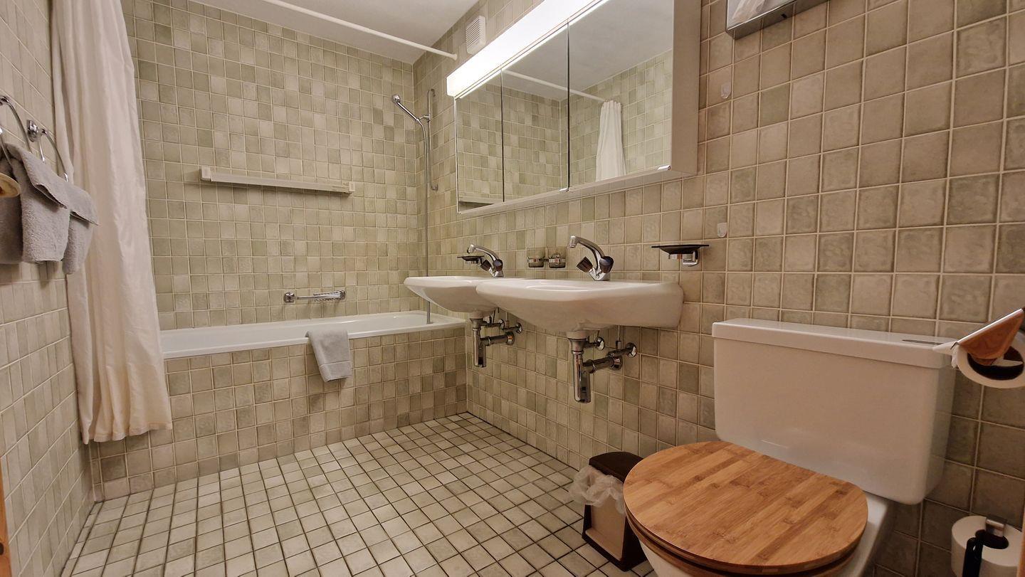 3 1/2-Zimmerwohnung, im Haus Chamuotsch, 1. Stock, 92 m2. Der sonnige Südbalkon bietet eine prächtige Berg- und Seesicht. Die Wohnung verfügt über ein Wohn-/Esszimmer mit zwei Schrankbetten (90x200), Cheminée und Fernseher, ein Schlafzimmer mit Doppelbett, ein 3er-Schlafzimmer mit Kajüten-Bett und einem Einzelbett, ein Bad/WC, eine Küche mit Backofen, Geschirrspüler, Nespresso-Kaffeemaschine und Wasserkocher. Nichtraucherwohnung.
