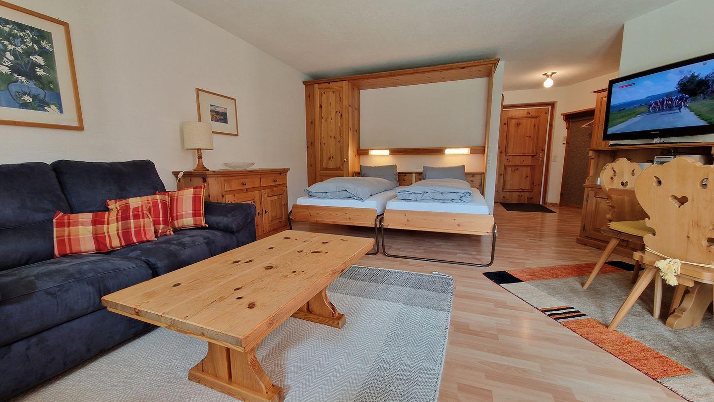2 1/2-Zimmerwohnung; grosses Wohnzimmer; gedeckte Terrasse mit schöner Bergsicht
