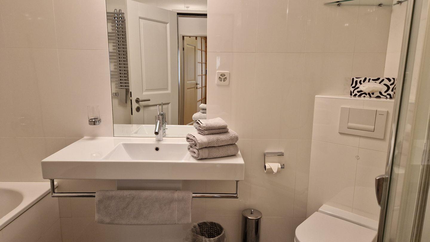 2-Zimmerwohnung, gemütliches Wohnzimmer, gedeckte Terrasse, Bergsicht