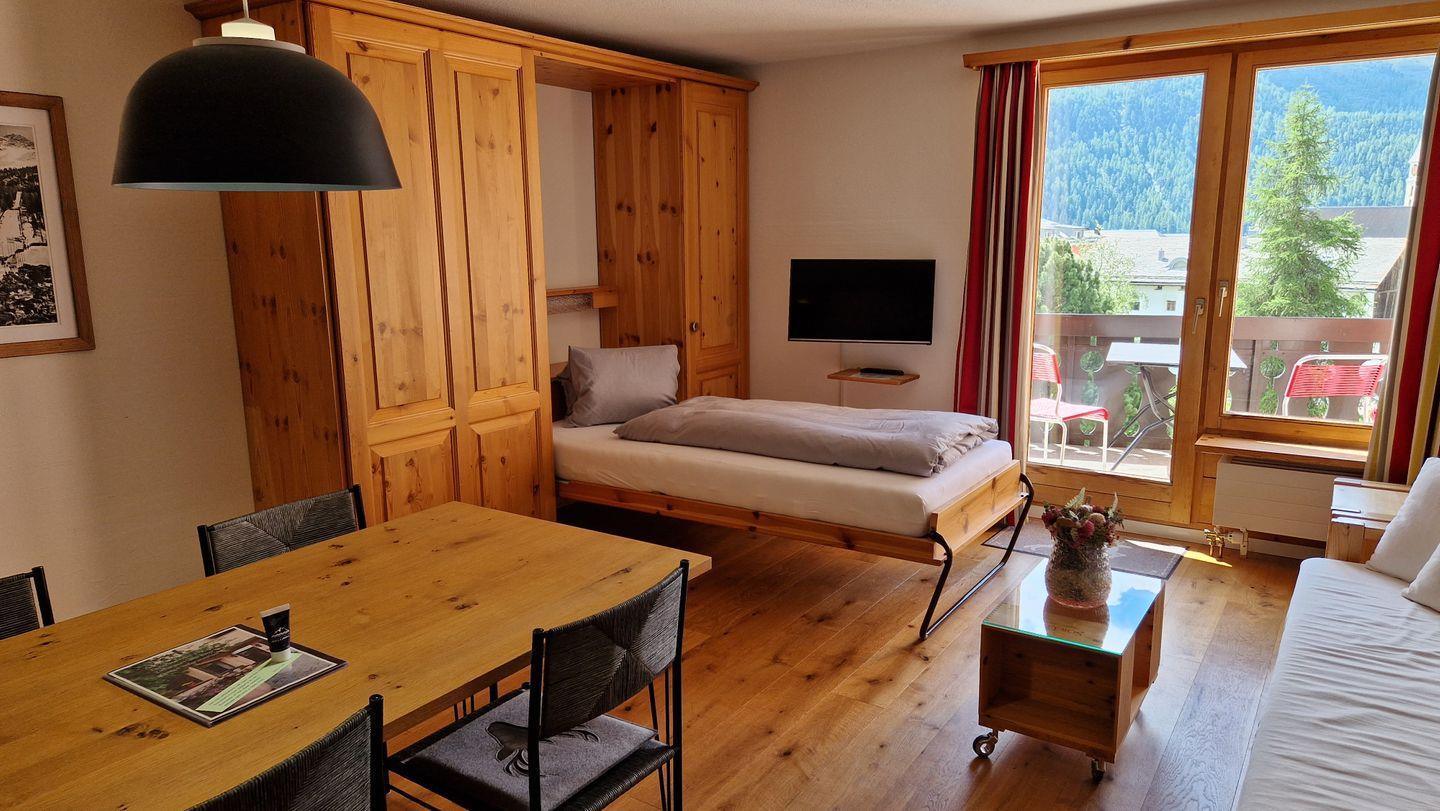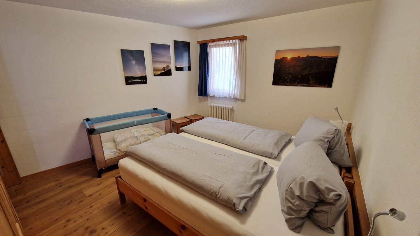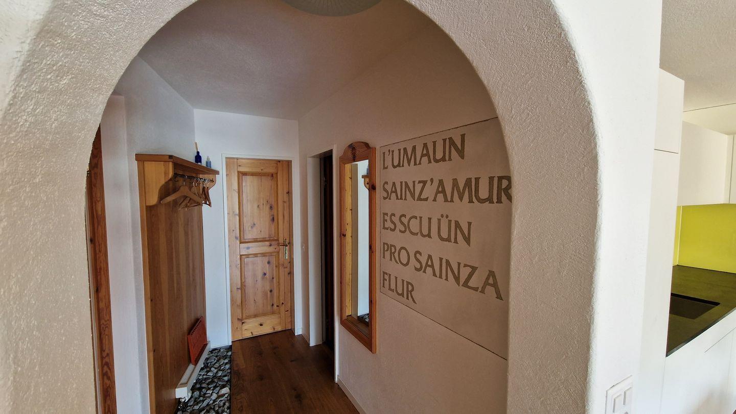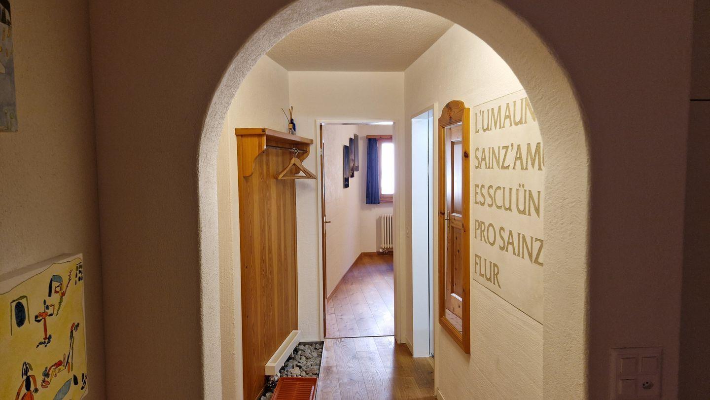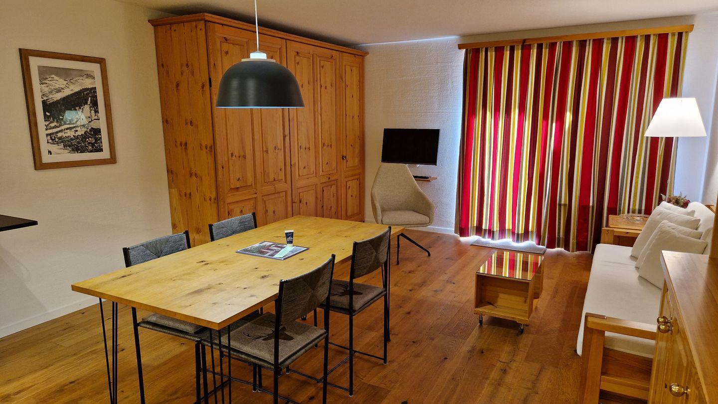 2 1/2-Zimmerwohnung im Haus Leivra, im 3. Stock, 70 m2. Die helle Wohnung verfügt über ein gemütliches Wohn-/Esszimmer mit zwei Schrankbetten (90x200) und Fernseher, ein Schlafzimmer mit Doppelbett, ein modernes Bad mit Dusche/WC und eine offene Küche mit Backofen, Geschirrspüler, Nesspresso-Kapselmaschine, Toaster und Wasserkocher. Der sonnige Balkon ist nach Süden ausgerichtet und bietet eine prächtige Aussicht in die Berge und auf den Lej Suot.