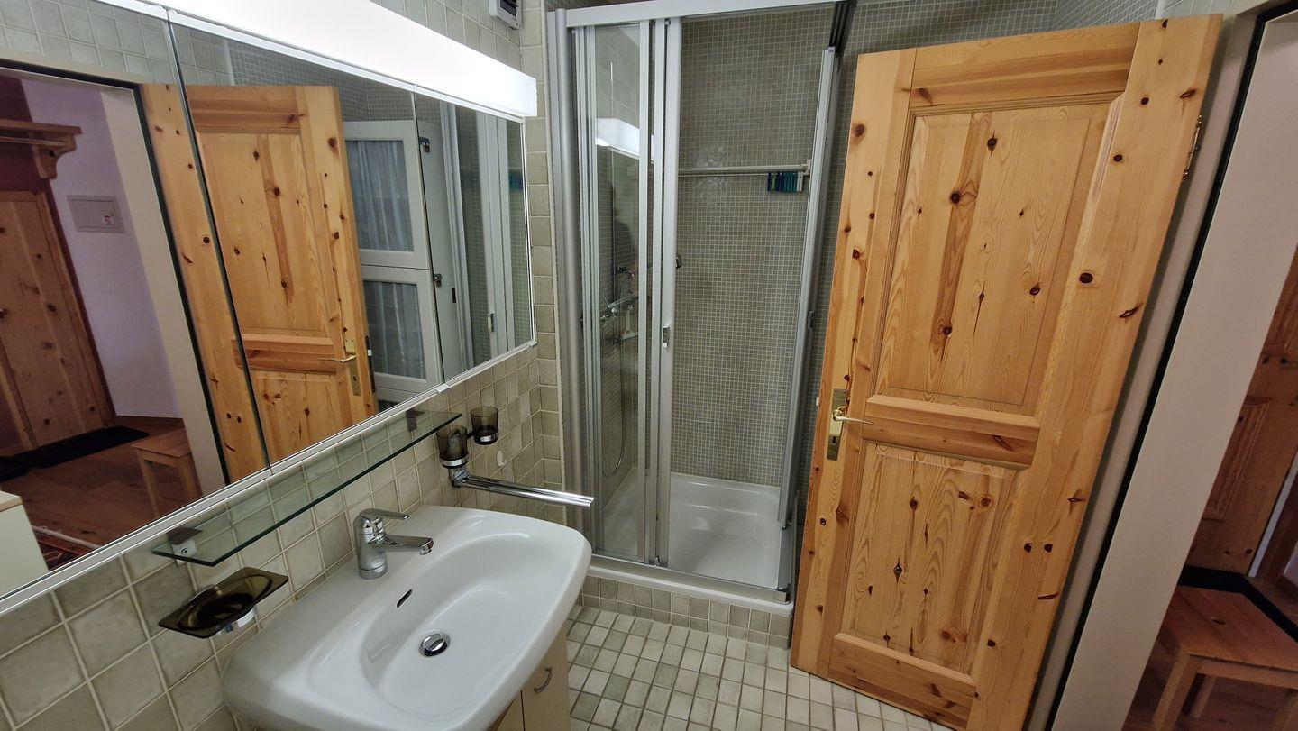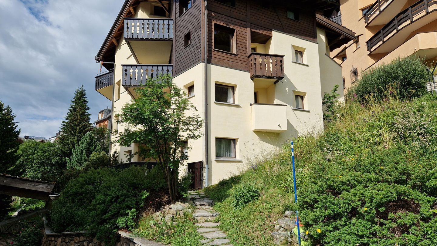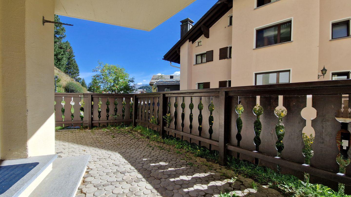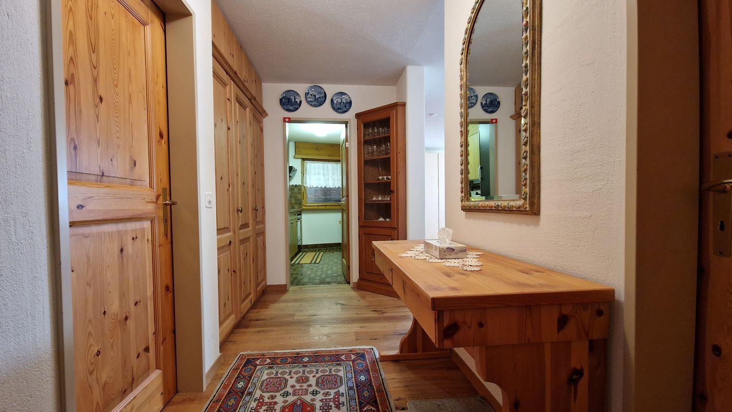 2 1/2-Zimmerwohnung im Haus la Vuolp, Parterre, 80 m2. Zur Wohnung gehören ein grosszügiges Wohn-/Esszimmer mit zwei Schrankbetten (90x200) und Fernseher, ein Schlafzimmer mit Doppelbett und Einzel-Hochbett, ein Bad mit Dusche/WC und eine Küche mit Backofen, Geschirrspüler, Nesspresso-Kapselmaschine und Wasserkocher. Die gedeckte Terrasse ist nach Süd-Osten ausgerichtet und verfügt über einen eigenen Zugang direkt vom Aussenparkplatz.