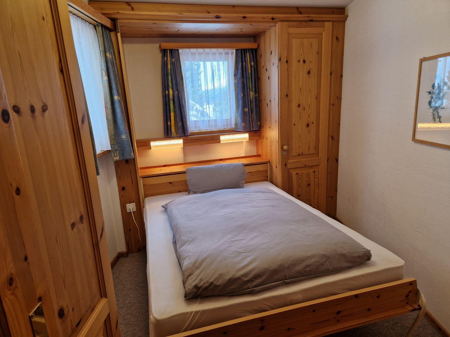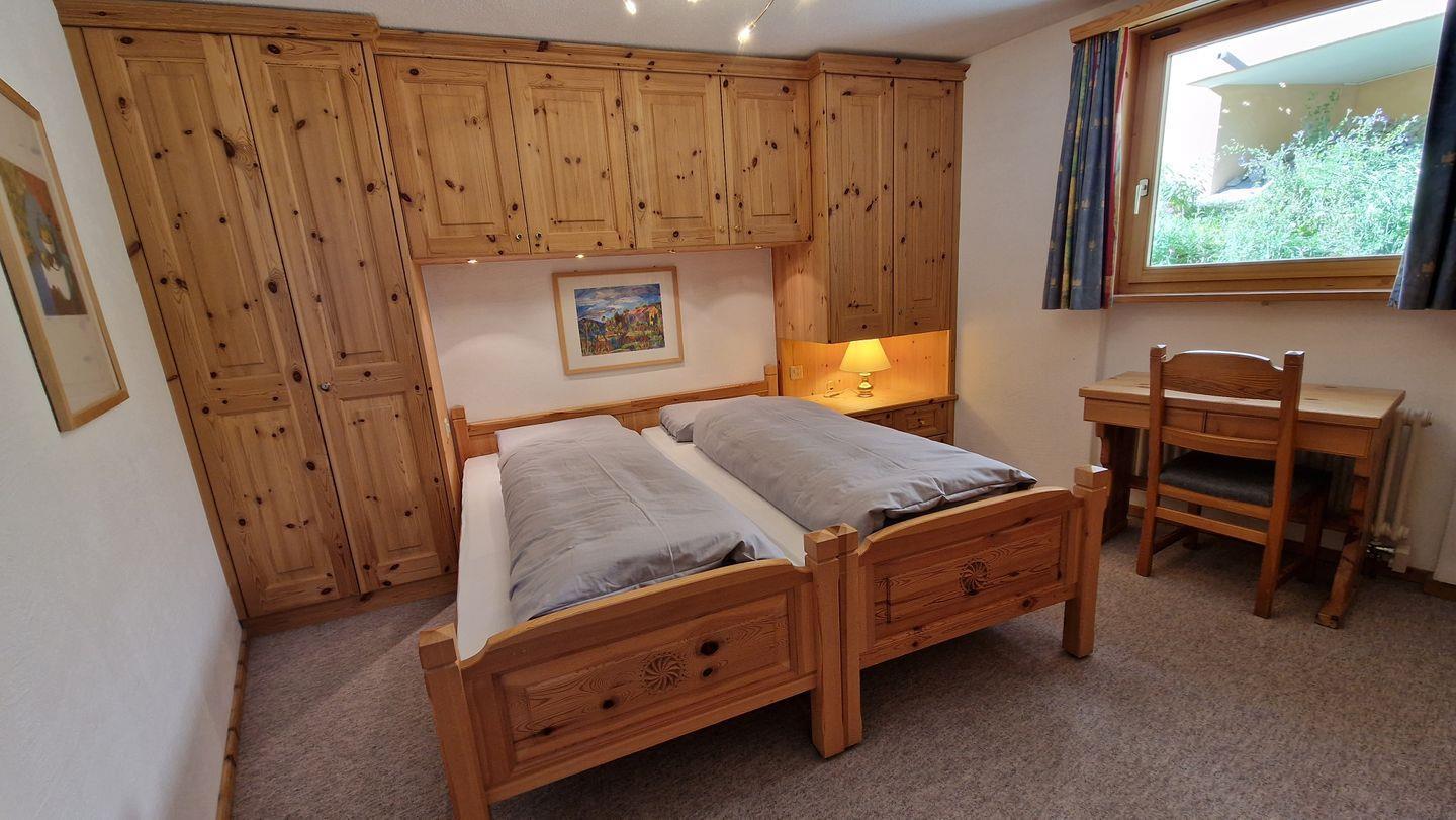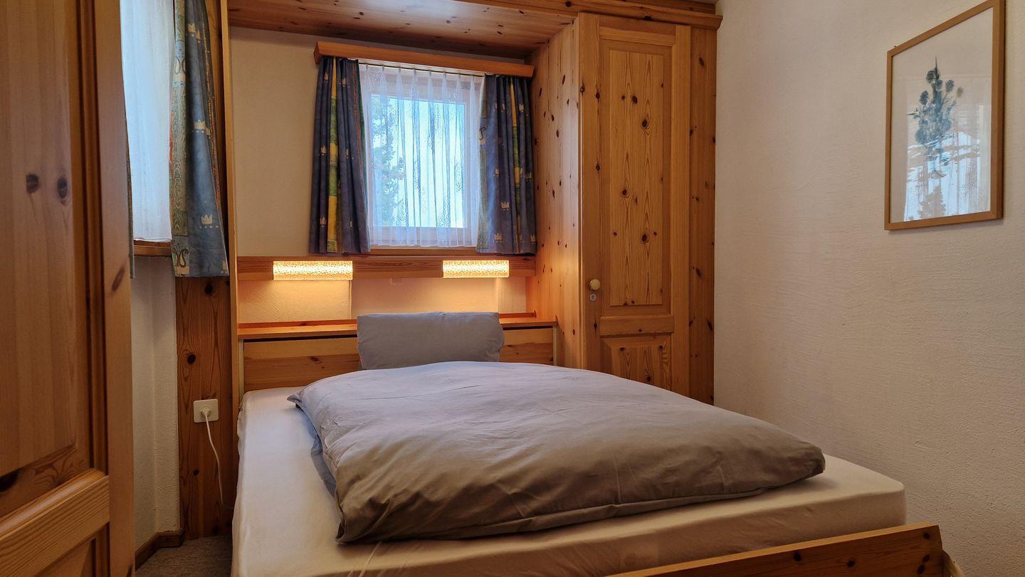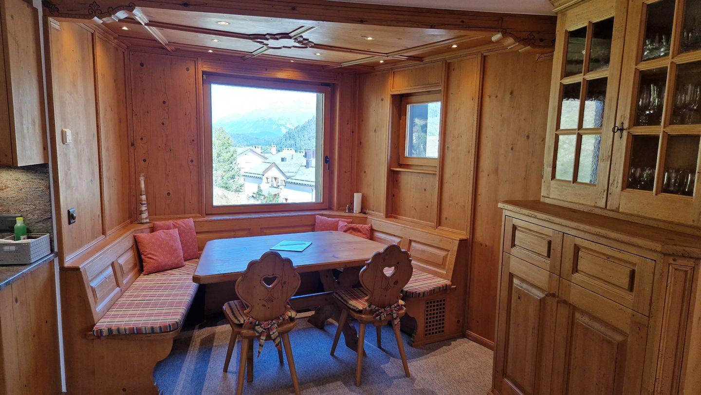 3-Zimmerwohnung im Haus la Vuolp, 2. Stock, 90 m2. Die mit Arvenmöbel ausgestattete Wohnung verfügt über ein helles Wohn-/Esszimmer mit offener Küche und Fernseher, ein Schlafzimmer mit Doppelbett und ein kleines Schlafzimmer mit Schrankbett (140x200), ein Bad/WC und ein separates WC sowie eine Küche, welche mit Backofen, Geschirrspüler, Nesspresso-Kapselmaschine und Wasserkocher ausgerüstet ist. Der gedeckte Balkon bietet einen Ausblick auf das Corvatschgebiet. Nichtraucherwohnung.