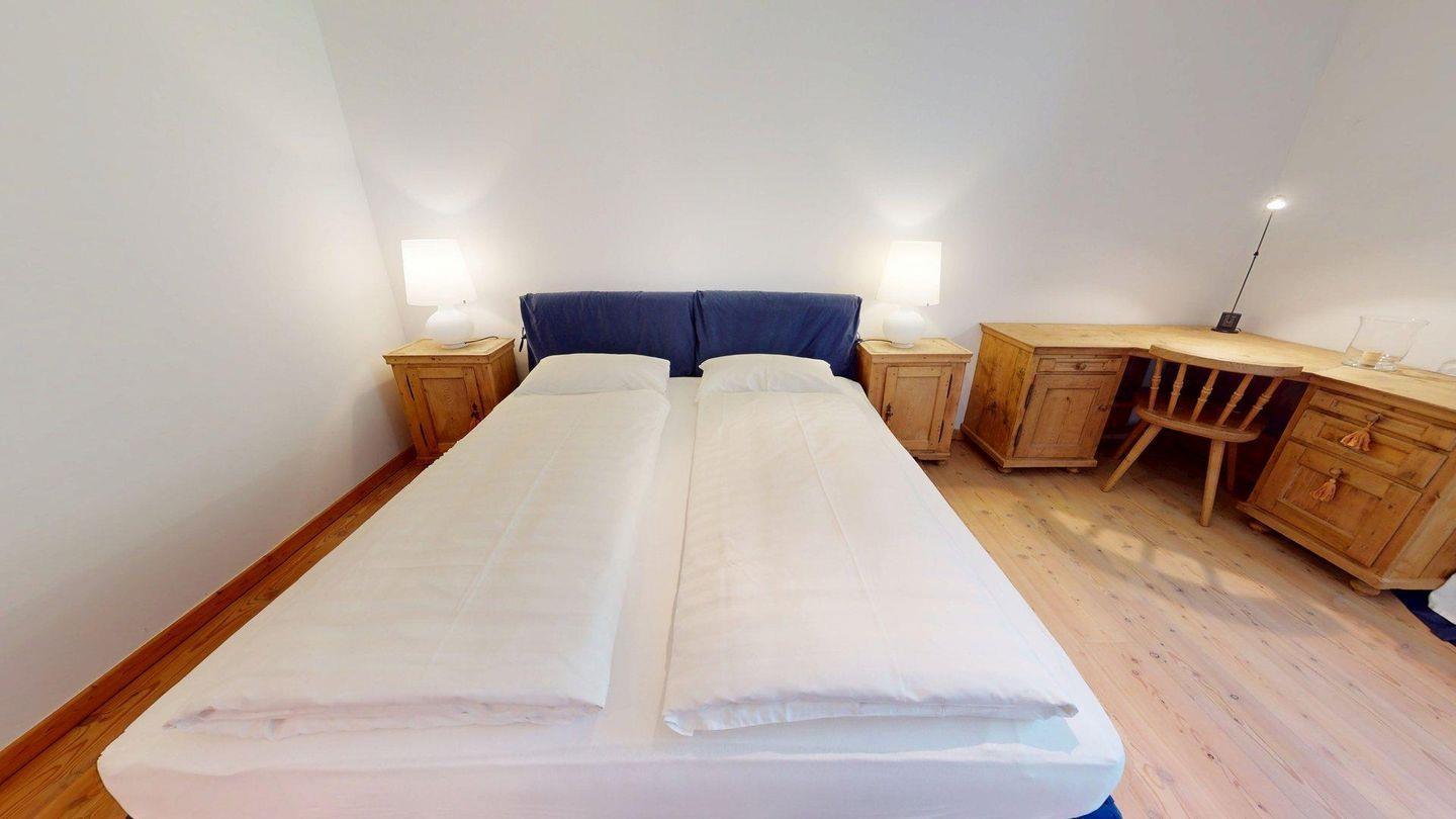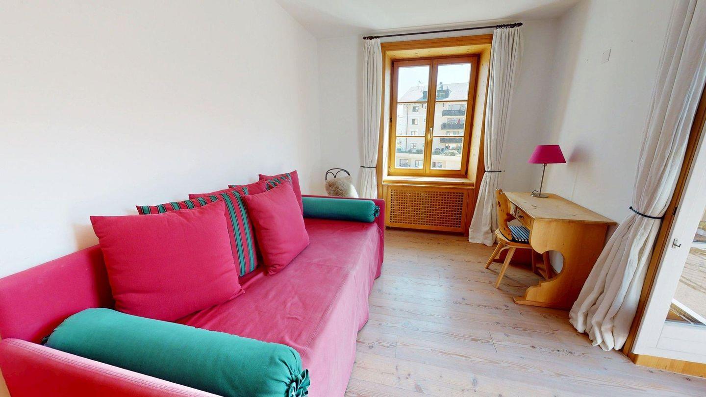 Die 4.5 - Zimmer Ferienwohnung "Residenza Engiadina" ist stilvoll und hochwertig mit einheimischem Arvenholz eingerichtet. Grosszügiges Wohn- /Esszimmer mit zwei sonnigen Balkonen, welche eine malerische Aussicht auf den Silvaplanersee und die umliegenden Berge bieten. Moderne, geschlossene Küche. Das Masterschlafzimmer ist mit einem Doppelbett ausgestattet und verfügt über ein ensuite Badezimmer mit Dusche/WC. Zusätzlich gibt es ein zweites Badezimmer mit Dusche/WC sowie ein separates Gäste-WC. Ein Schlafzimmer verfügt über ein Stockbett, das andere ist mit einem grosszügigen Bettsofa ausgestattet. Waschmaschine und Tumbler stehen zur privaten Nutzung bereit. 1 Garagenparkplatz.