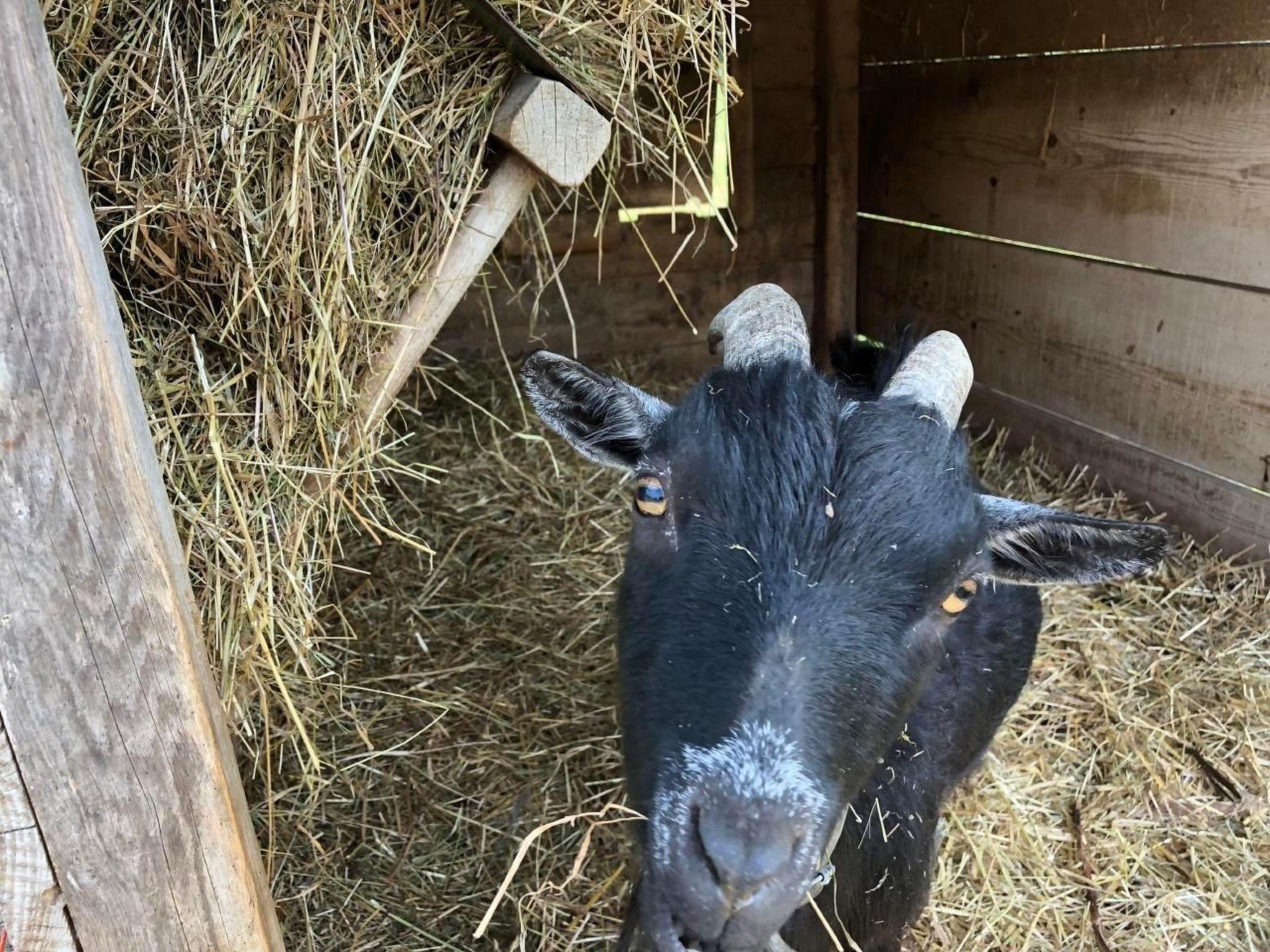 Kühe, Kälber, Katzen, Ziegen, Gänse, Hühner, Kaninchen, Bienen und Meerschweine.