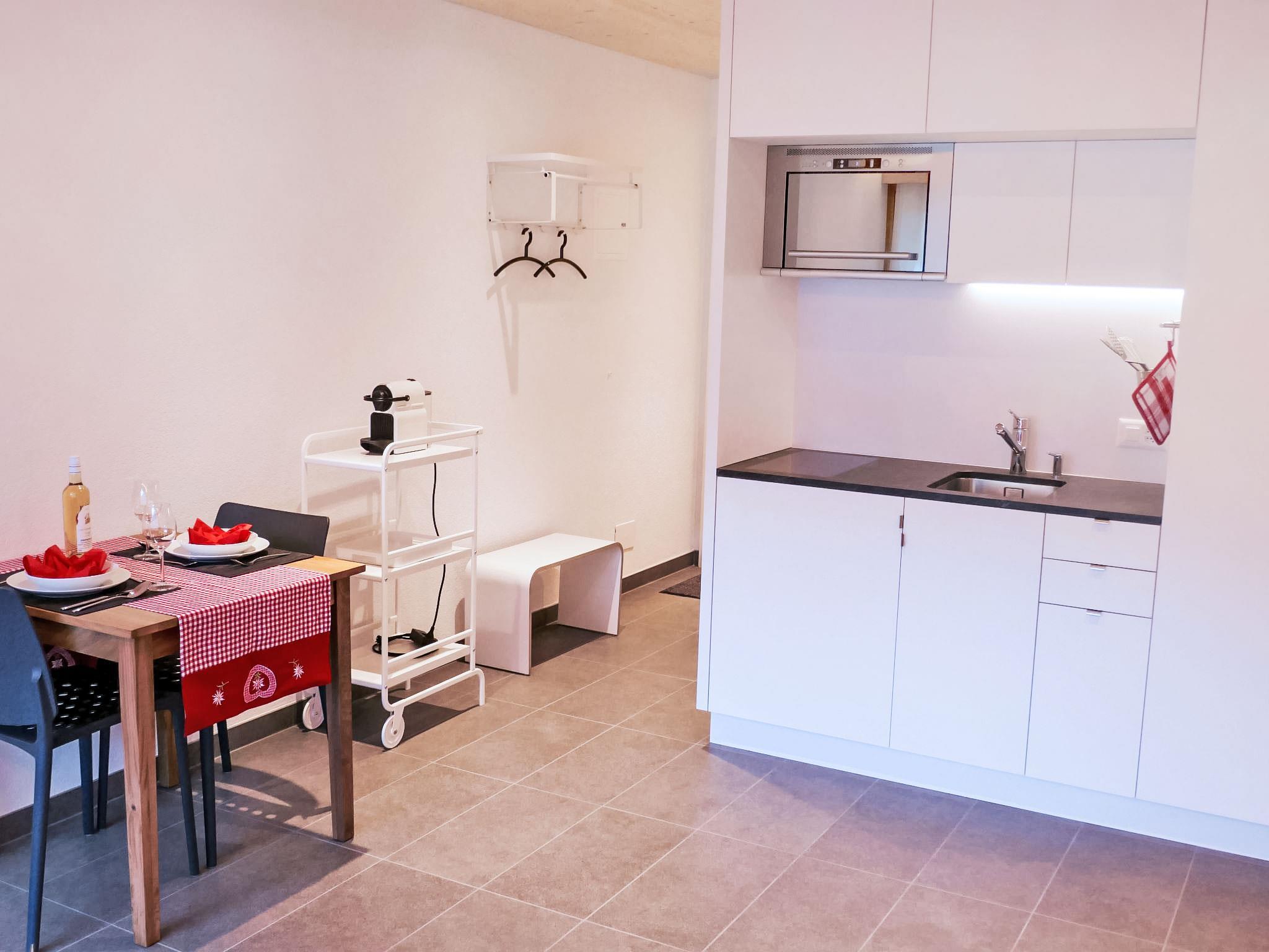 "Rosablanche D52", 1-Zimmer-Wohnung 25 m2 im 5. Stock. Vollständig renoviert im Jahre 2018, modern und geschmackvoll eingerichtet: Wohn-/Esszimmer mit 2 Wandschrankbetten (90 cm, Länge 190 cm) (2 Pers.), Kabel-TV und Radio. Kochnische (2 Glaskeramikplatten, Toaster, Wasserkocher, Mikrowelle, elektrische Kaffeemaschine, Kapseln für die Kaffeemaschine (Nespresso) extra, Fondue Set (Käse)). Dusche/WC. Balkon, Südlage. Balkonmöbel. Sicht auf die Skipiste. Zur Verfügung: Haartrockner. Internet (Wireless LAN). Bitte beachten: Nichtraucher-Haus. Aufzug D.