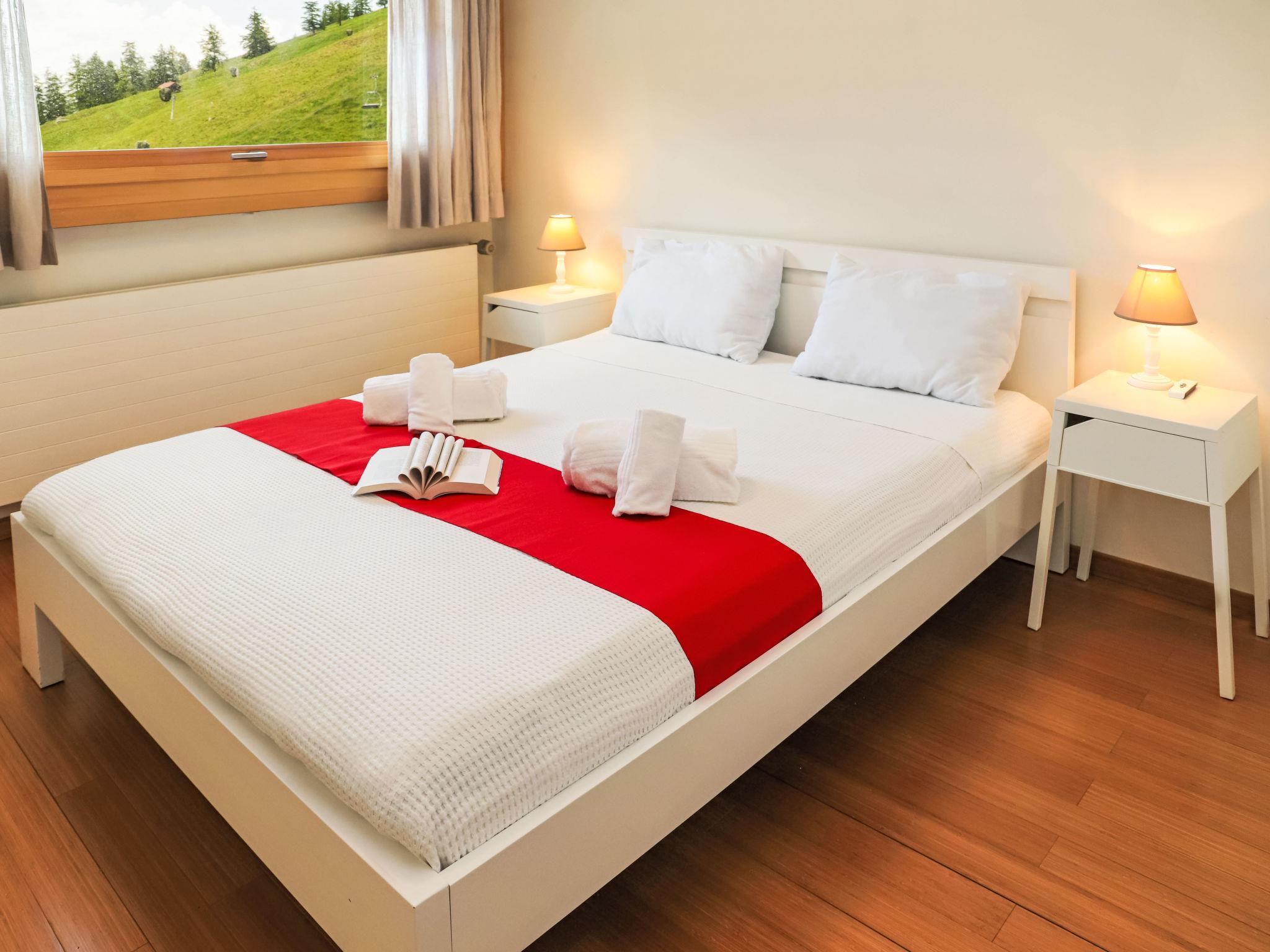 "Rosablanche D44", 4-Zimmer-Wohnung 80 m2 im 4. Stock. Objekt geeignet für 4 Erwachsene + 4 Kinder. Renoviert im Jahre 2012, komfortabel eingerichtet: Wohn-/Esszimmer mit Kabel-TV. Ausgang zum Balkon. Kleines Durchgangszimmer, ohne Fenster mit 2 x 2 Etagenbetten (90 cm, Länge 190 cm). 1 Zimmer mit 1 franz. Bett (160 cm, Länge 200 cm), Dusche/WC. 1 Zimmer mit 1 franz. Bett (160 cm, Länge 200 cm). Offene Küche (Backofen, Geschirrspüler, 4 Glaskeramikplatten, Toaster, Wasserkocher, Mikrowelle, elektrische Kaffeemaschine, Kapseln für die Kaffeemaschine (Nespresso) extra, Racletteofen, Fondue Set (Käse)). Bad/WC. Parkettboden. Balkon, Südlage. Sicht auf die Berge, die Skipiste und die Ortschaft. Zur Verfügung: Haartrockner. Internet (Wireless LAN, gratis). Bitte beachten: geeignet für Familien. Nichtraucher-Haus.