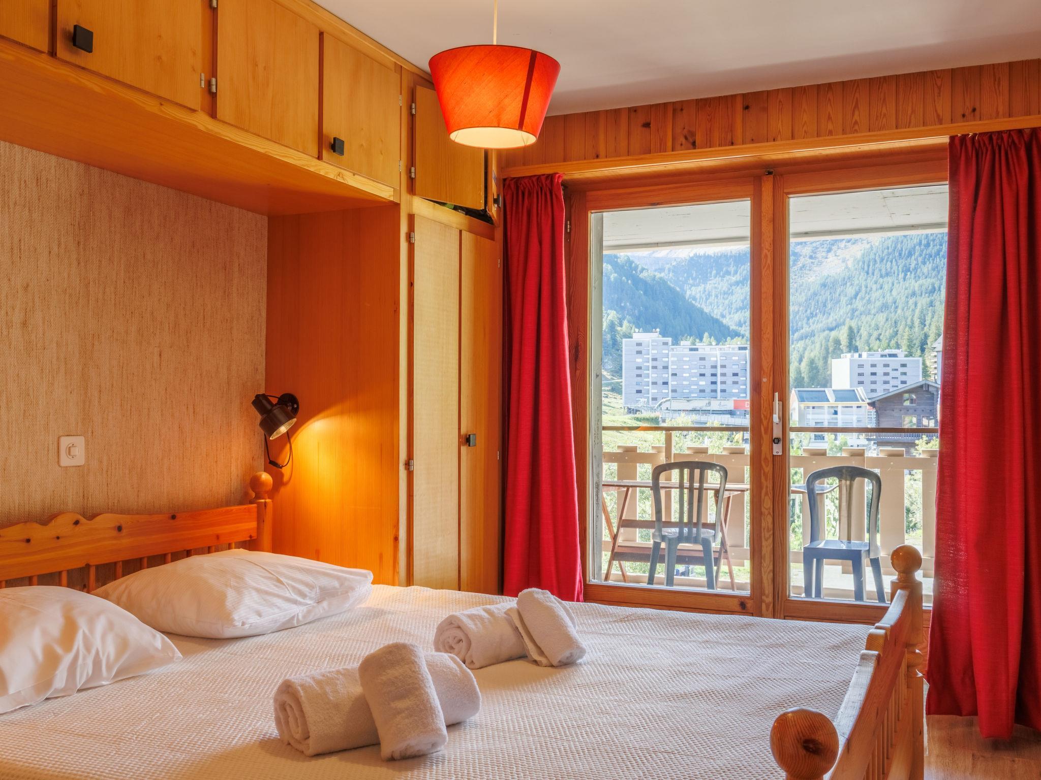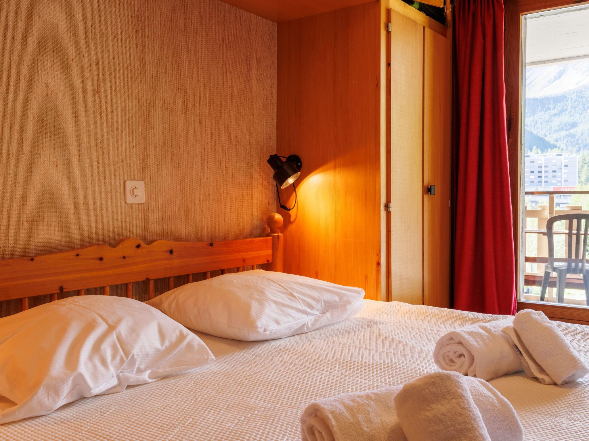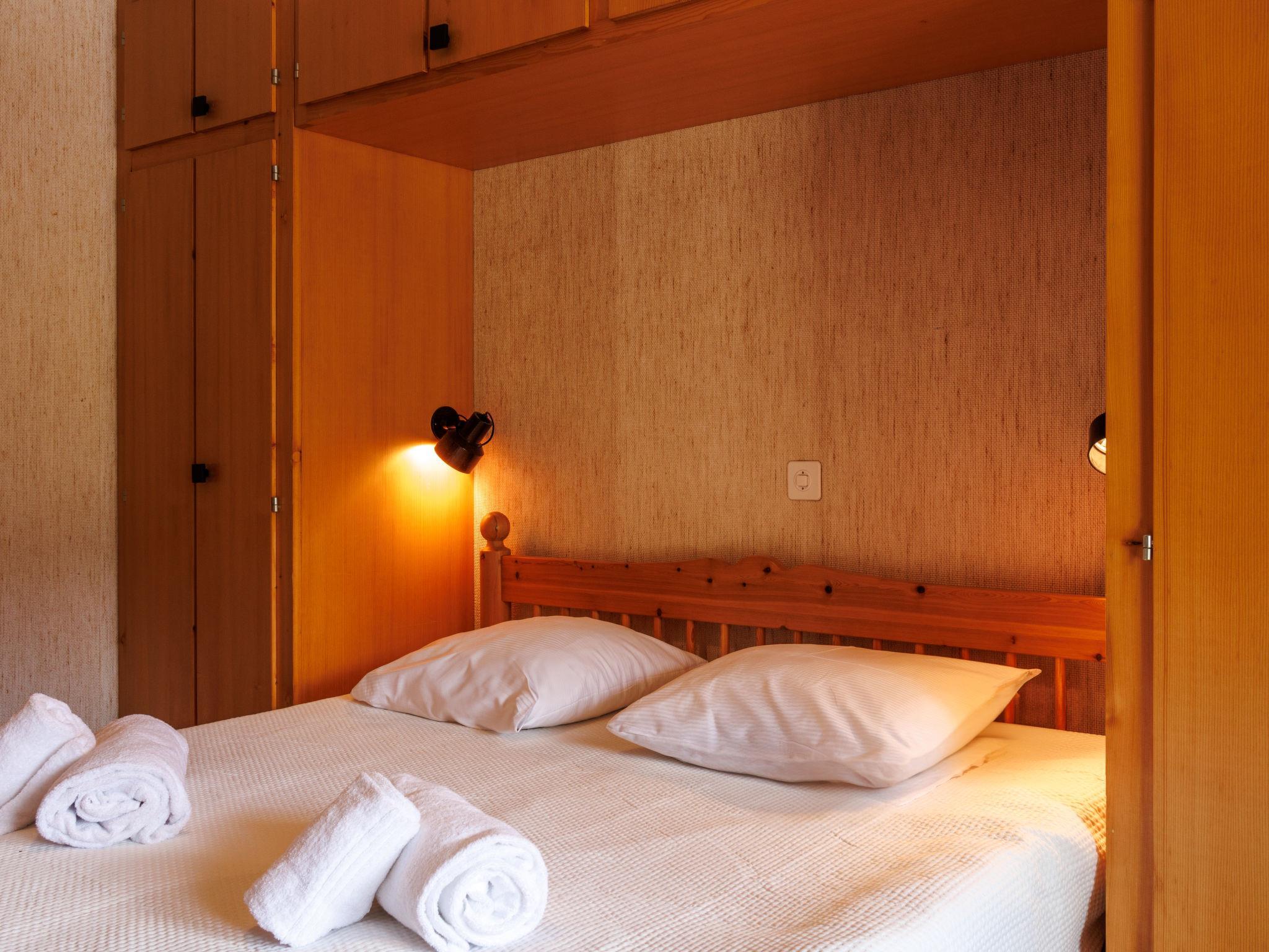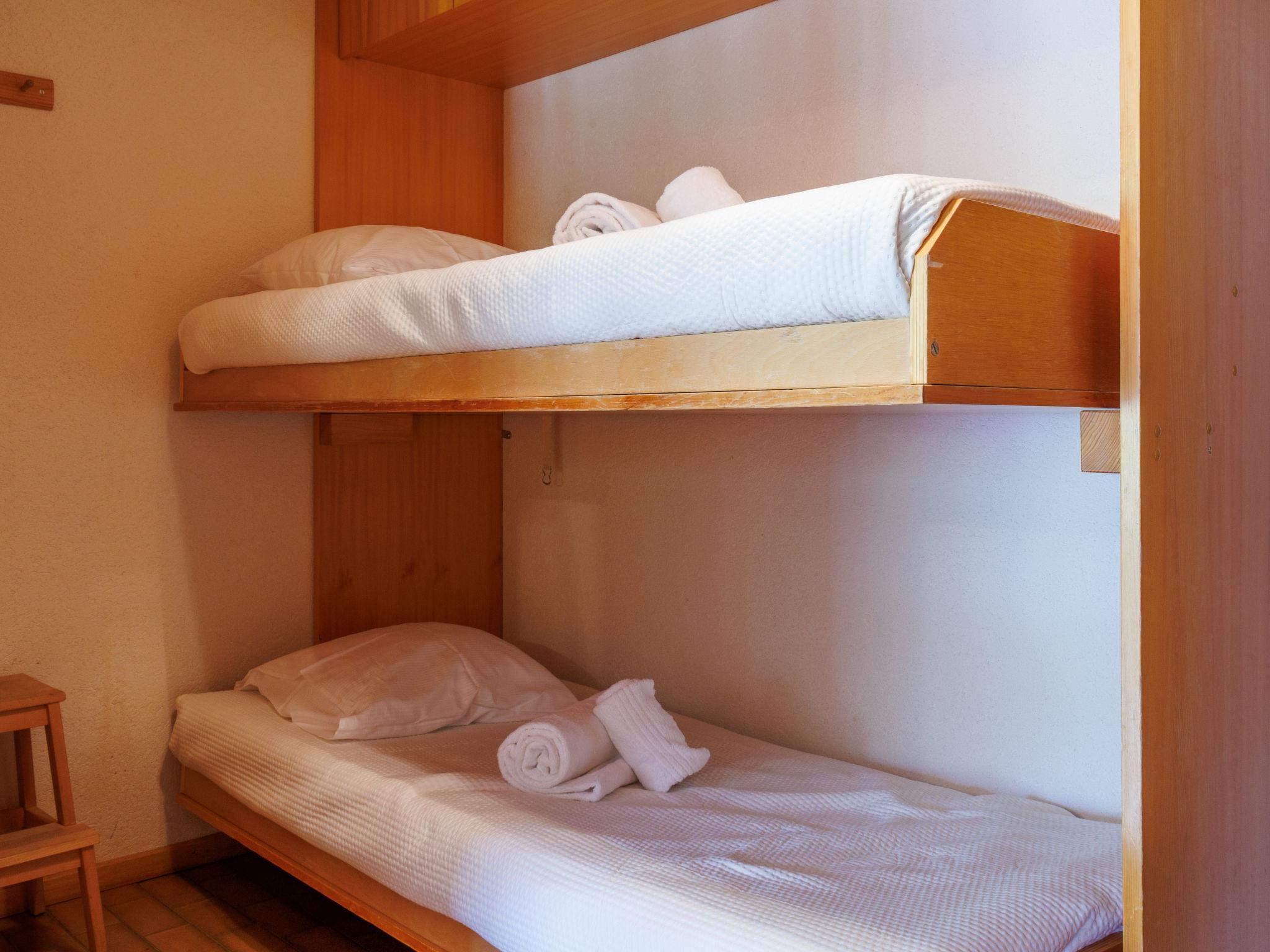 "Dents Rousses H2", 2-Zimmer-Wohnung 45 m2 im 2. Stock. Einfach eingerichtet: Eingang mit 1 x 2 Etagenbetten (80 cm, Länge 190 cm). Wohn-/Esszimmer mit Kabel-TV. Ausgang zum Balkon, Richtung Süden. 1 Zimmer mit 1 Doppelbett (2 x 90 cm, Länge 200 cm). Kochnische (3 Kochplatten, Backofen, Geschirrspüler, Toaster, Wasserkocher). Bad/WC. Balkon, Südlage. Zur Verfügung: Haartrockner. Internet (WLAN). Garage Nr. 7, Höhe 210 cm, Breite 200 cm. Bitte beachten: Nichtraucher-Haus, Parkplatz nur für kleine Wagen. Kamin ausser Betrieb. Anstelle eines abgeschlossenen Schlafzimmers befinden sich manche Schlafplätze in einem offenen Bereich (Galerie, Nische etc.).