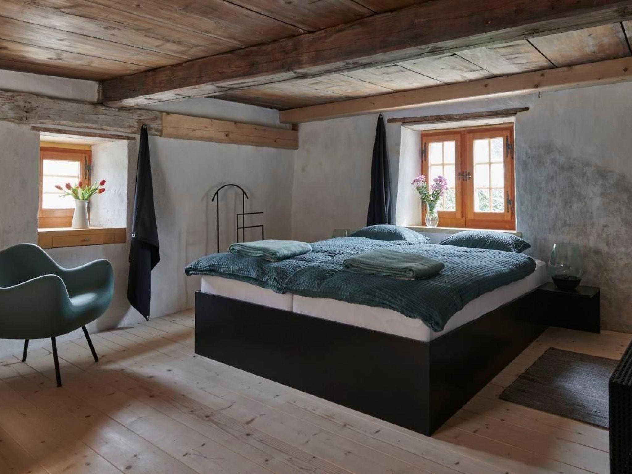 Extras: Generell gut lüften, in der Chambre Basse weist die Raumhöhe beim Deckenbalken lediglich 1.60m auf. Der Zugang zur Chambre Basse ist hinter dem Ofen und eng und steil, mehrere, kleine Gepäckstücke werden empfohlen (statt ein Grosses). In der Chambre haute gibt es eine Schwelle mittig im Raum, zudem ist dort der Boden sehr uneben.