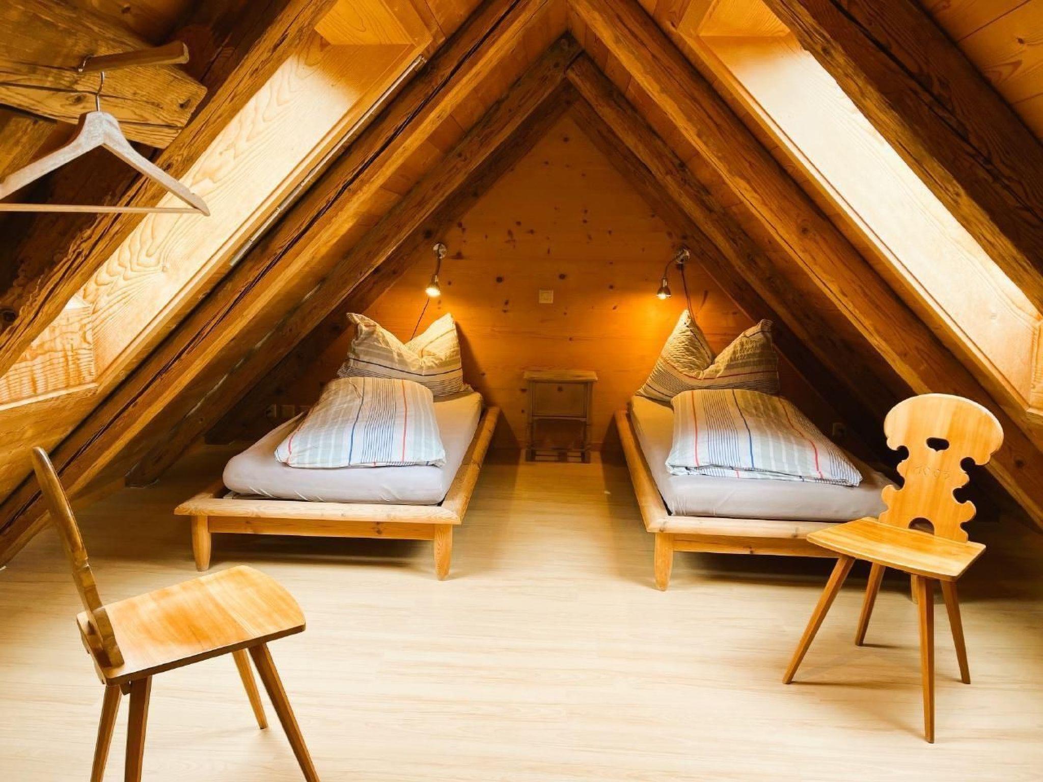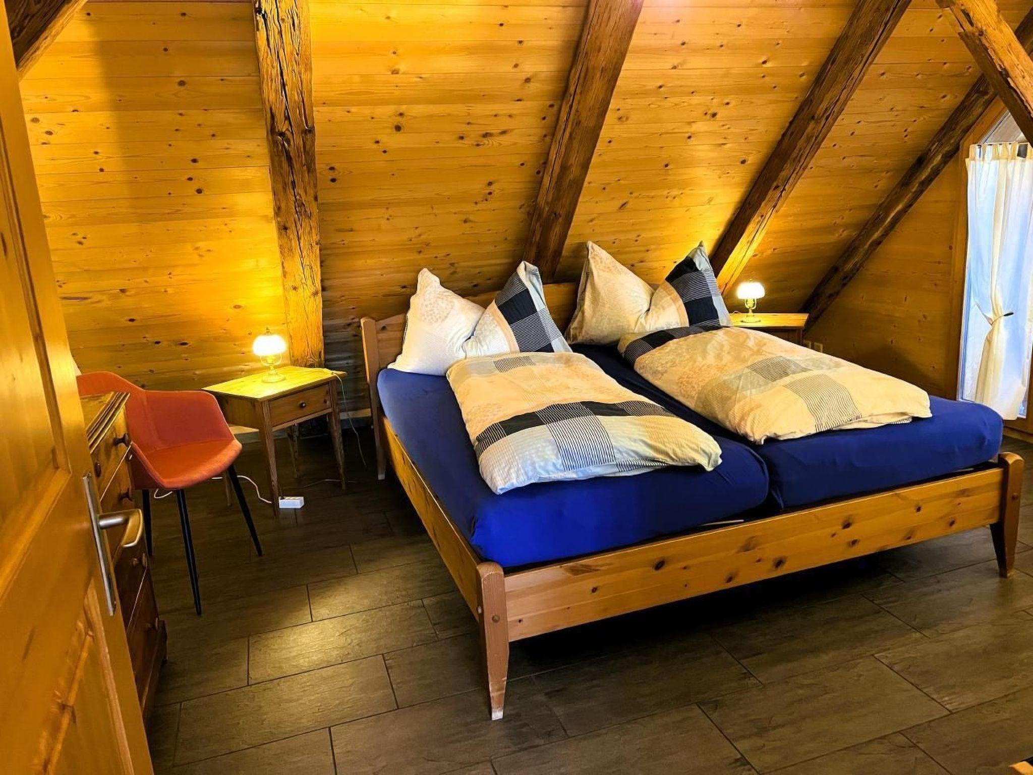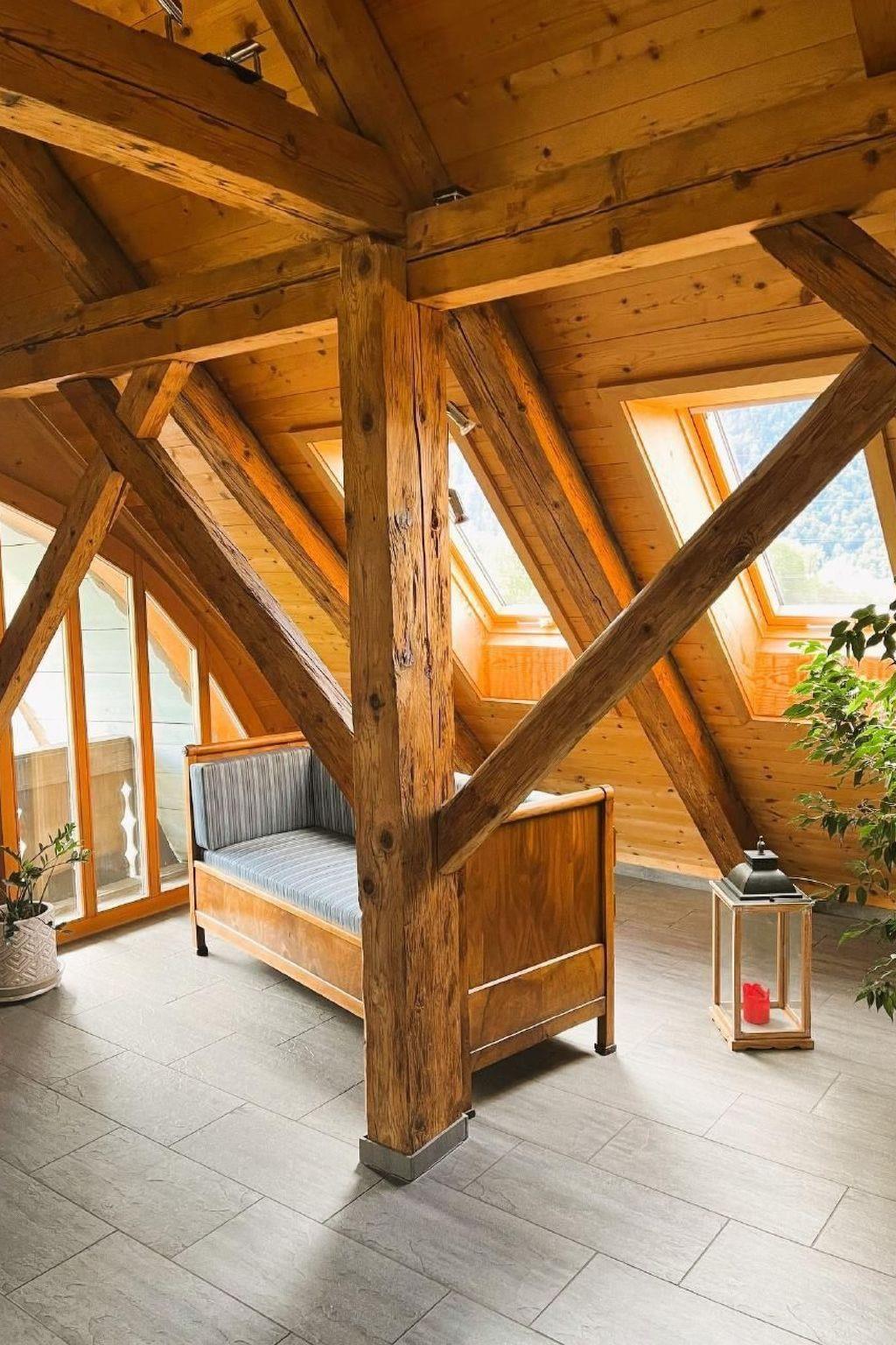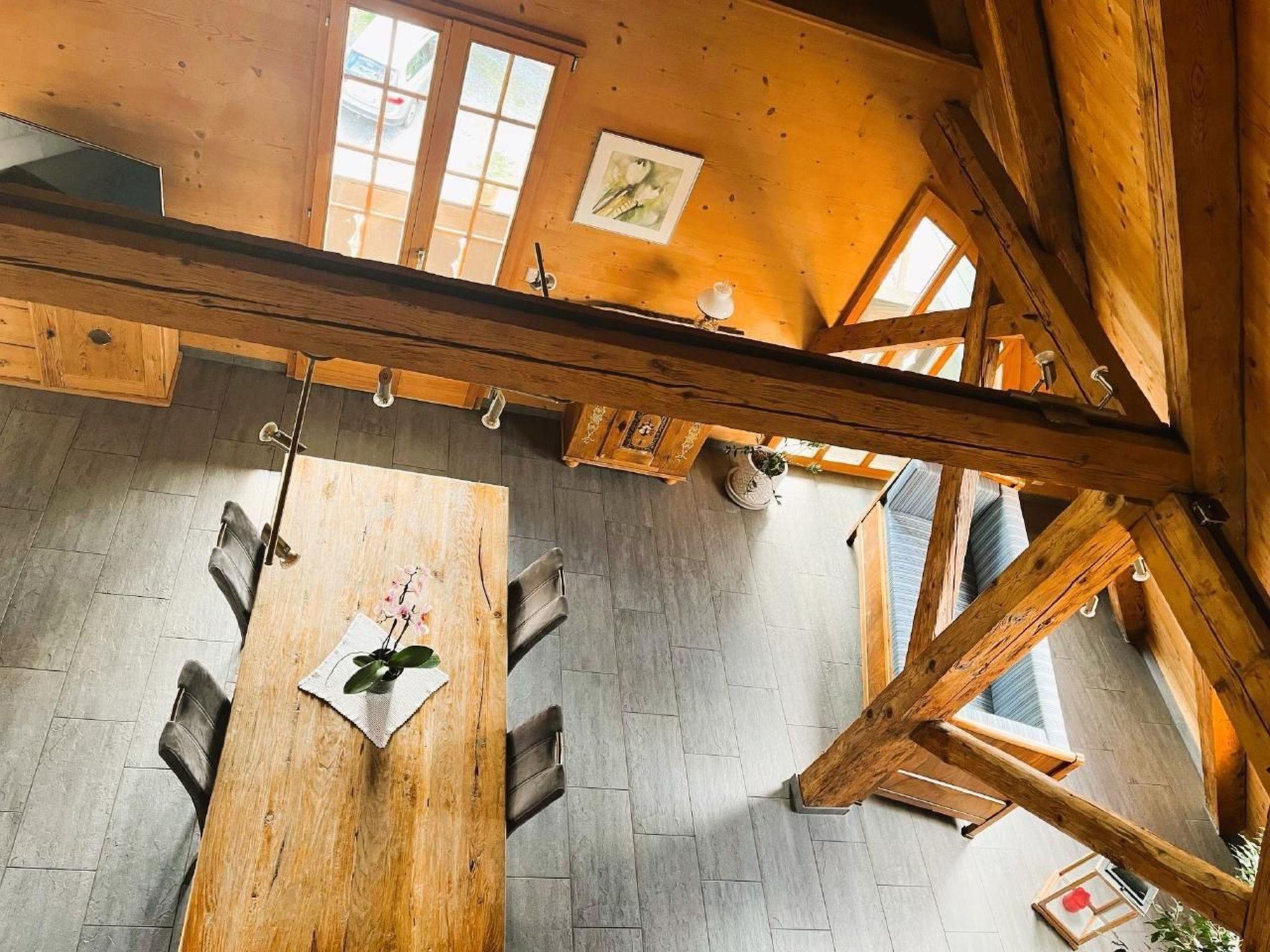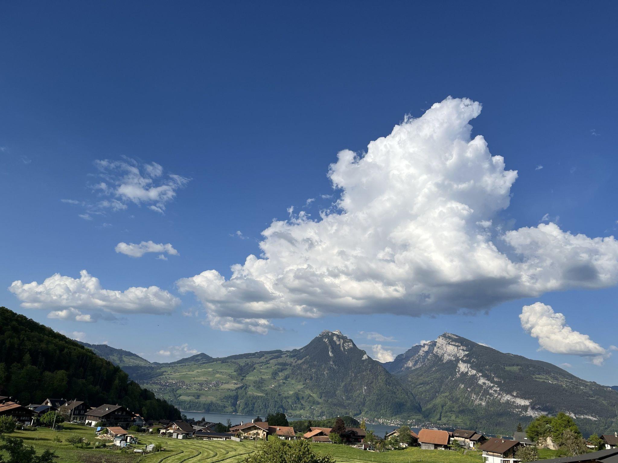 In unserem fast 250 jährigen sorgfältig renovierten Holzhaus. Vermieten wir eine rustikale und äusserst komfortable 3-Zimmer-Dachstockwohnung mit Galerie. Grosszügige und komplett eingerichtete Küche mit Geschirrspülmaschine, NESPRESSO Kaffeemaschine, Mikrowelle, Raclette Ofen, Fondue Caquelon, Toaster, Wasserkocher und Waschmaschine. Äusserst komfortabler Ess- und Wohnraum mit zwei Sofas, grossem Esstisch mit Platz für bis zu 6 Personen, Flachbildschirm / Kabel Fernseher und Digital Radio. 1 Doppelschlafzimmer, Galerie mit 2 Betten, Badezimmer mit Badewanne / Dusche mit Glasduschwand und Toilette. Eine wunderschöne Rundsicht auf die Berge und den Thunersee haben sie von den beiden Balkone und aus den Fenstern. Ein richtiges Bijou zum Geniessen in ruhiger und ländlicher Gegend.