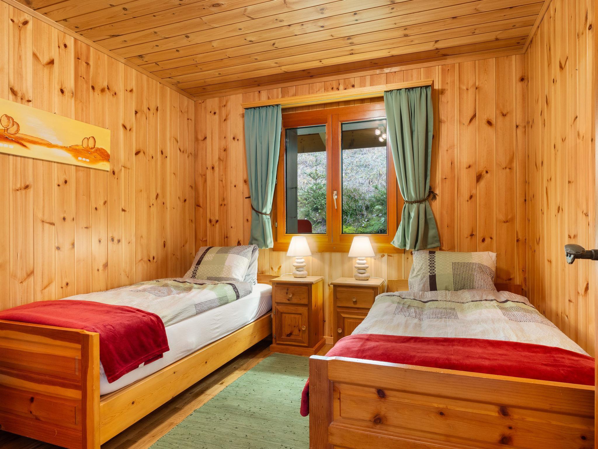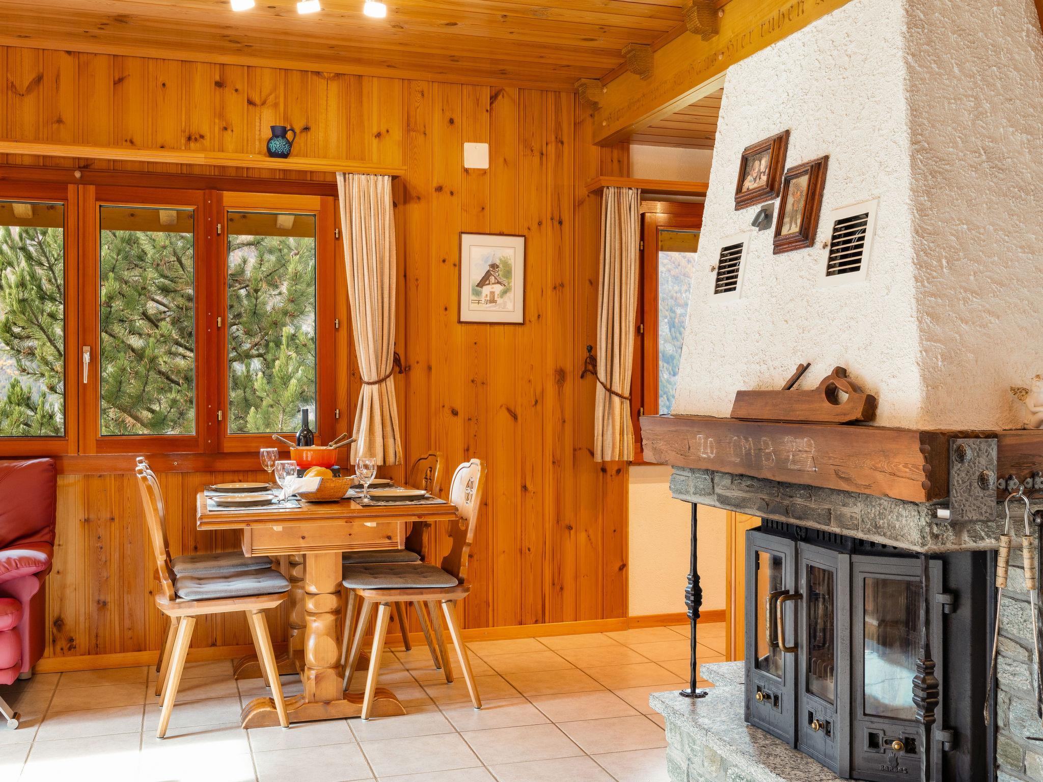 3-Zimmer-Chalet 72 m2. Rustikal und gemütlich eingerichtet: Wohn-/Esszimmer mit offenem Kamin und Sat-TV (Flachbildschirm), Radio. Ausgang zum Gartensitzplatz. 2 Zimmer, jedes Zimmer mit 2 Betten. Offene Küche (Backofen, Geschirrspüler, 4 Glaskeramikplatten) mit Esstisch. Dusche/WC. E-Heizung, Holzheizung, Boiler (130 Liter). Grosser Gartensitzplatz 150 m2. Terrassenmöbel, Gartengrill. Sehr schöne Sicht auf die Berge, das Tal und die Landschaft. Zur Verfügung: Waschmaschine, Haartrockner. Internet (Wireless LAN, gratis). Garage in 200 m. Bitte beachten: Nichtraucher-Unterkunft. 'Keine Haustiere erlaubt.