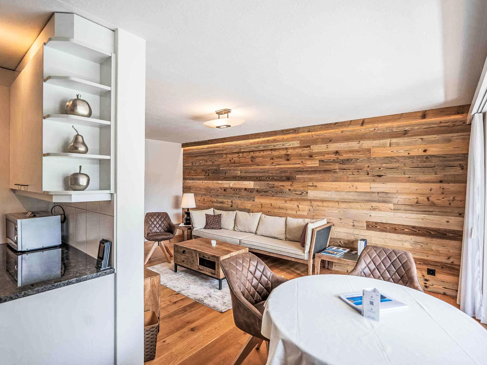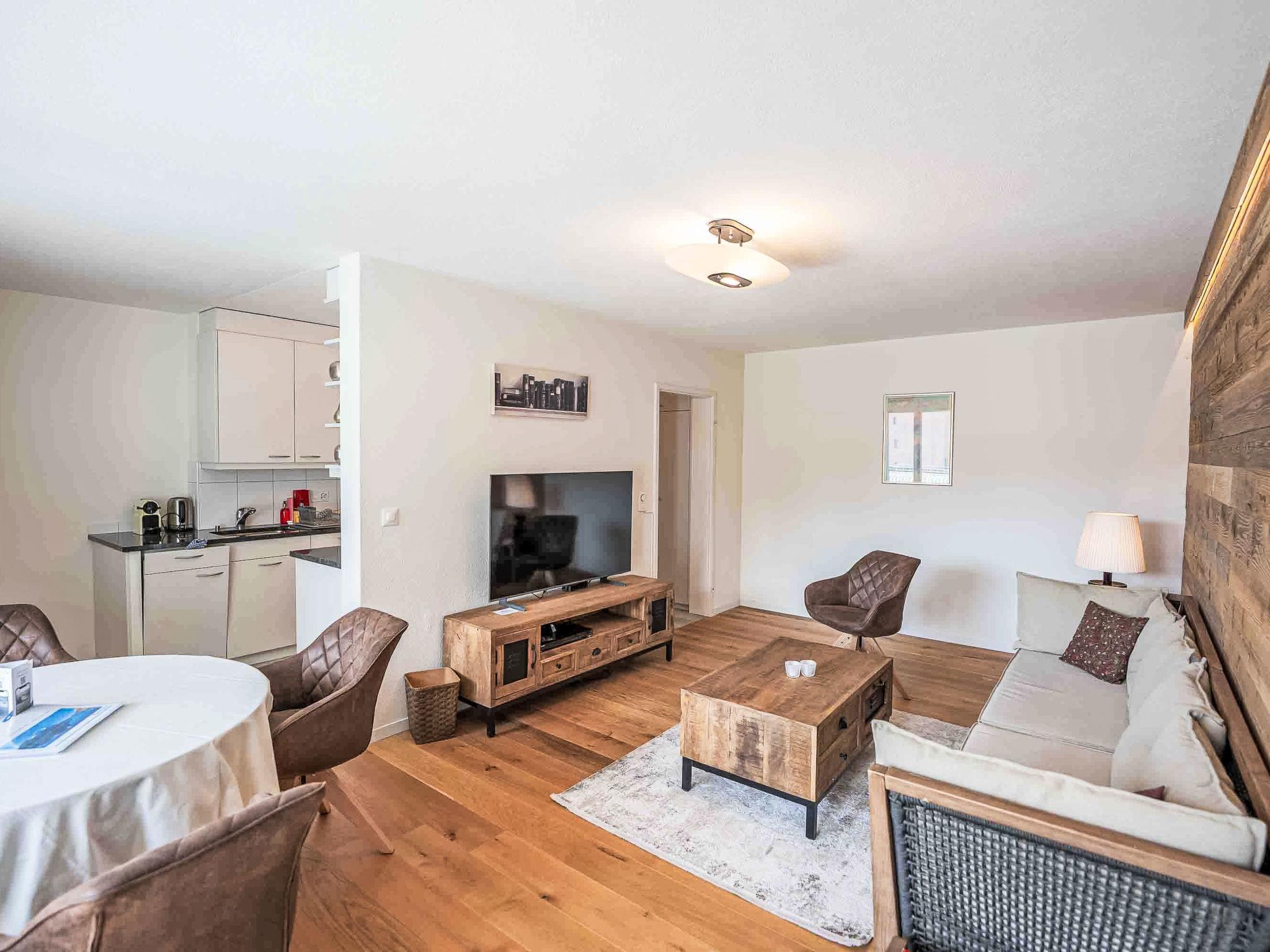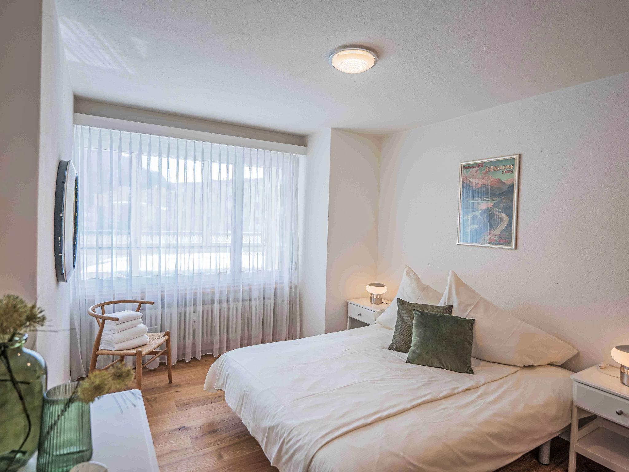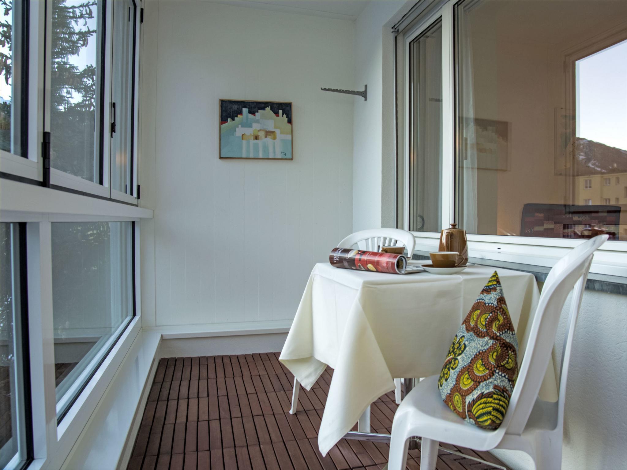 "Chesa Fleury", 2-Zimmer-Wohnung 60 m2 im 3. Stock. Komfortabel eingerichtet: Wohn-/Esszimmer mit TV (Flachbildschirm). Ausgang zum Balkon, Richtung Südwesten. 1 Doppelzimmer mit 1 franz. Bett (160 cm, Länge 190 cm). Offene Küche (Backofen, Geschirrspüler, 4 Glaskeramikplatten, Toaster, Wasserkocher, elektrische Kaffeemaschine, Kapseln für die Kaffeemaschine (Nespresso) extra, Fondue Set (Käse)) mit Esstisch. Ausgang zum Balkon. Bad/WC. Heizung. Terrassenmöbel, Wintergarten. Seitliche Sicht auf die Berge und die Ortschaft. Zur Verfügung: Haartrockner. Internet (WLAN, gratis). Garage, Höhe 195 cm, Breite 205 cm. Bitte beachten: Nichtraucher-Unterkunft, Nichtraucher-Haus.