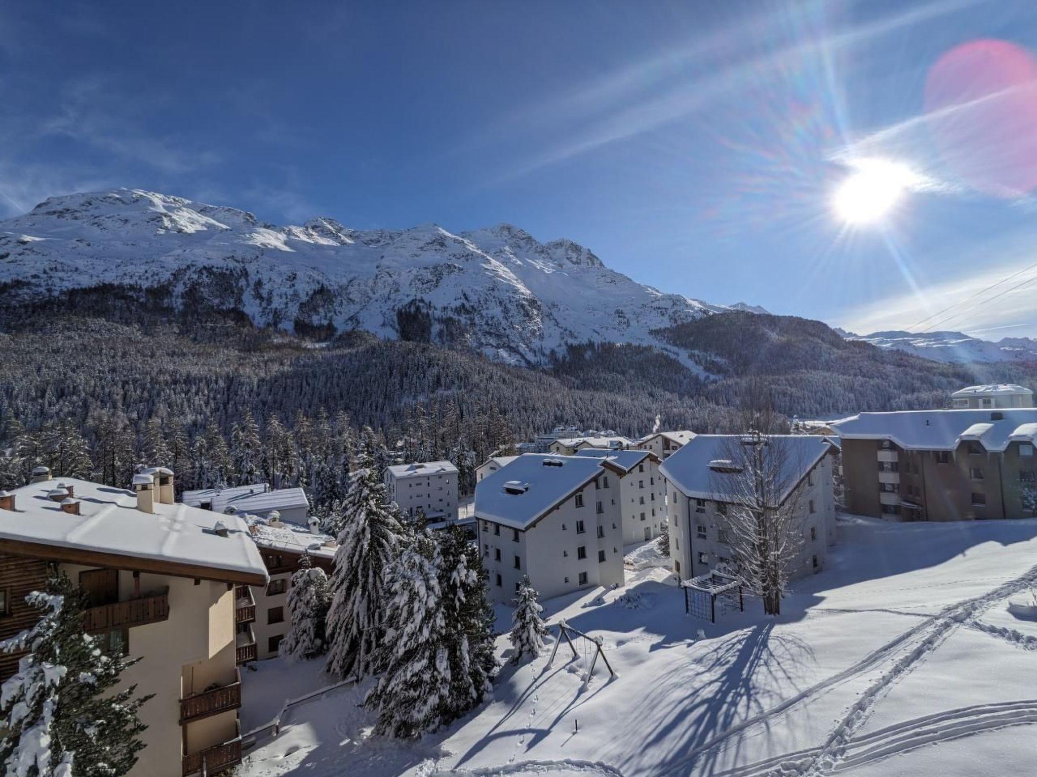 Balkon und eigene Dachterrasse mit Blick über den St. Moritzer See und das ganze Tal.