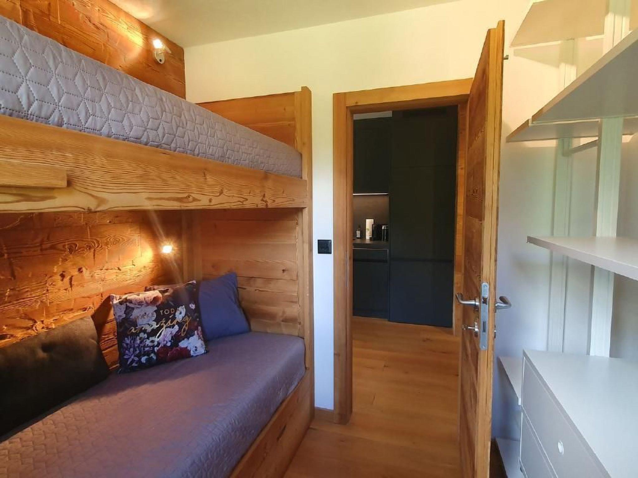 In der Wohnung erwartet Sie eine sorgfältig ausgewählte Innenausstattung, die keine Wünsche offen lässt. Das Schlafzimmer ist mit einem komfortablen King-Size Bett und einem eingebauten Schrank ausgestattet, während das zweite Schlafzimmer ein praktisches Hochbett bietet. Das Herzstück bildet das Wohnzimmer mit einem gemütlichen Sofa und Beistelltisch, einem 75-Zoll Flachbild-TV, einem Cheminée sowie einem Esstisch mit Sitzbank und Stühlen. Die offene Küche ist voll ausgestattet mit Geschirrspüler, Kühlschrank, Mikrowelle & Steamer-Ofen sowie einem Induktionsherd. Das Badezimmer bietet eine Regendusche, Föhn und Bademantel für zusätzlichen Komfort.