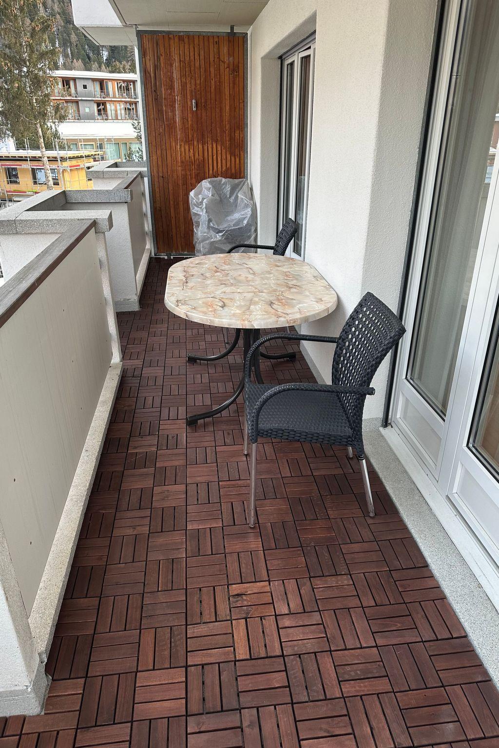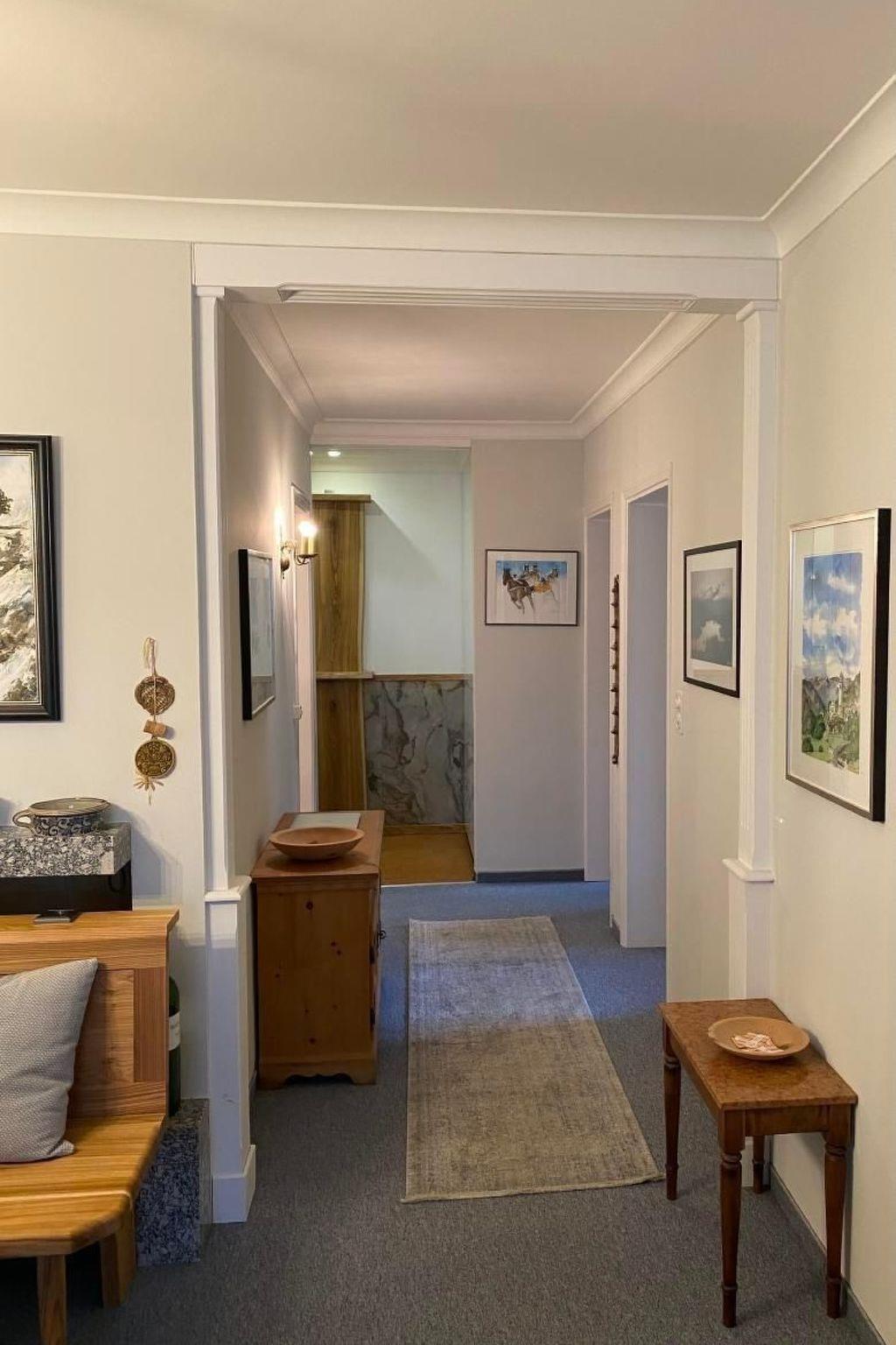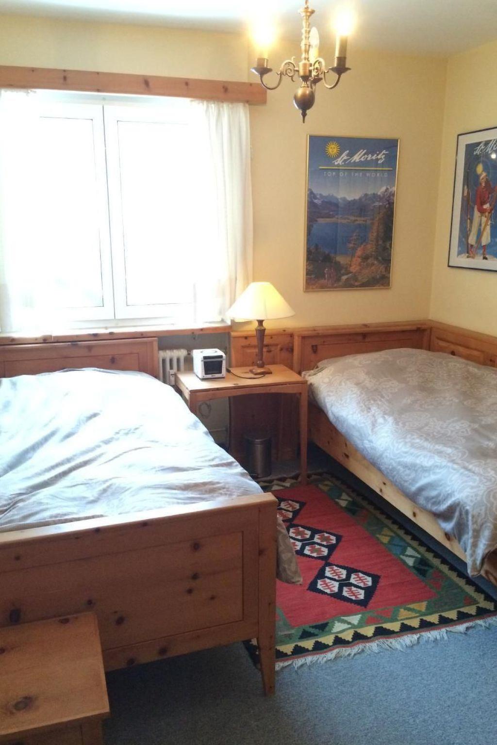 3-Zimmer-Wohnung (84 m2) im 3. Stock eines Mehrfamilienhauses. Sehr gute Lage, sehr zentral als Ausgangspunkt für jegliche Aktivitäten! Wohnung mit Wohnzimmer, 2 Schlafzimmer (1 x 2 Einzelbetten, 1 x Doppelbett), Wohnküche (klein) mit Geschirrspülmaschine, Mikrowelle, Backofen, Kühlschrank, Kaffeemaschine. Bad/WC. Balkon. Sat-TV, Internet, W-Lan, Radio und Telefon. Lift. Skiraum und Waschküche zur Mitbenützung. Tiefgaragenstellplatz ist auf Grund der Höhe nicht mit Dachbox oder Skiständer auf grösseren Autos befahrbar.