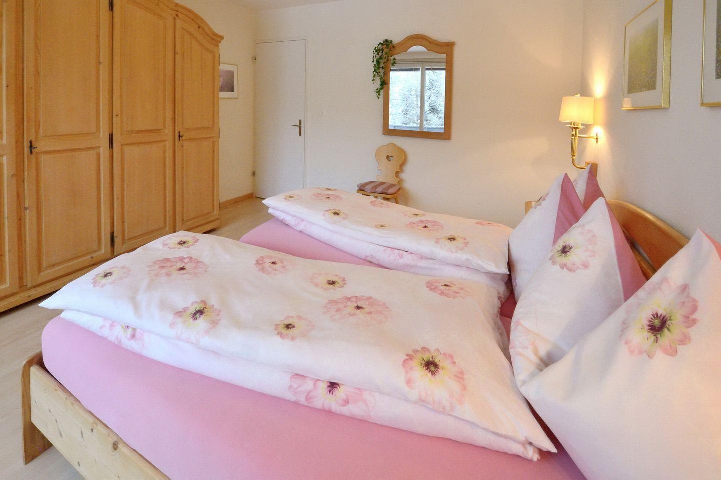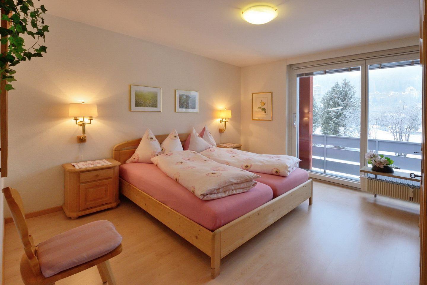 Die Ferienwohnung verfügt über ein Schlafzimmer mit einem Doppelbett sowie ein Schlafzimmer mit zwei Einzelbetten. Im Wohnzimmer finden Sie eine gemütliche Sofaecke mit TV sowie eine weitere Schlafmöglichkeiten in Form von einem 1.60er Schrankbett. Die Wohnung hat ein Badezimmer mit Dusche/WC sowie ein weiteres separates WC. Die Küche ist komplett eingerichtet und mit modernen Geräten ausgestattet. Eine Essecke steht ebenfalls zur Verfügung. Vom Balkon haben Sie eine schöne Panoramasicht auf Corviglia/Piz Nair.