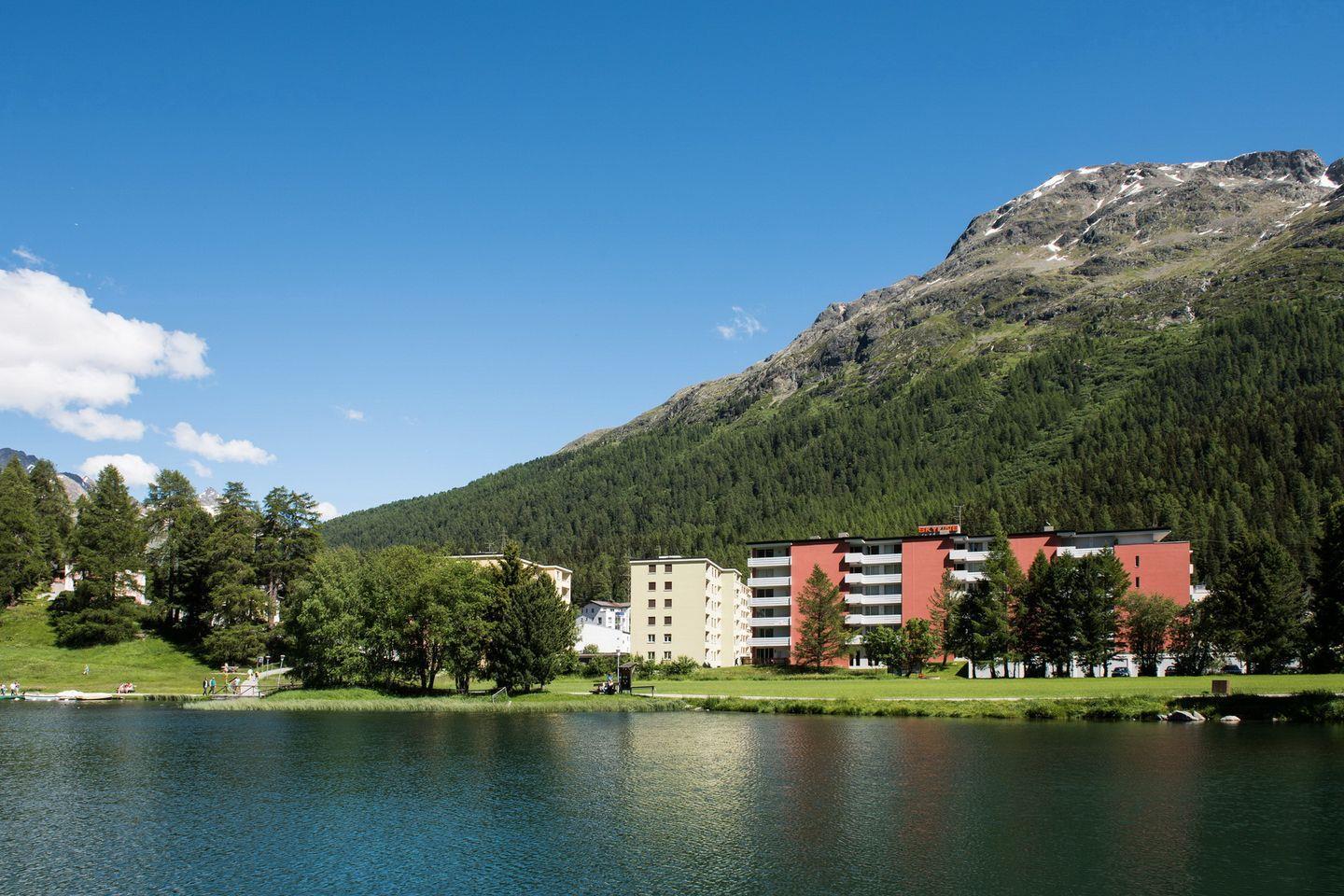 Das Skyline House liegt direkt neben dem St. Moritzersee an zentraler Lage in St. Moritz Bad. Bushaltestelle, Restaurants und Einkaufsmöglichkeiten befinden sich wenige Gehminuten entfernt.