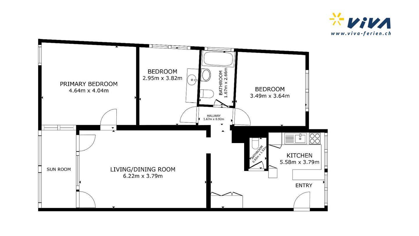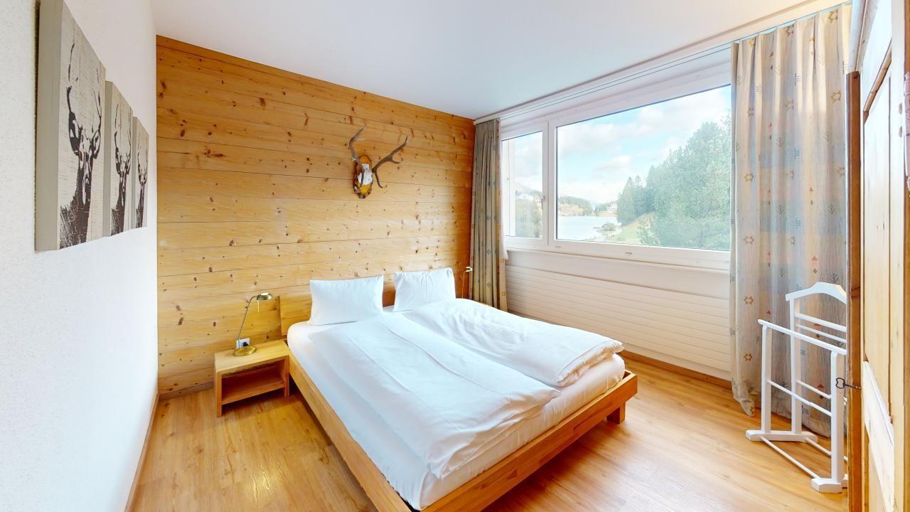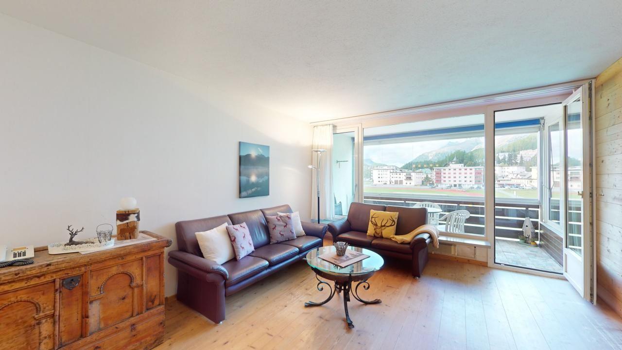 Gemütliche, grosszügige 4.5 - Zimmer-Ferienwohnung im 2. Obergeschoss. Eingang mit Küche und Blick auf St. Moritz-Dorf und den See. Separate Toilette. Wohn- /Esszimmer, überdachter Balkon mit Verglasung die je nach Witterung geöffnet/geschlossen werden kann. Ein schönes Doppelschlafzimmer. Ein Bad mit Dusche/WC. Ein Einzelschlafzimmer mit eigener Dusche. Ein weiteres Doppelschlafzimmer mit Blick auf St. Moritz und den St. Moritzer See. Im Ferienhaus befindet sich ein Lift. Beschränkte Anzahl Aussenparkplätze (max. 1 Auto/Wohnung, nicht reserviert). Fitnessraum zur öffentlichen Nutzung befindet sich im Ferien-Wohnhaus.